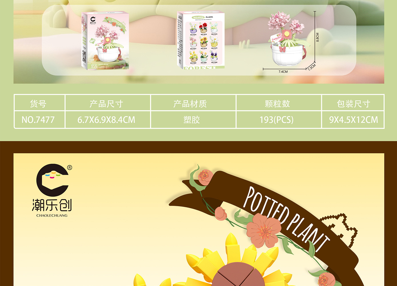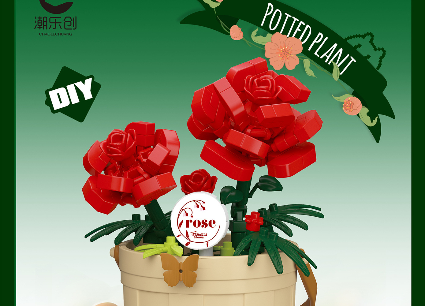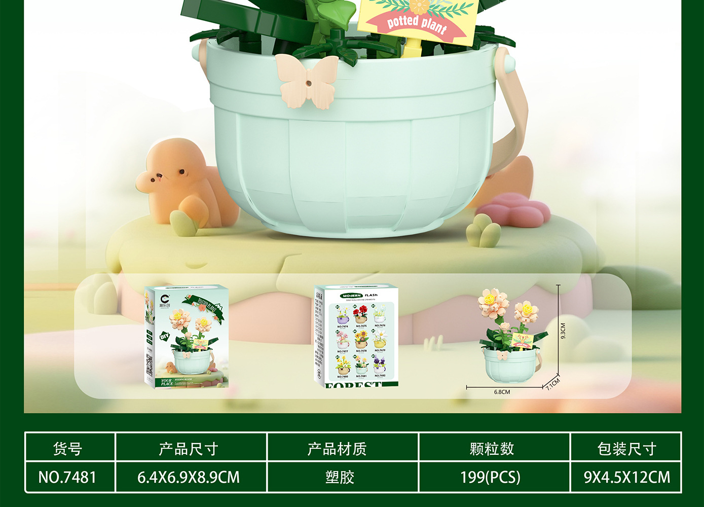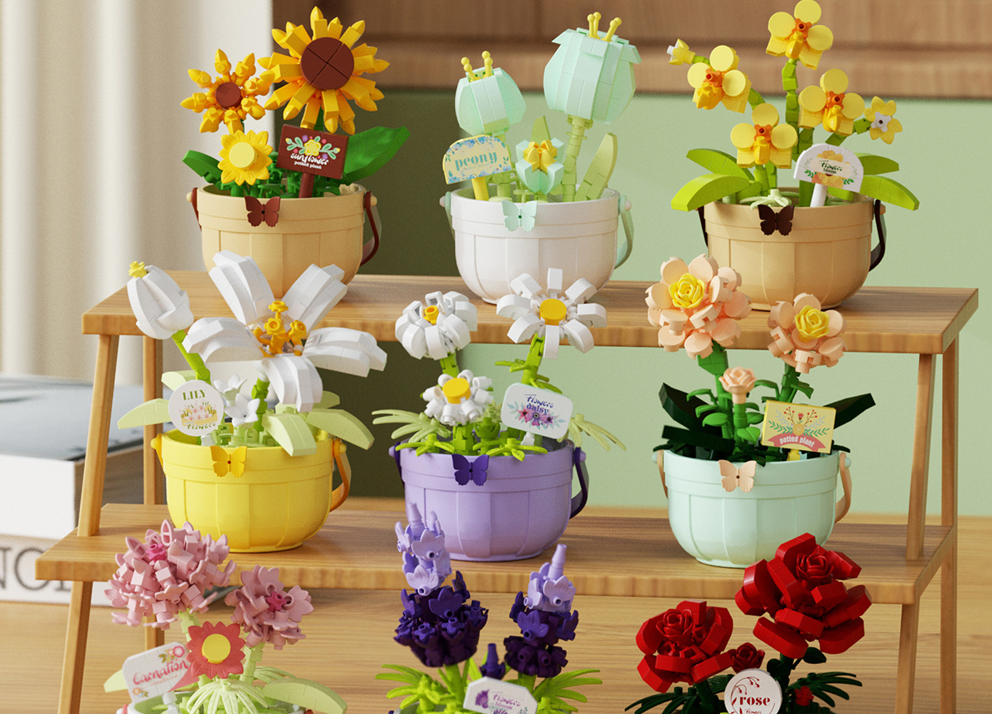 潮乐创微小颗粒拼装积木玩具7474-7482花篮物语摆件跨境批发代发