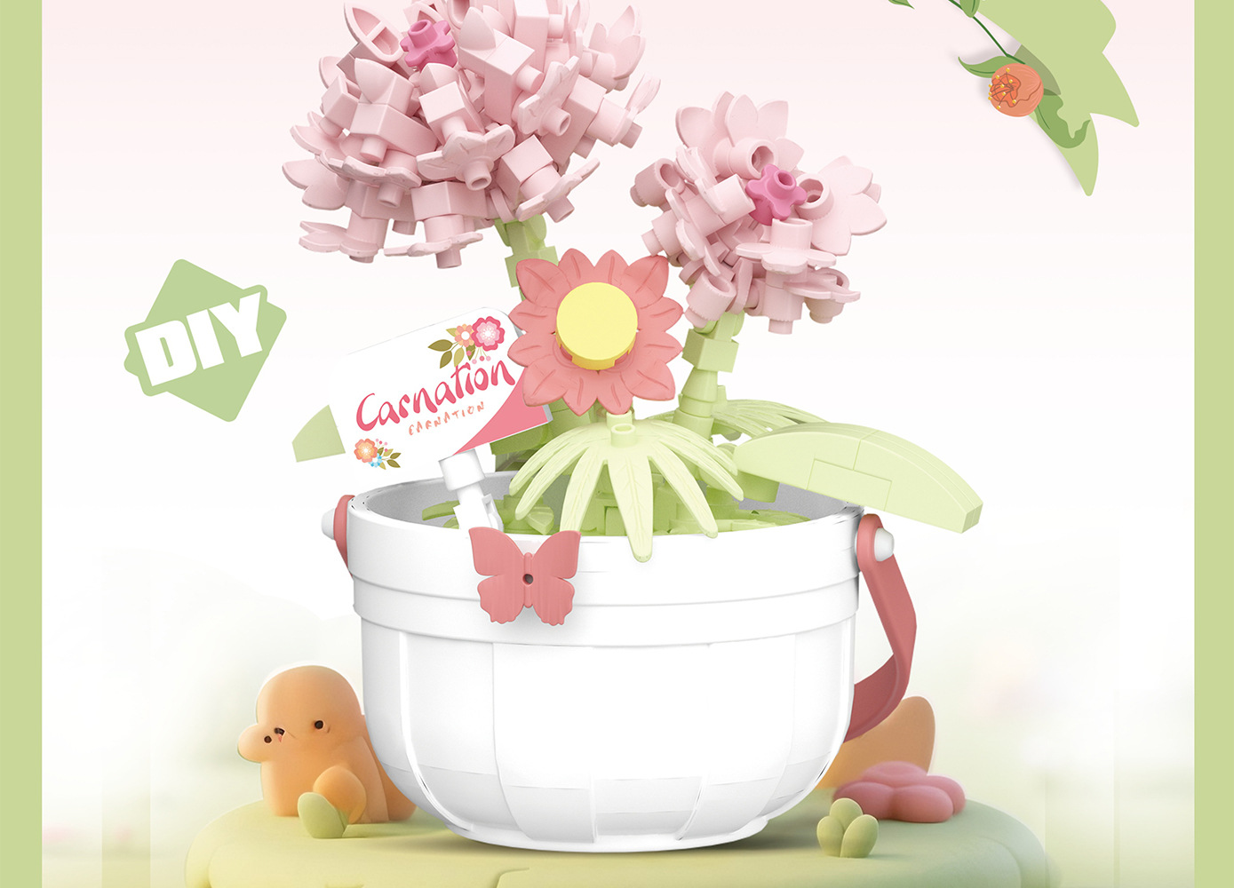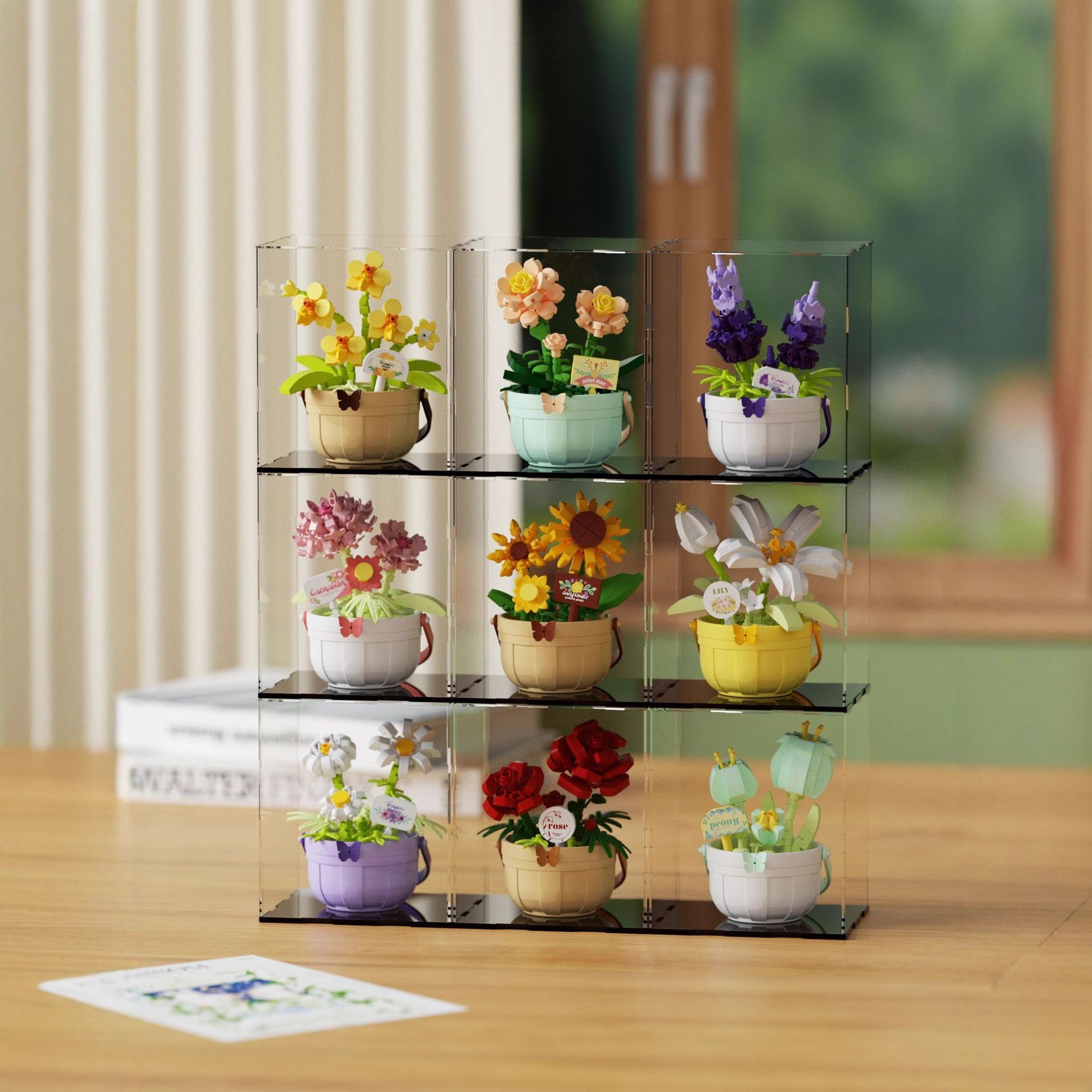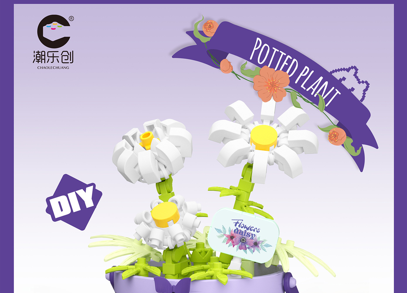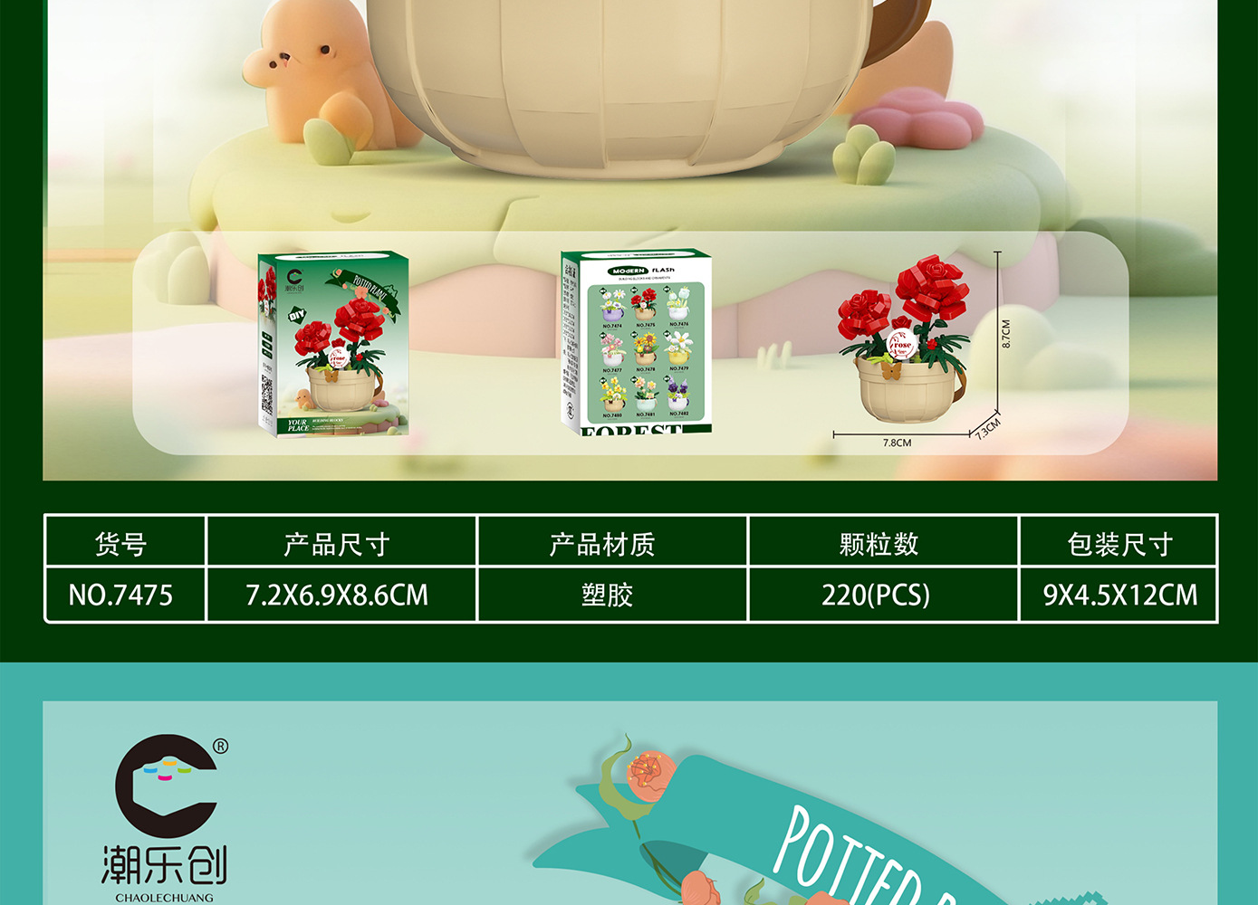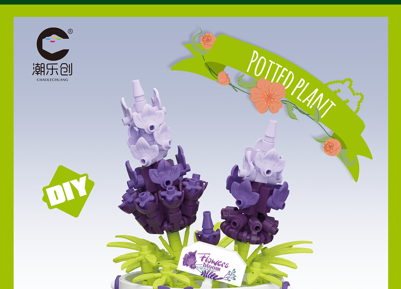 潮乐创微小颗粒拼装积木玩具7474-7482花篮物语摆件跨境批发代发