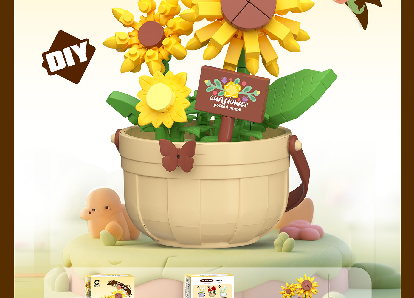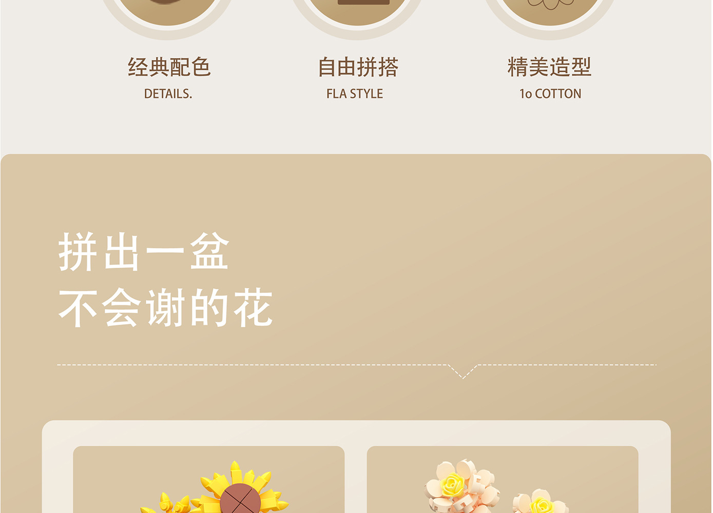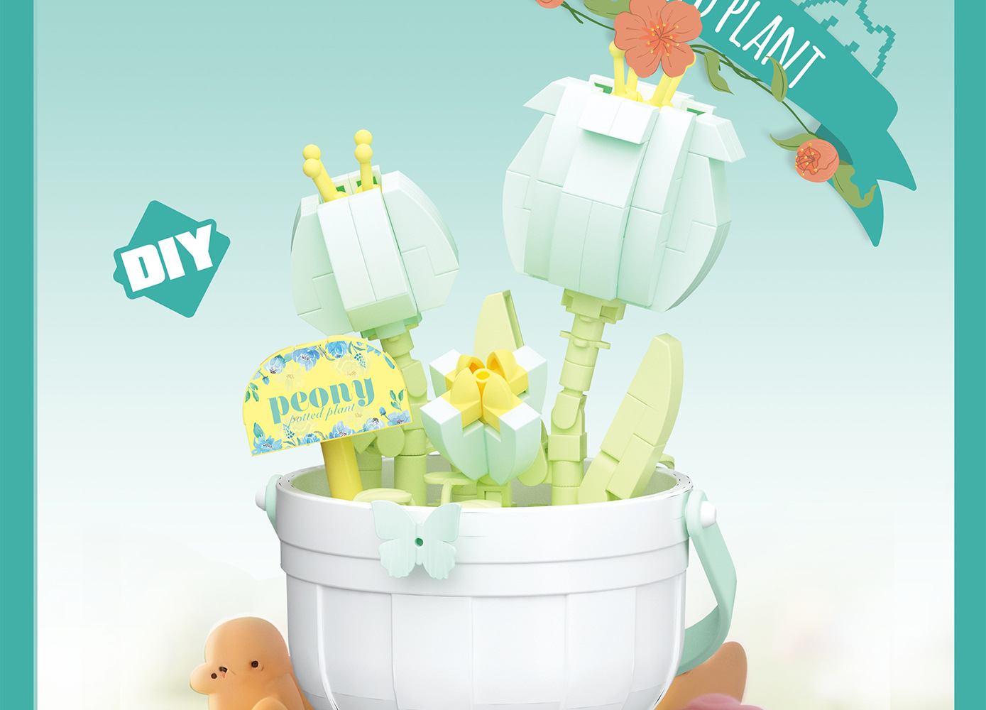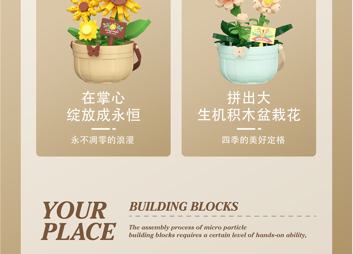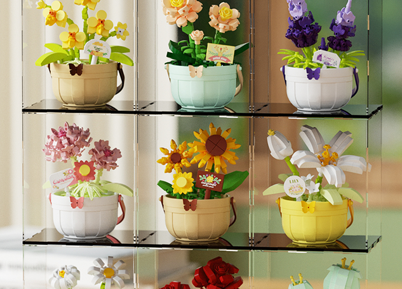 潮乐创微小颗粒拼装积木玩具7474-7482花篮物语摆件跨境批发代发