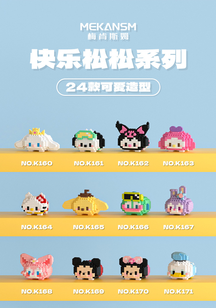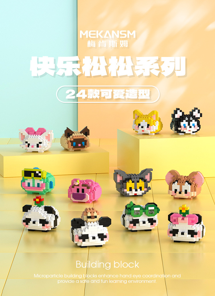 梅肯斯姆微小颗粒拼装玩具休闲拼插摆摊地摊积木快乐松松系列批发