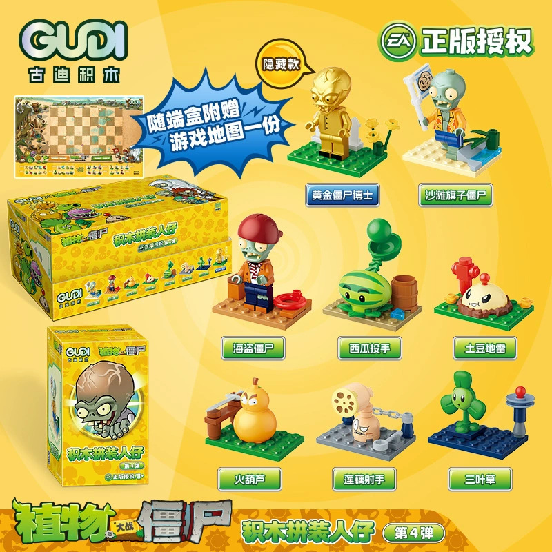 古迪60030植物大战僵尸盲盒小颗粒拼装积木豌豆射手玩具男孩礼物