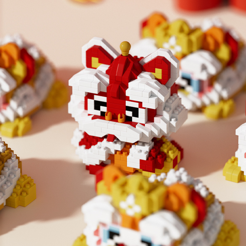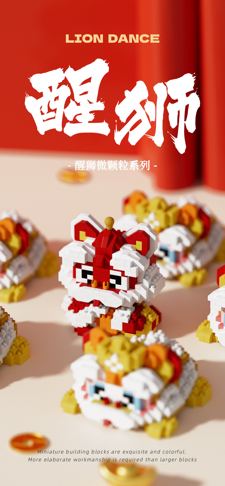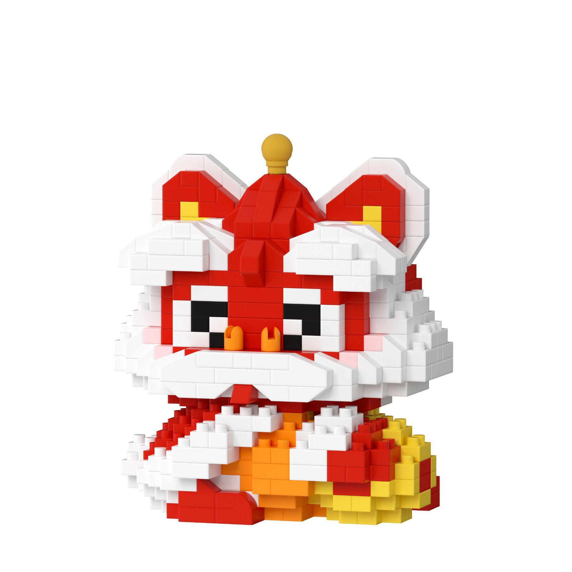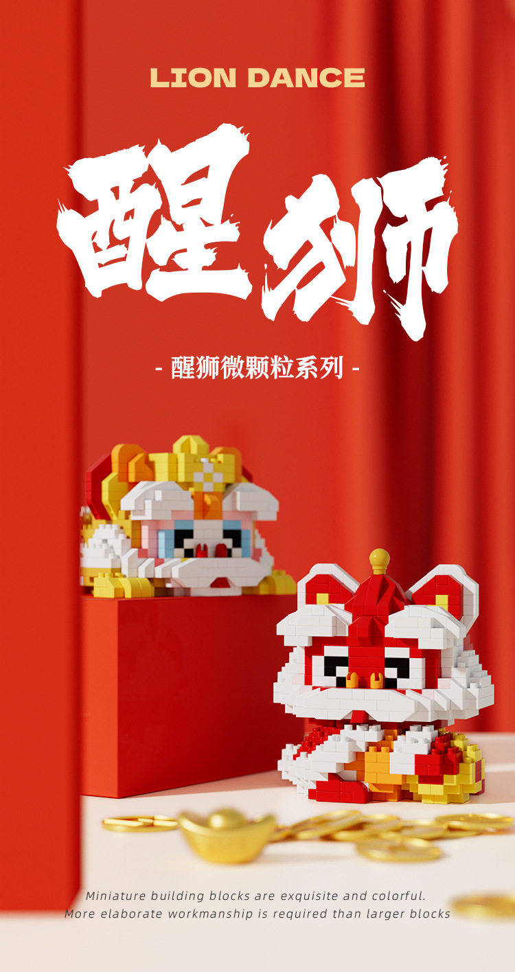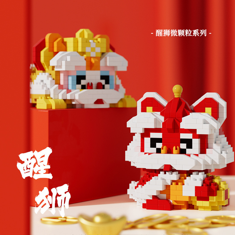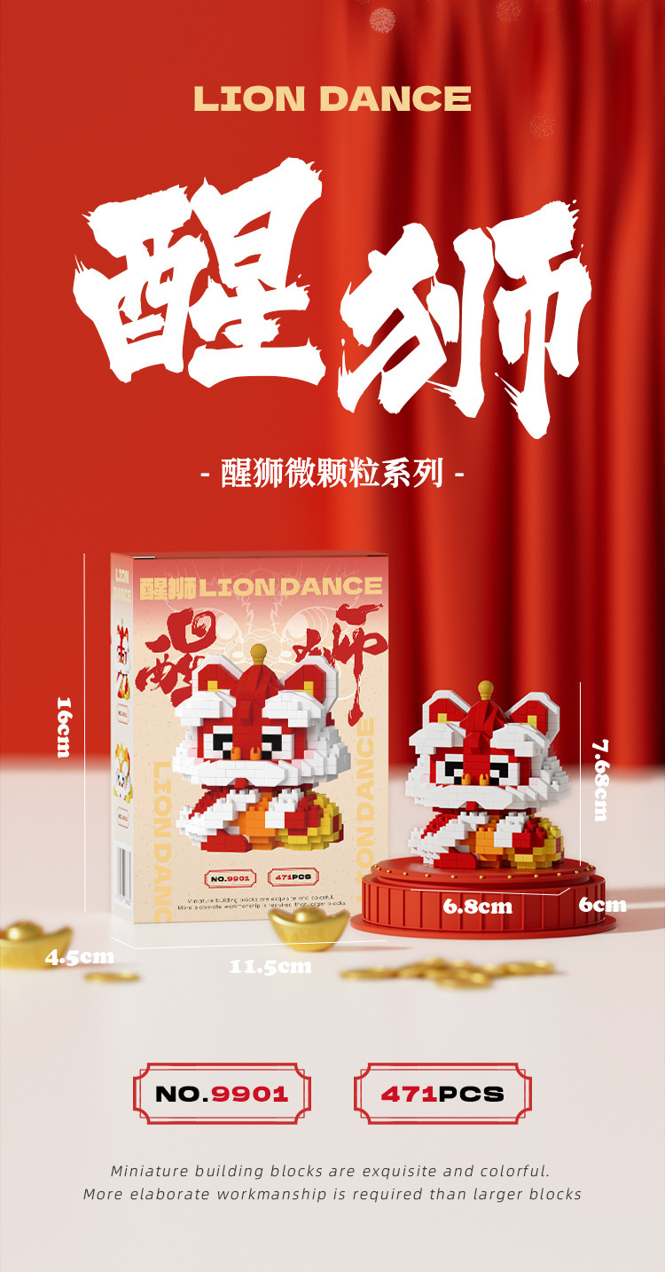 爿乜9901-9902舞狮系列微小颗粒拼插装积木益智休闲玩具批发代发