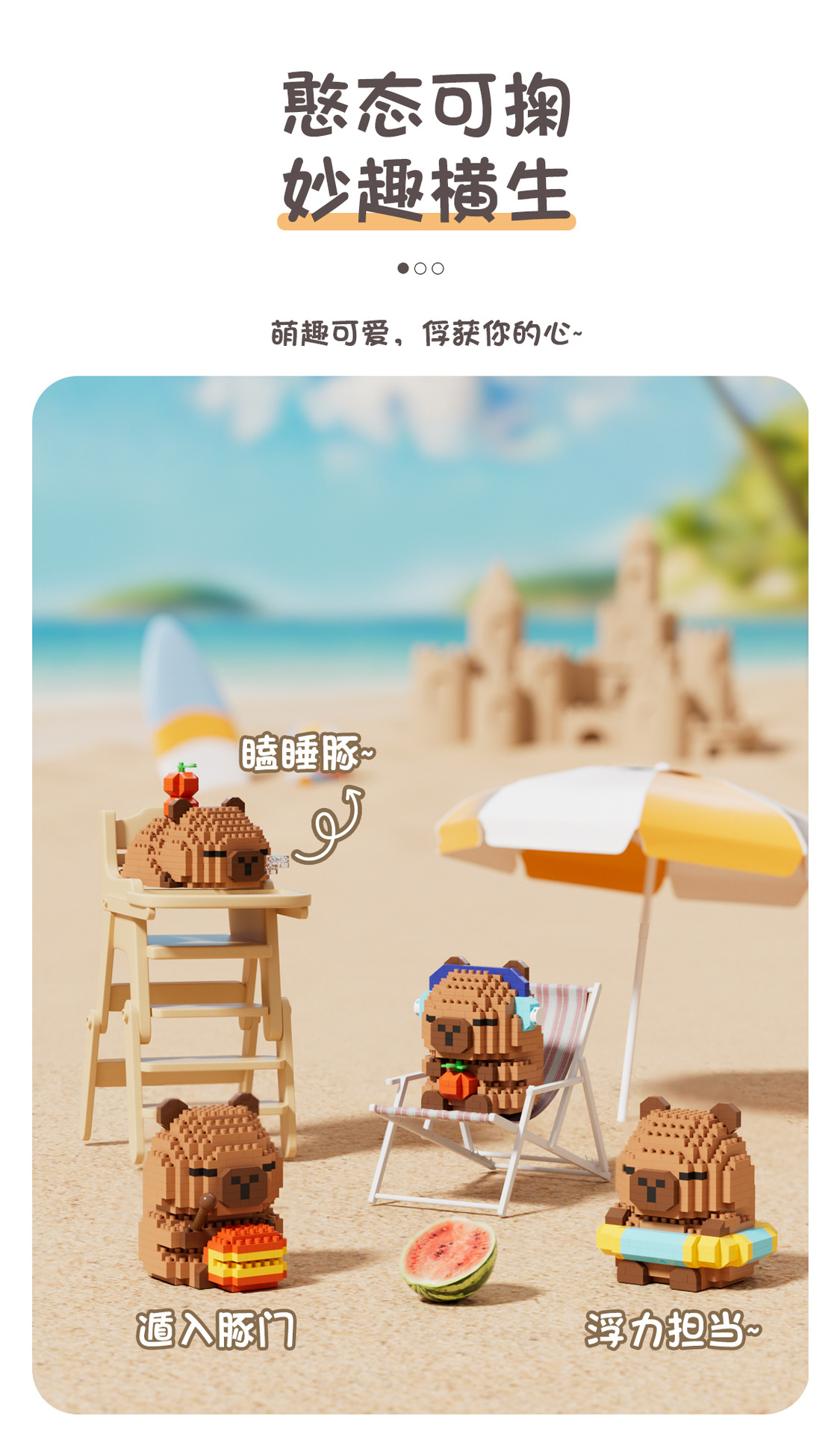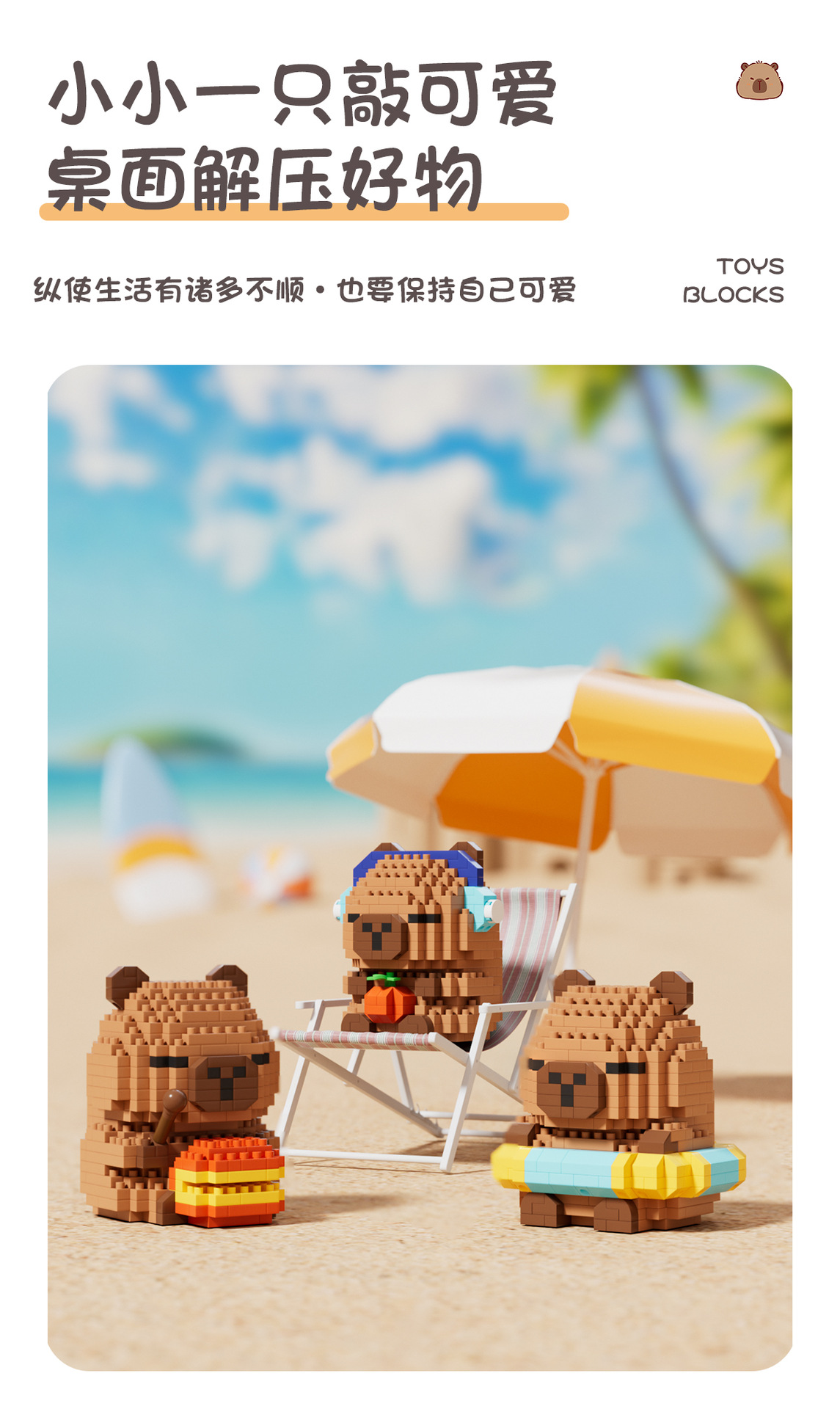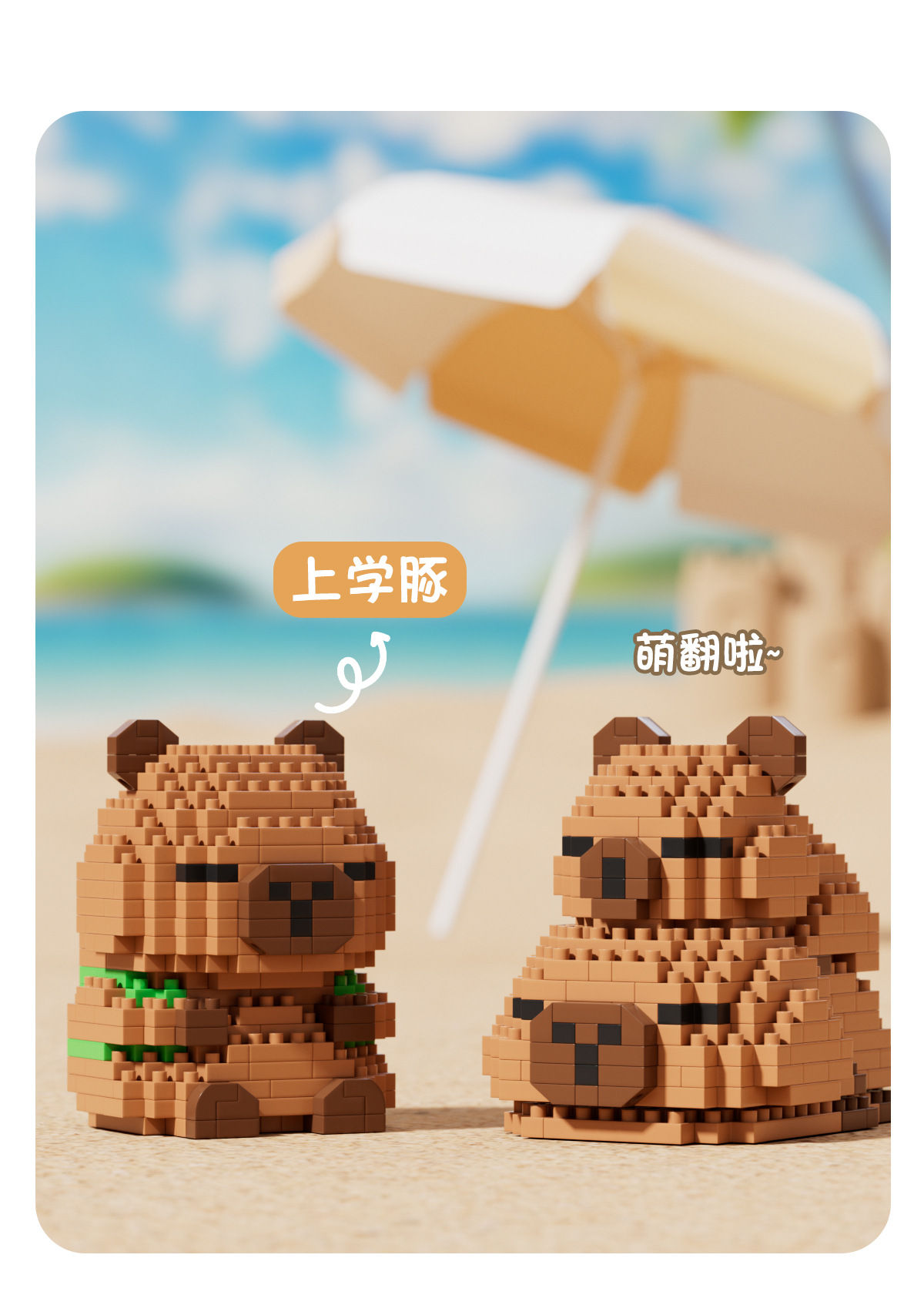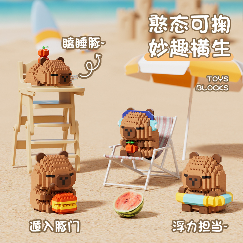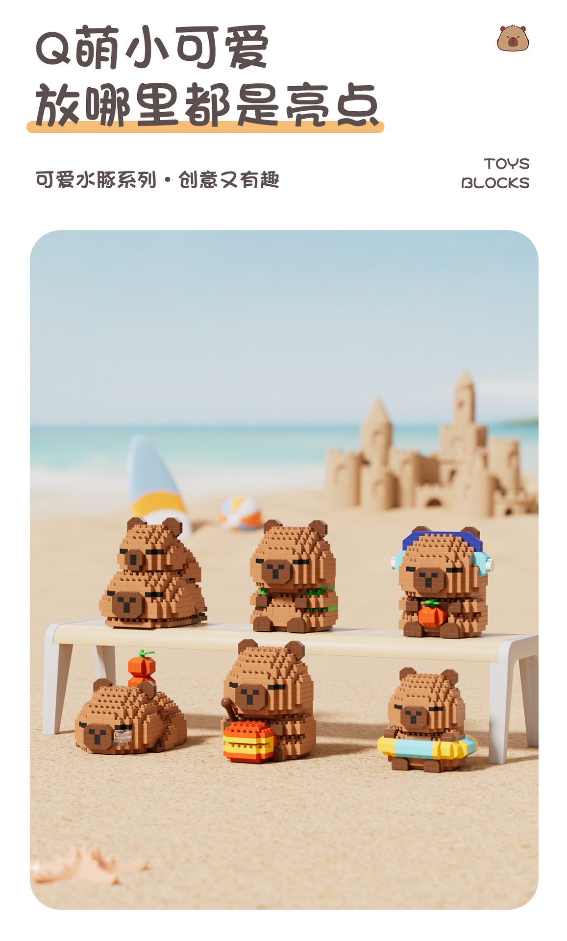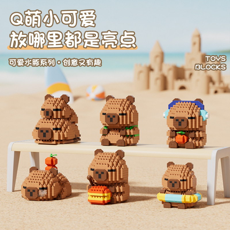 魔砖MZ353-358小颗粒拼装积木玩具益智卡皮巴拉可爱模型批发代发
