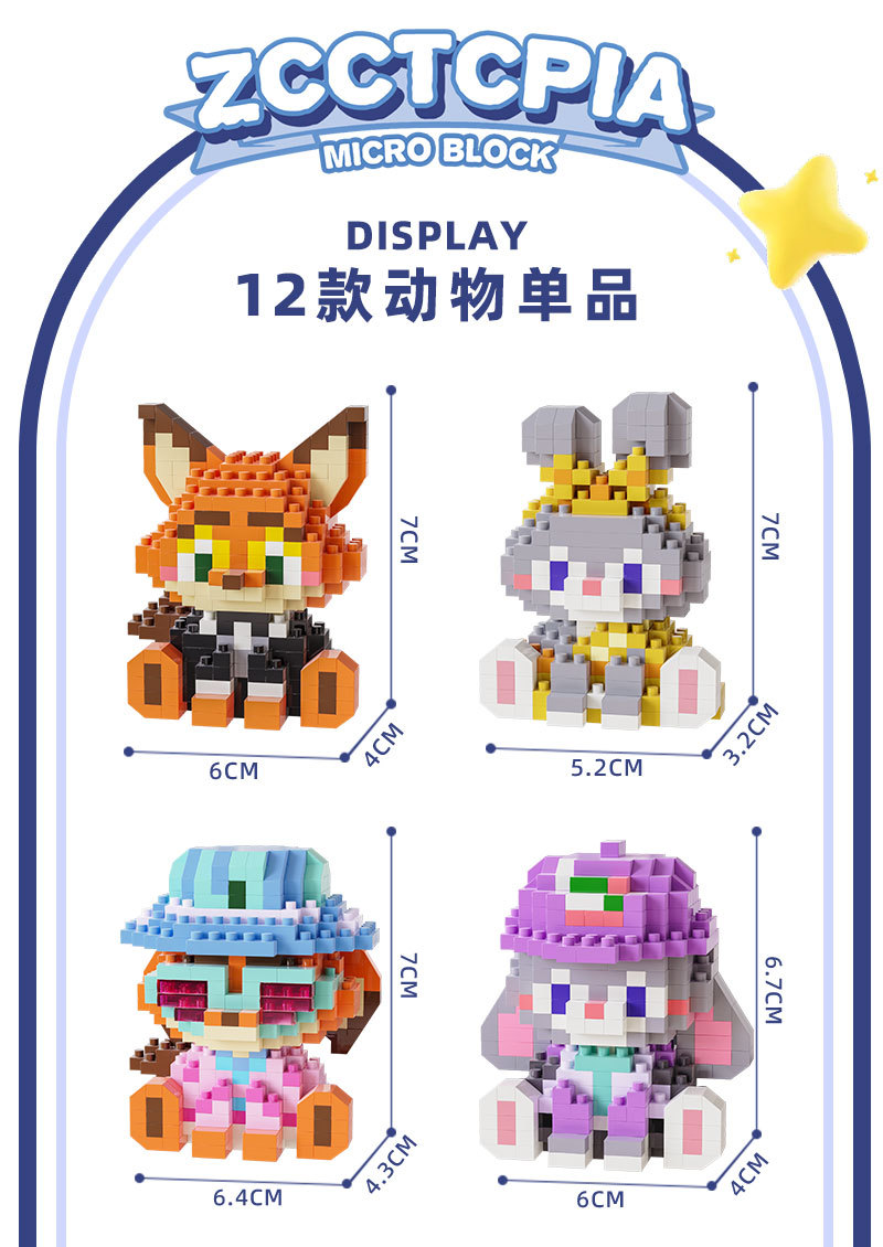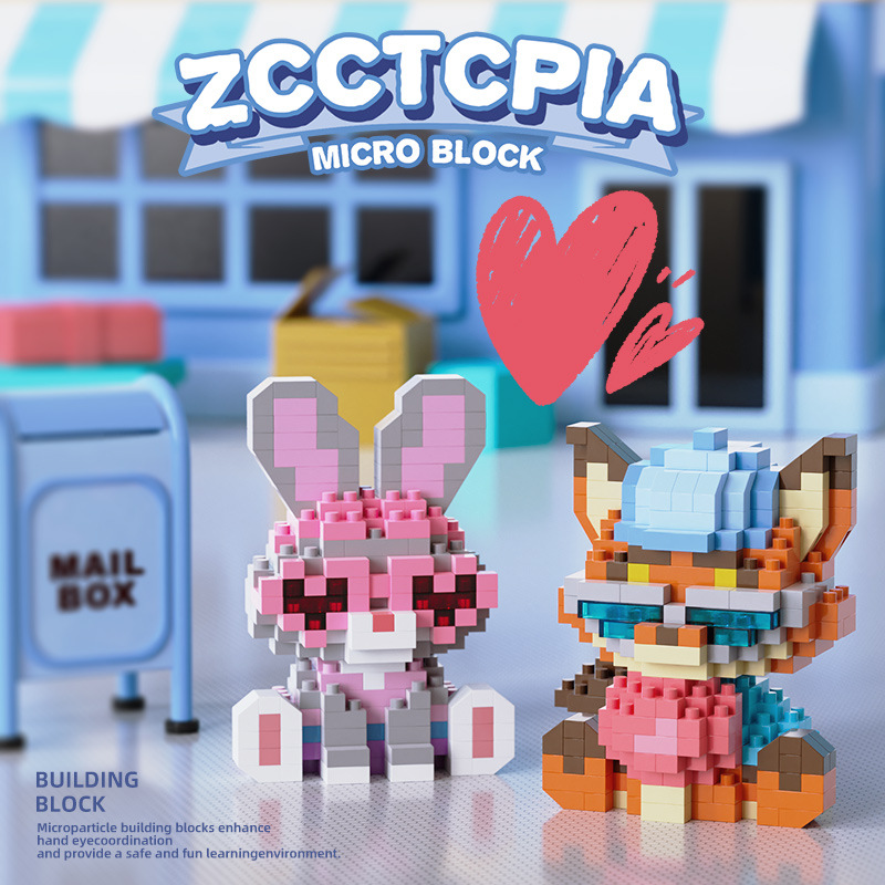 跨境批发代发动物城兔子狐狸公仔积木兼容乐高拼装玩具益智小摆件