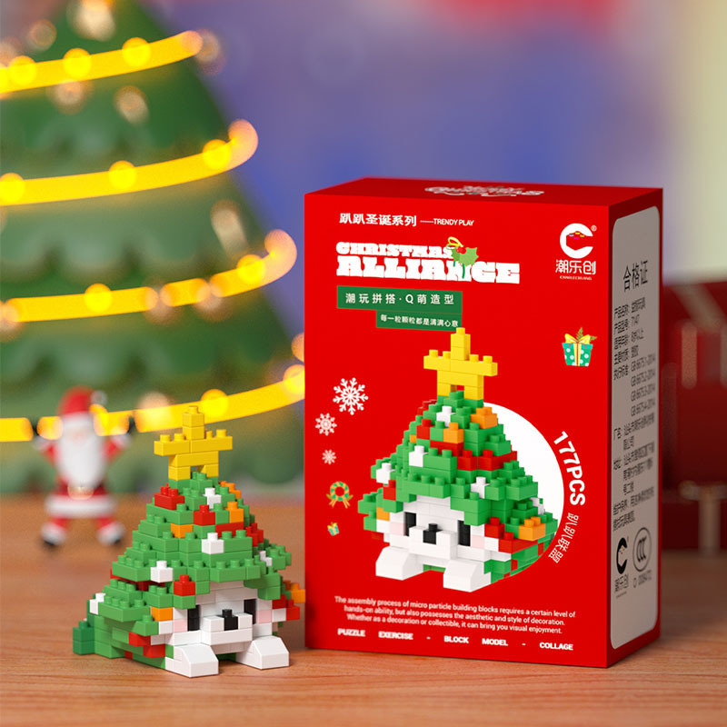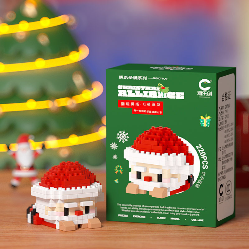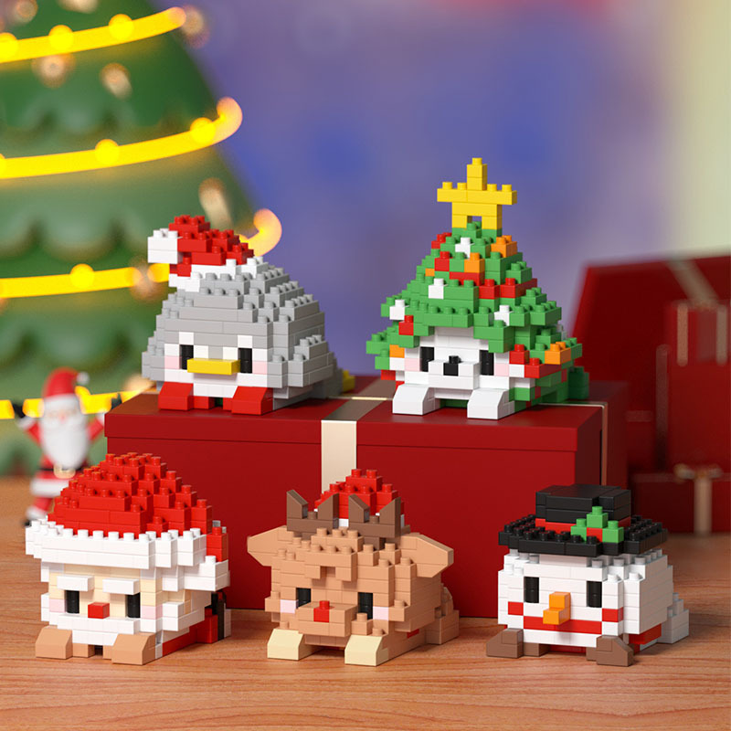 跨境潮乐创圣诞节积木微颗粒拼装益智雪人圣诞树摆件男女孩礼物