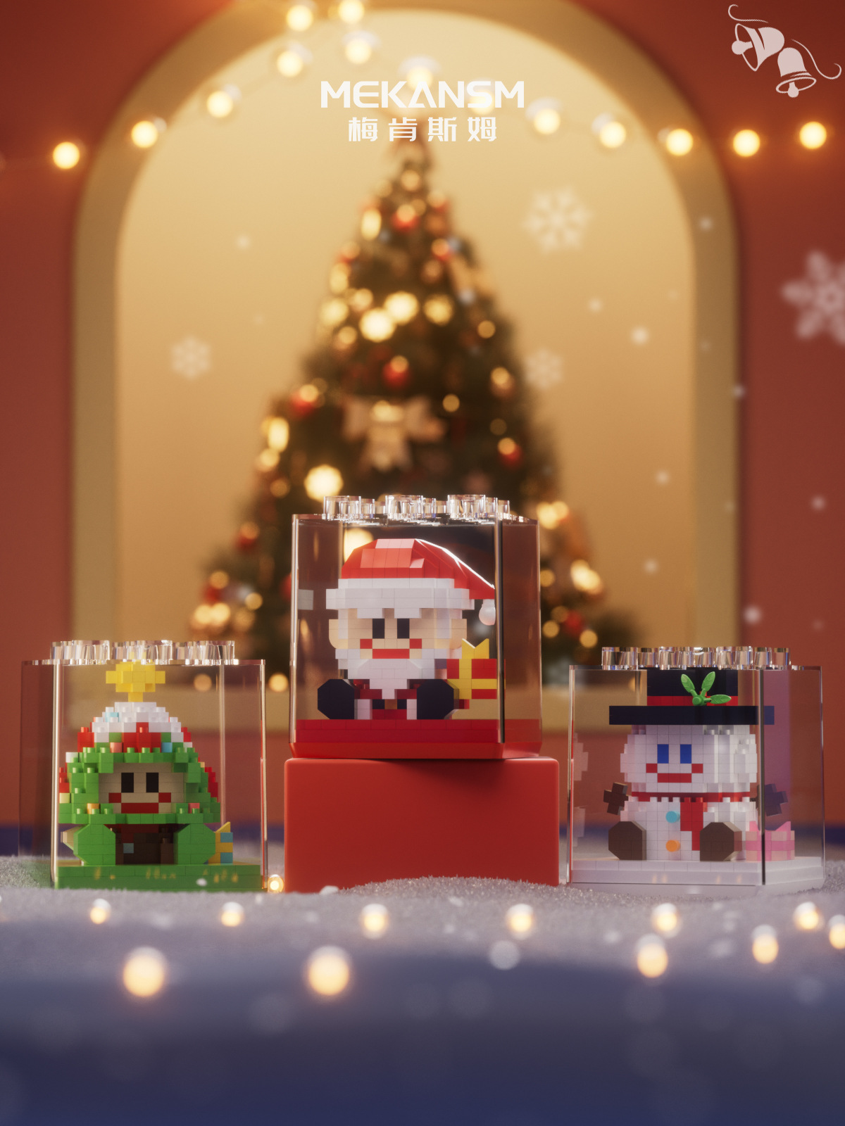 梅肯斯姆微小颗粒积木拼装玩具益智拼图圣诞节小礼物装饰跨境批发