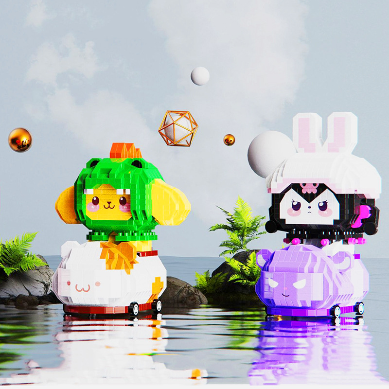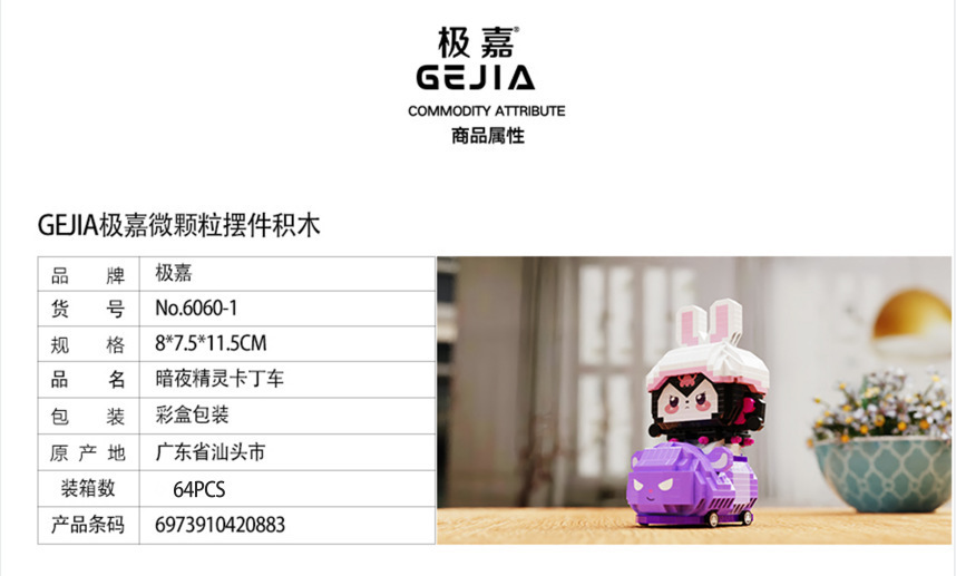 极嘉微颗粒玩具休闲拼插地积木玩具6060-1-4卡丁车零售批发