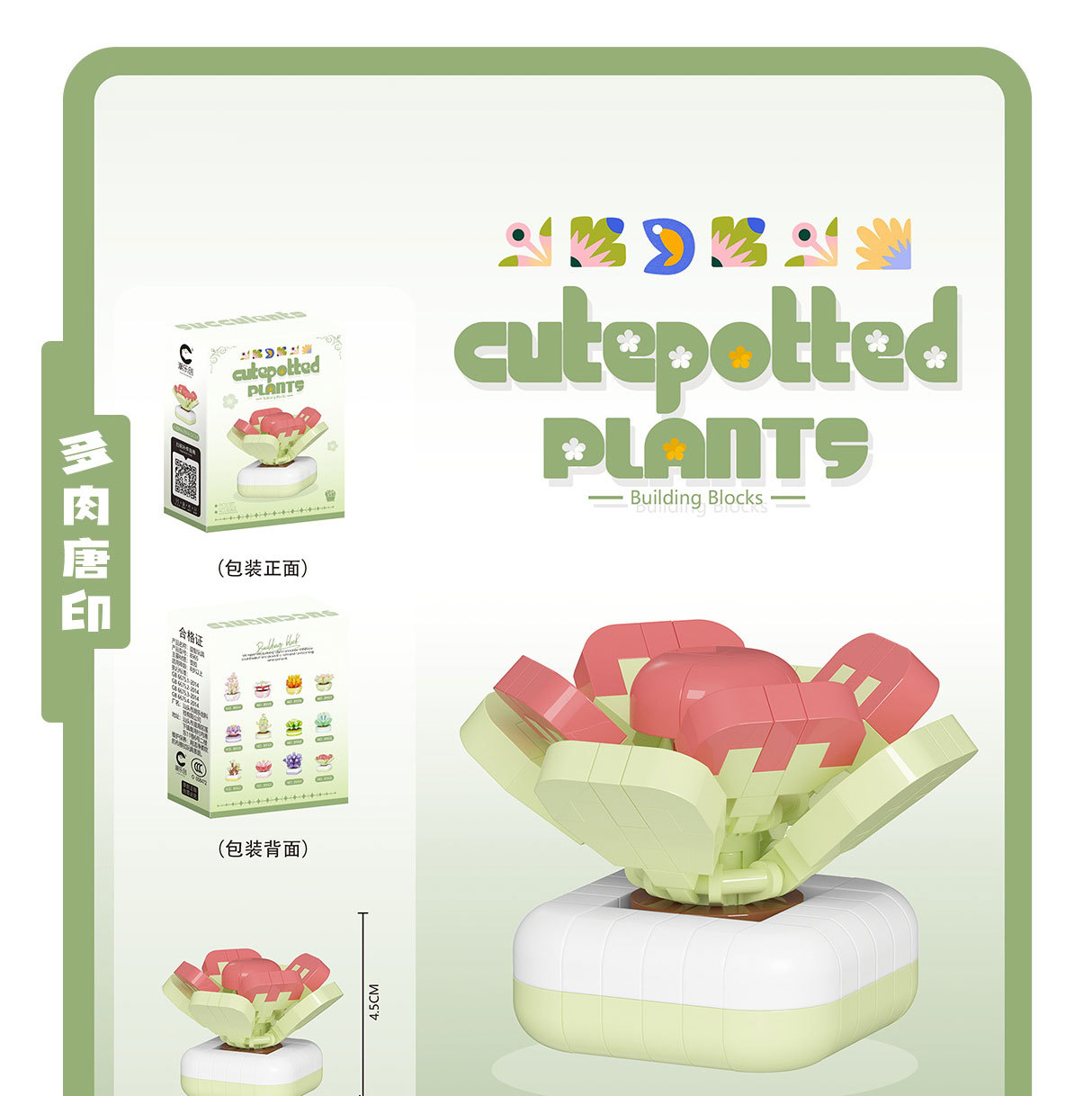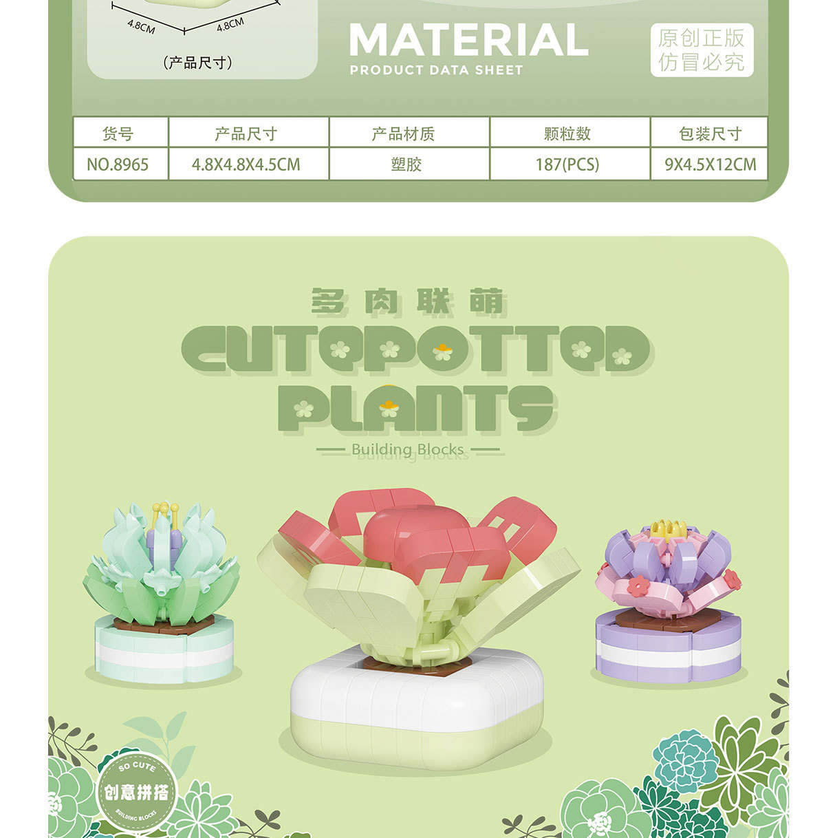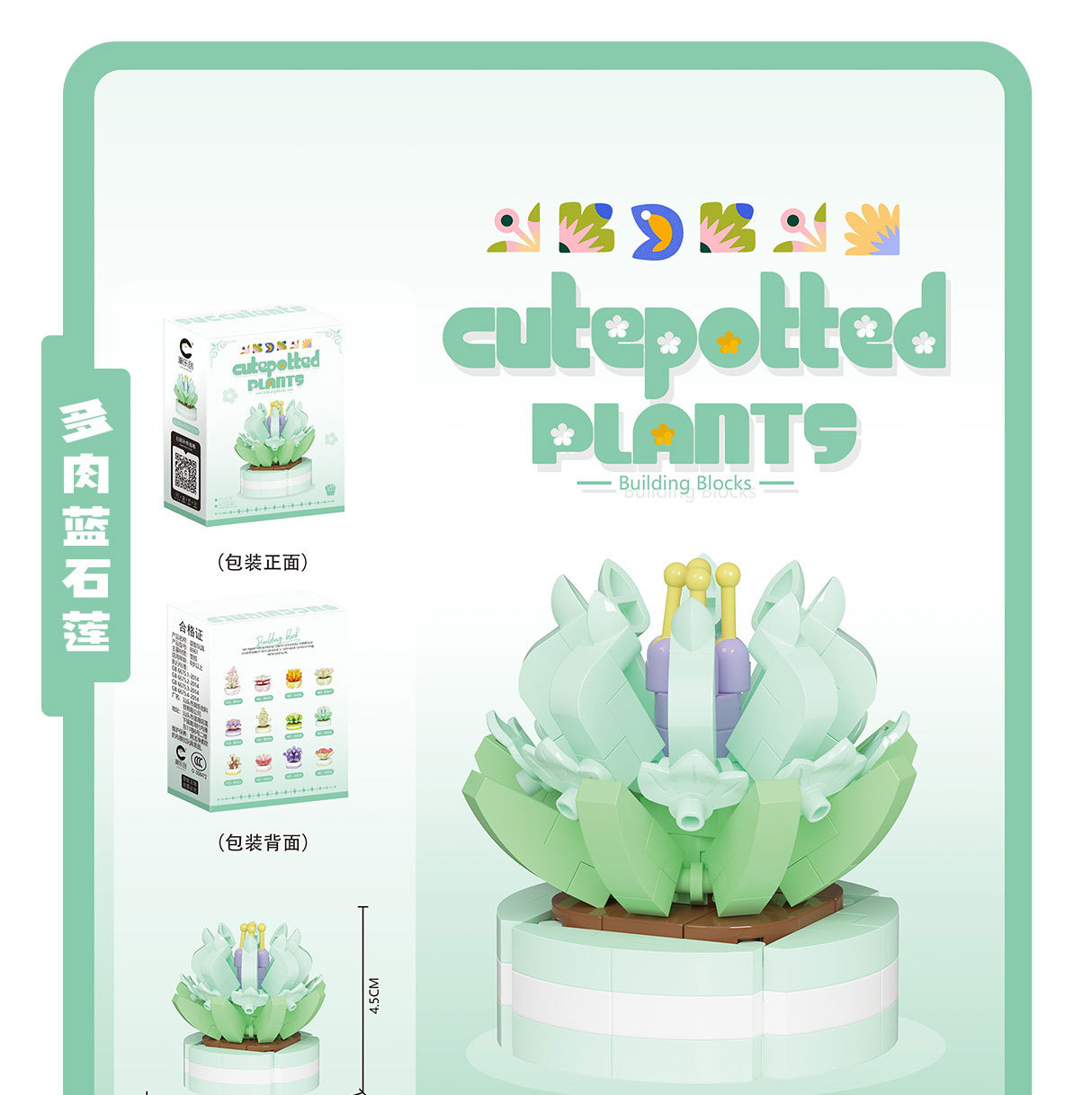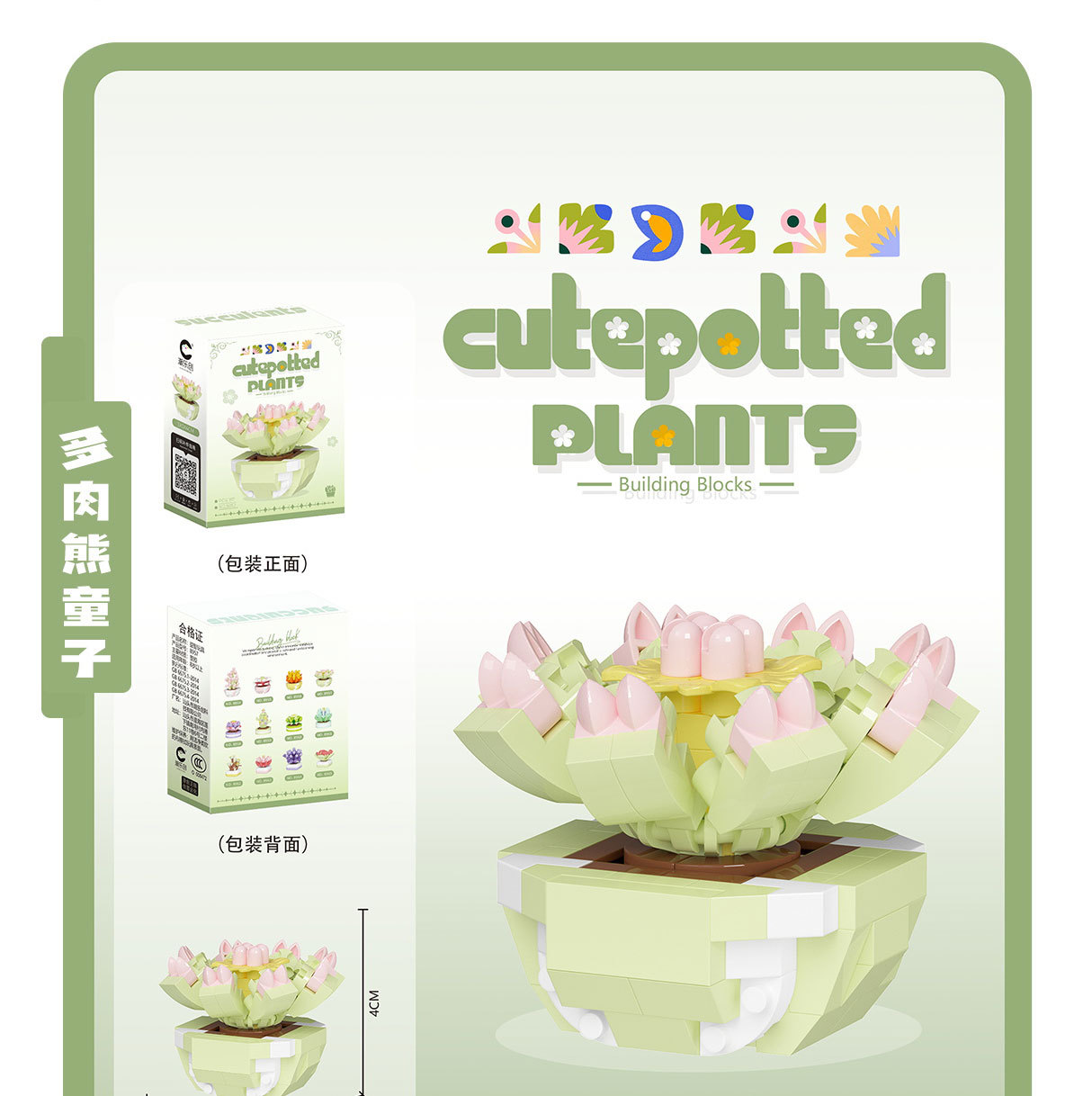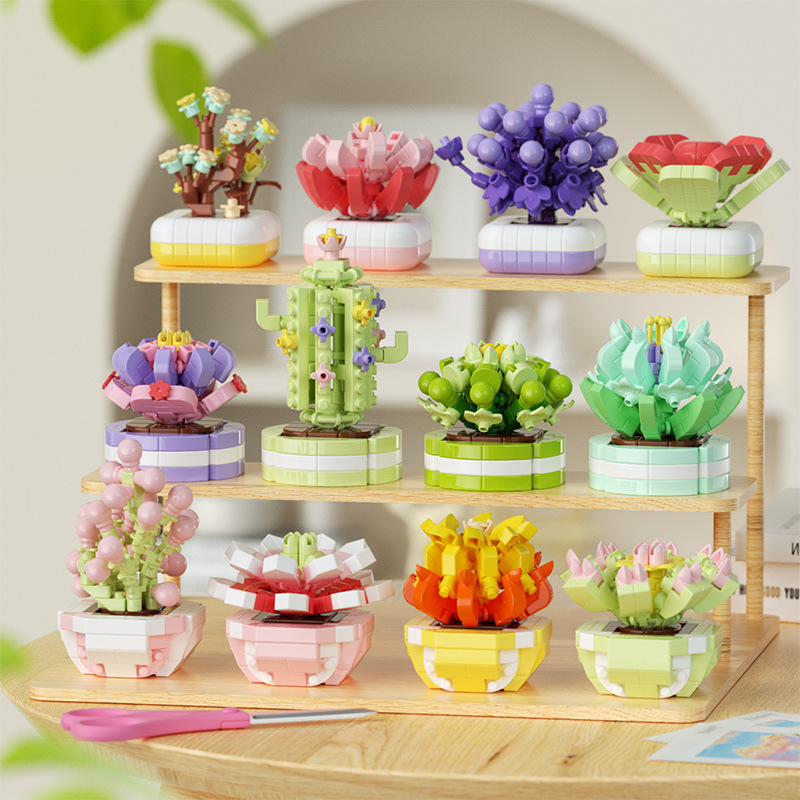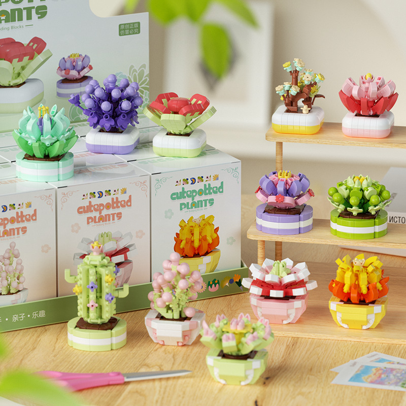 可爱微小颗粒盆栽多肉植物积木益智拼装玩具摆件儿童礼物批发跨境