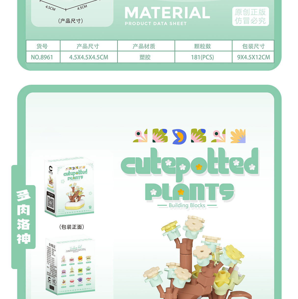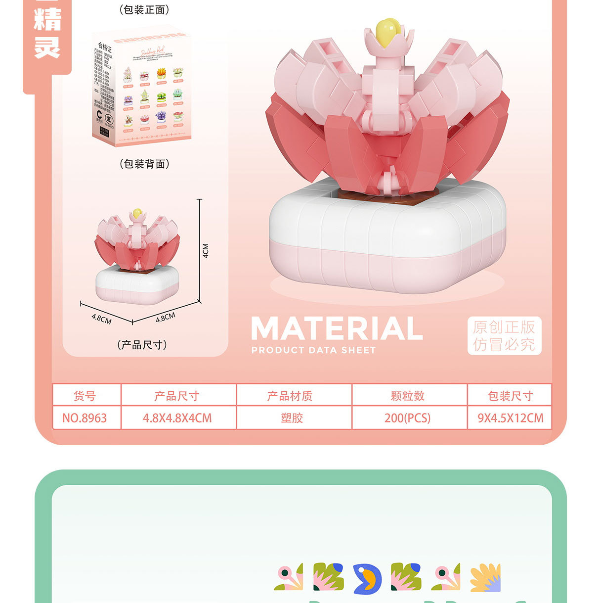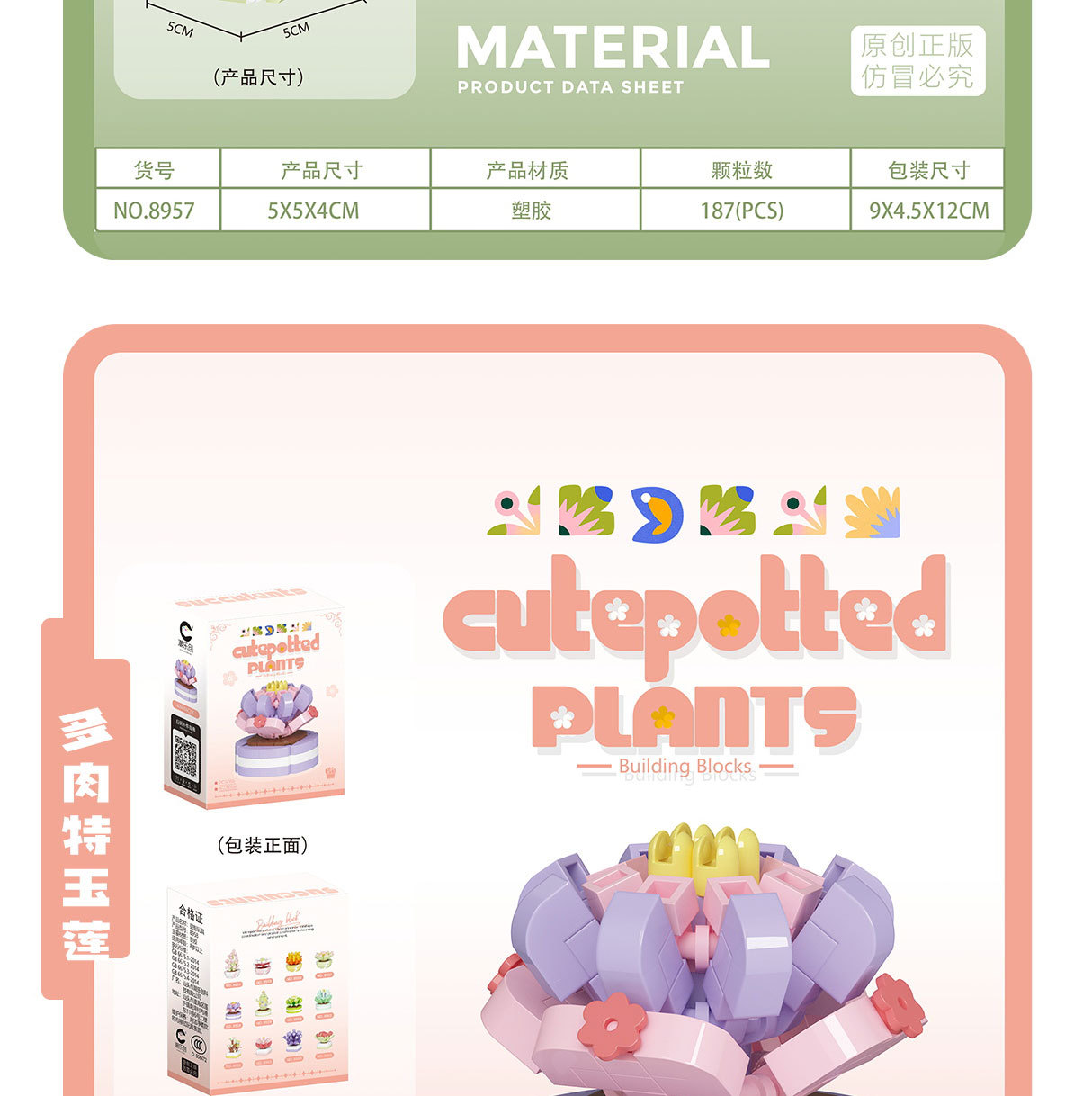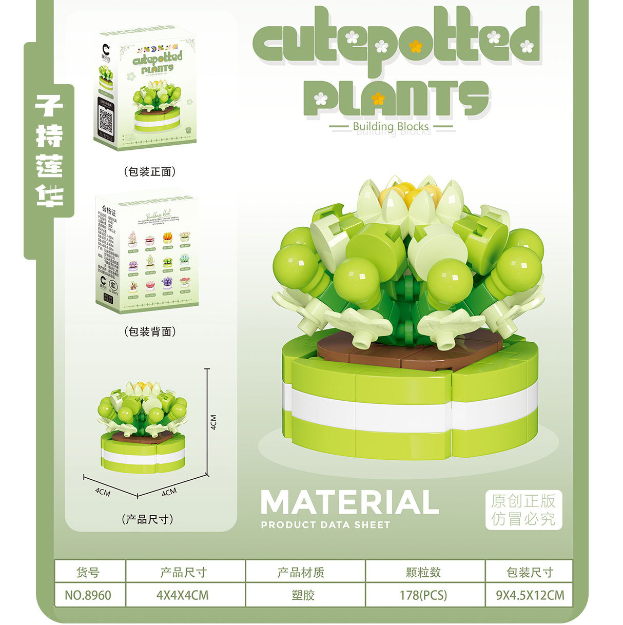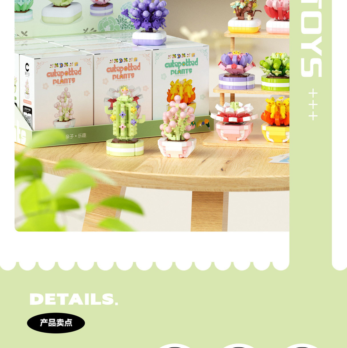 可爱微小颗粒盆栽多肉植物积木益智拼装玩具摆件儿童礼物批发跨境