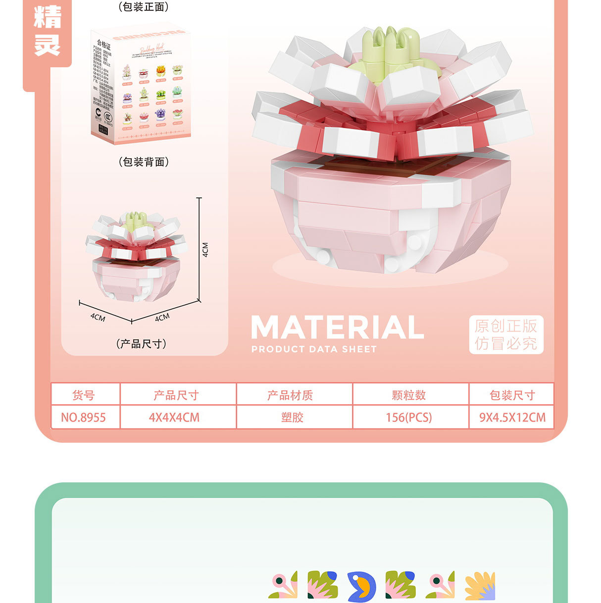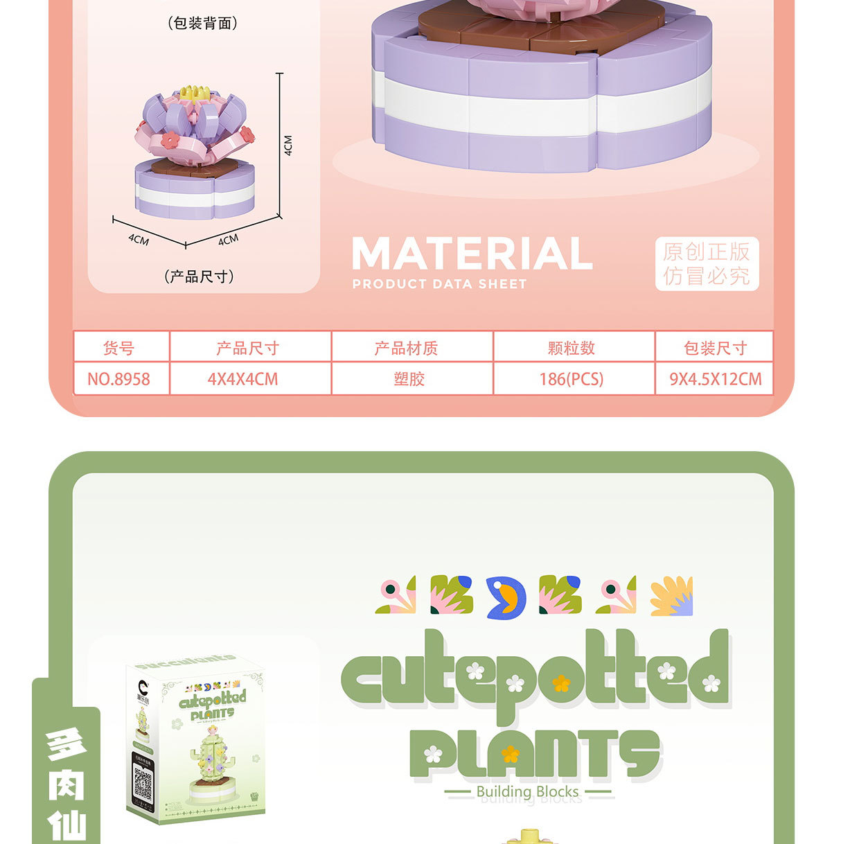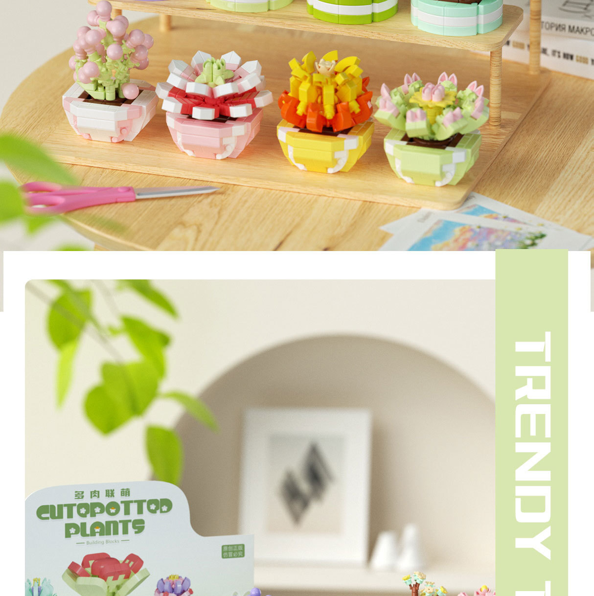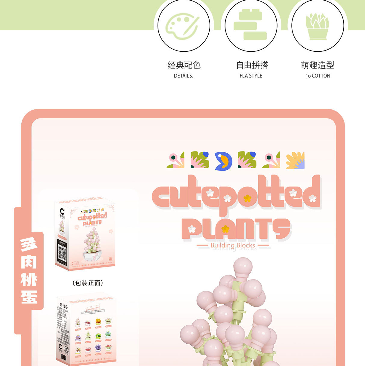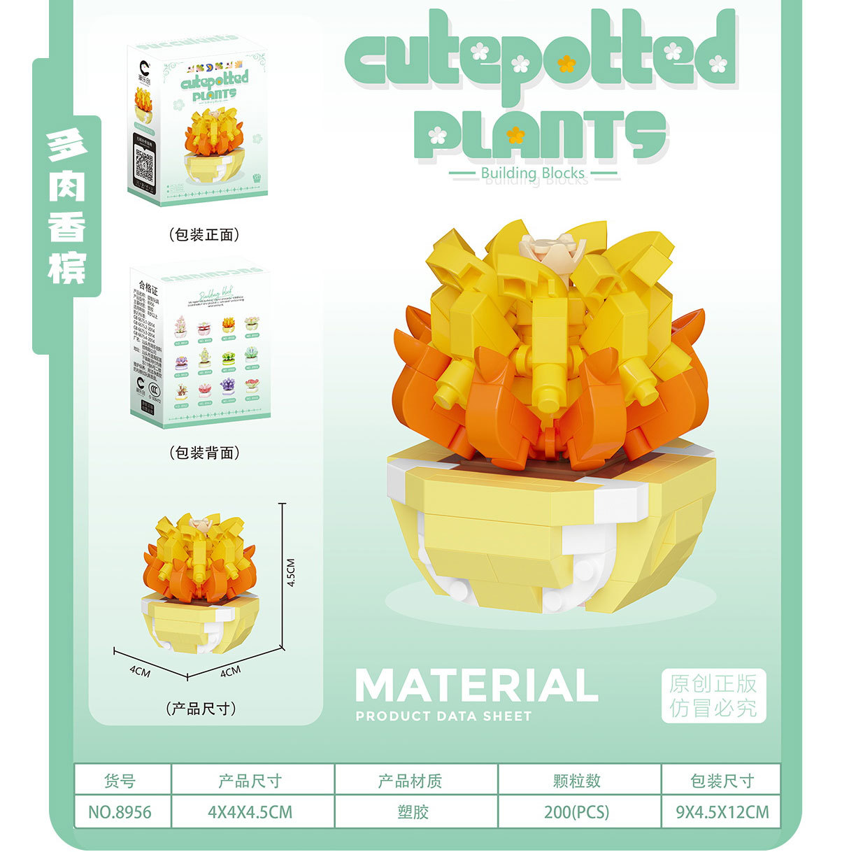 可爱微小颗粒盆栽多肉植物积木益智拼装玩具摆件儿童礼物批发跨境