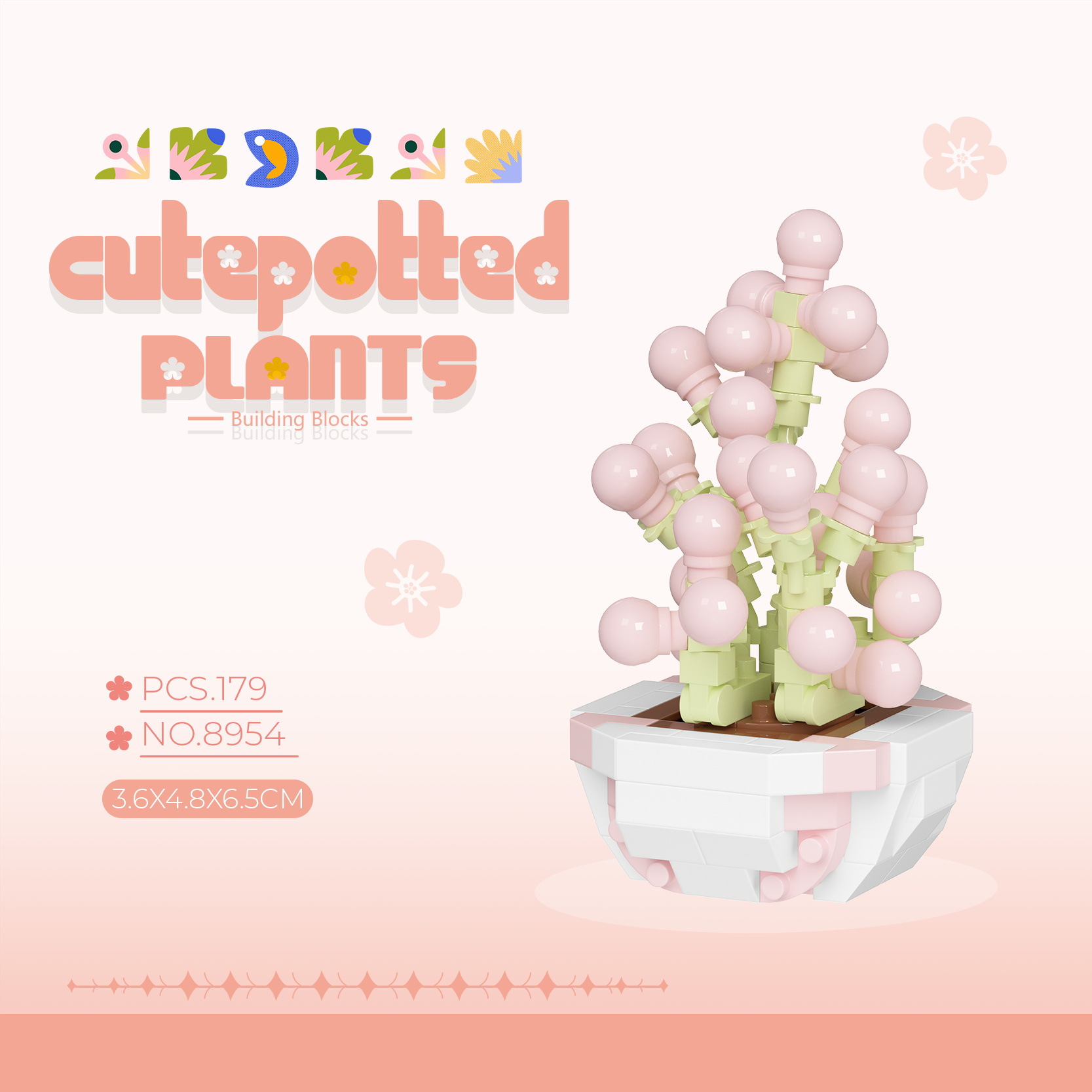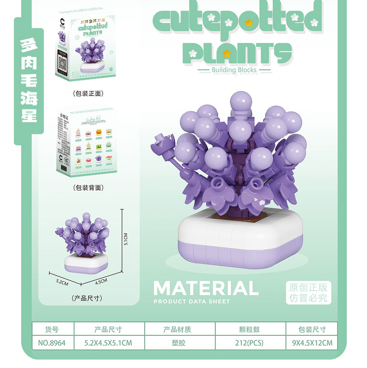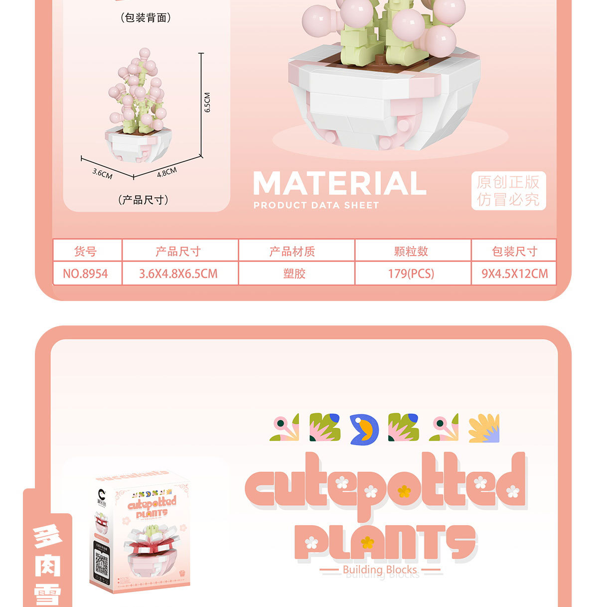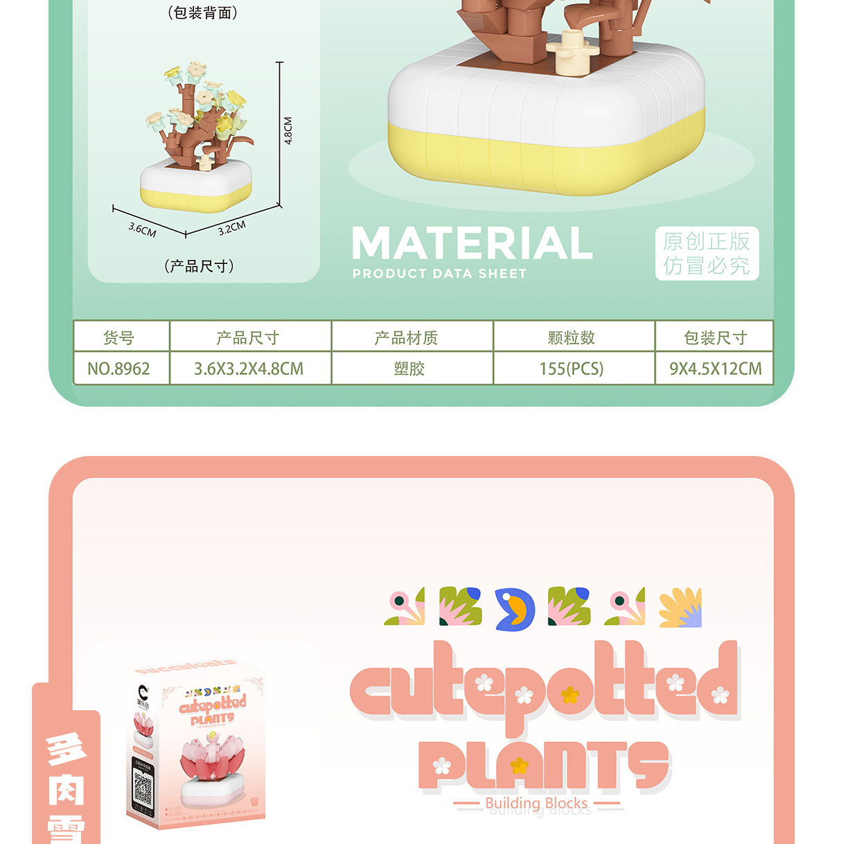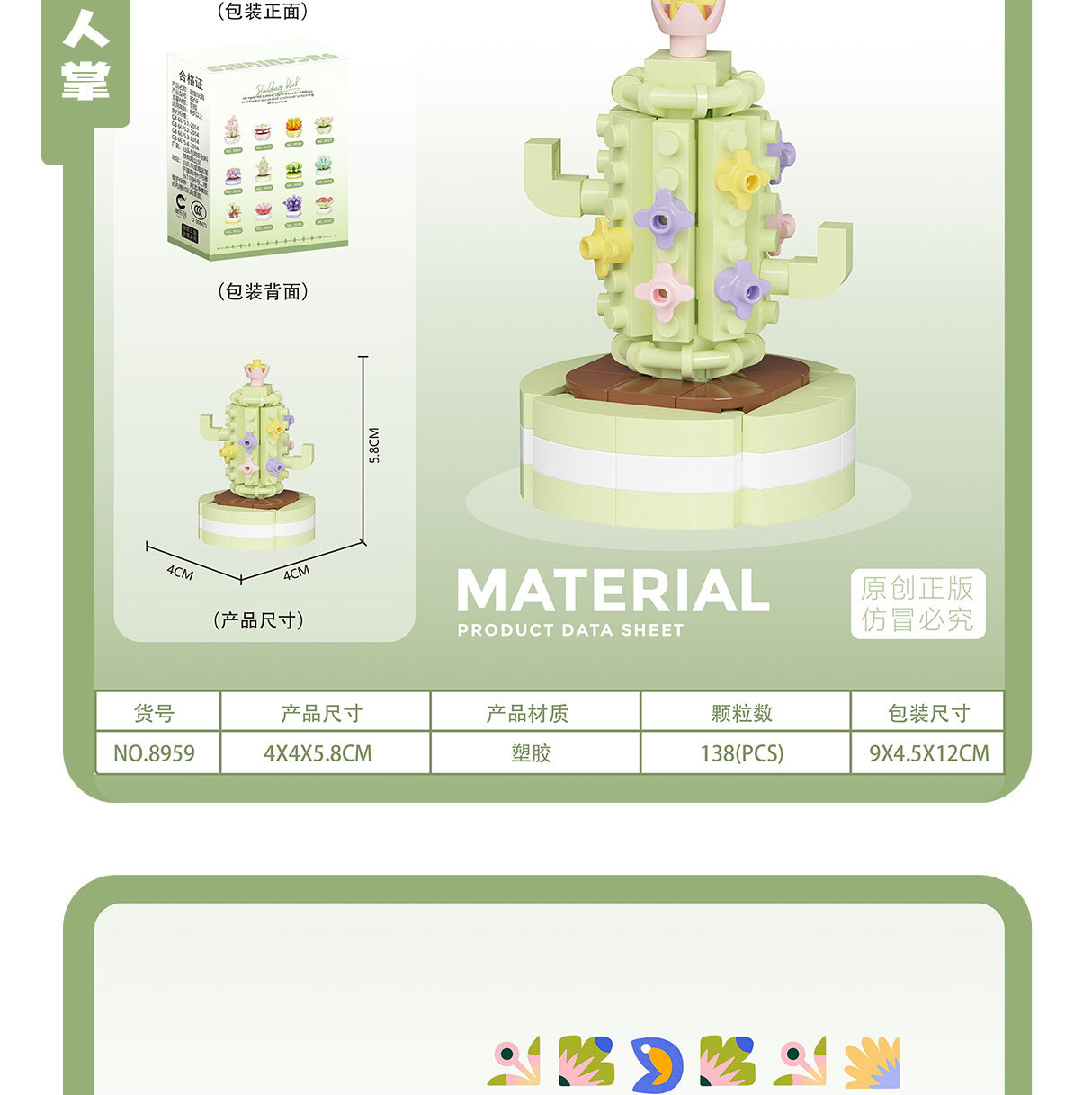 可爱微小颗粒盆栽多肉植物积木益智拼装玩具摆件儿童礼物批发跨境