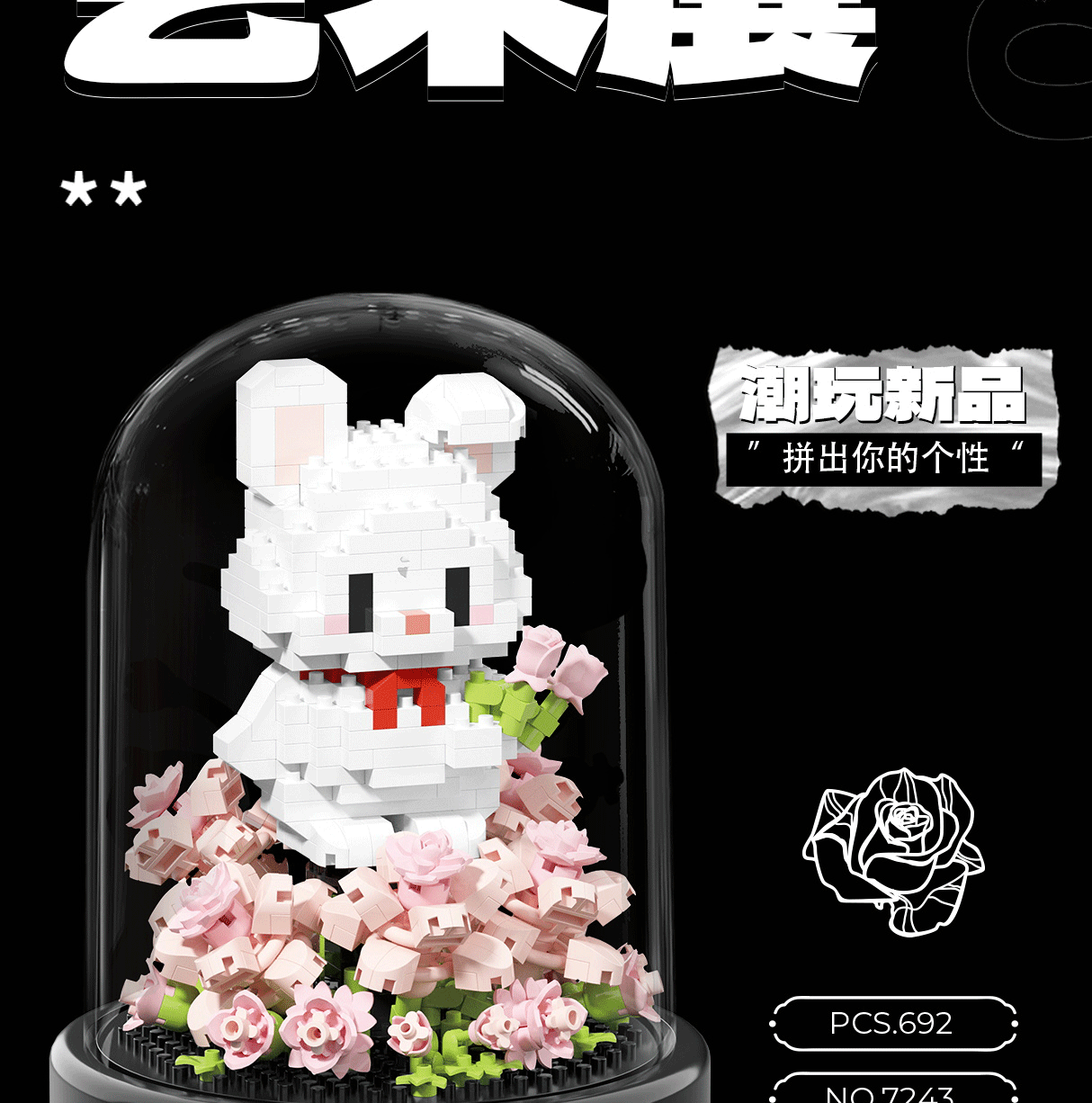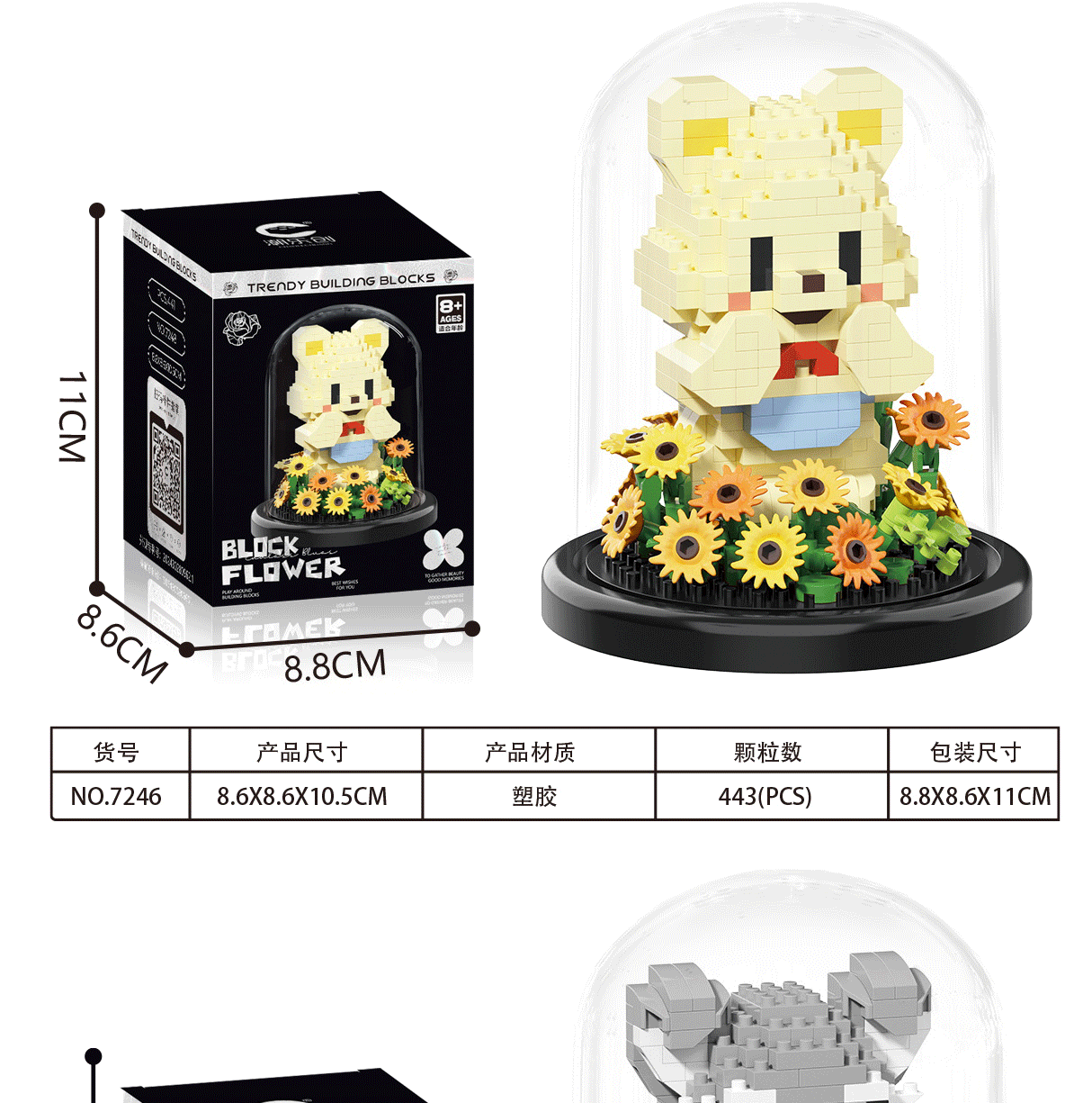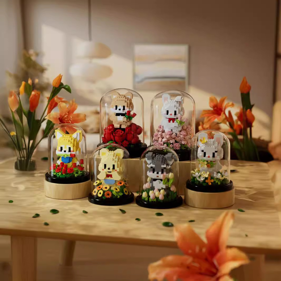 潮乐创萌宠花园送花小熊玫瑰盆栽积木儿童拼装玩具礼物兼容乐高