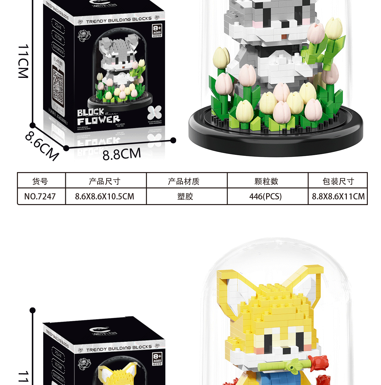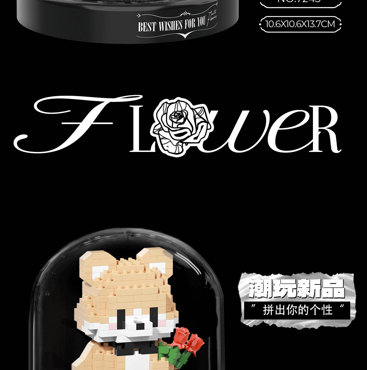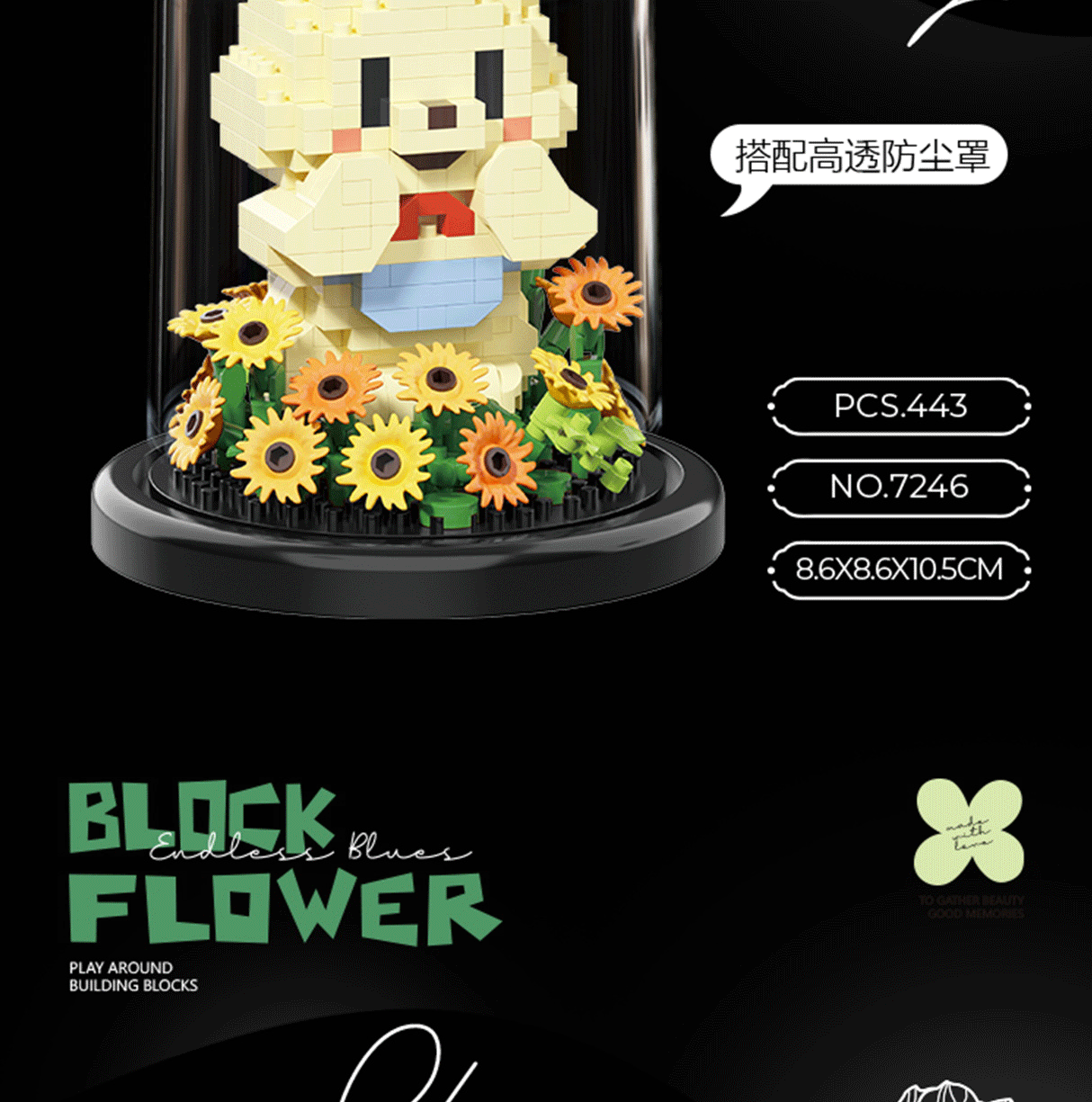 潮乐创萌宠花园送花小熊玫瑰盆栽积木儿童拼装玩具礼物兼容乐高