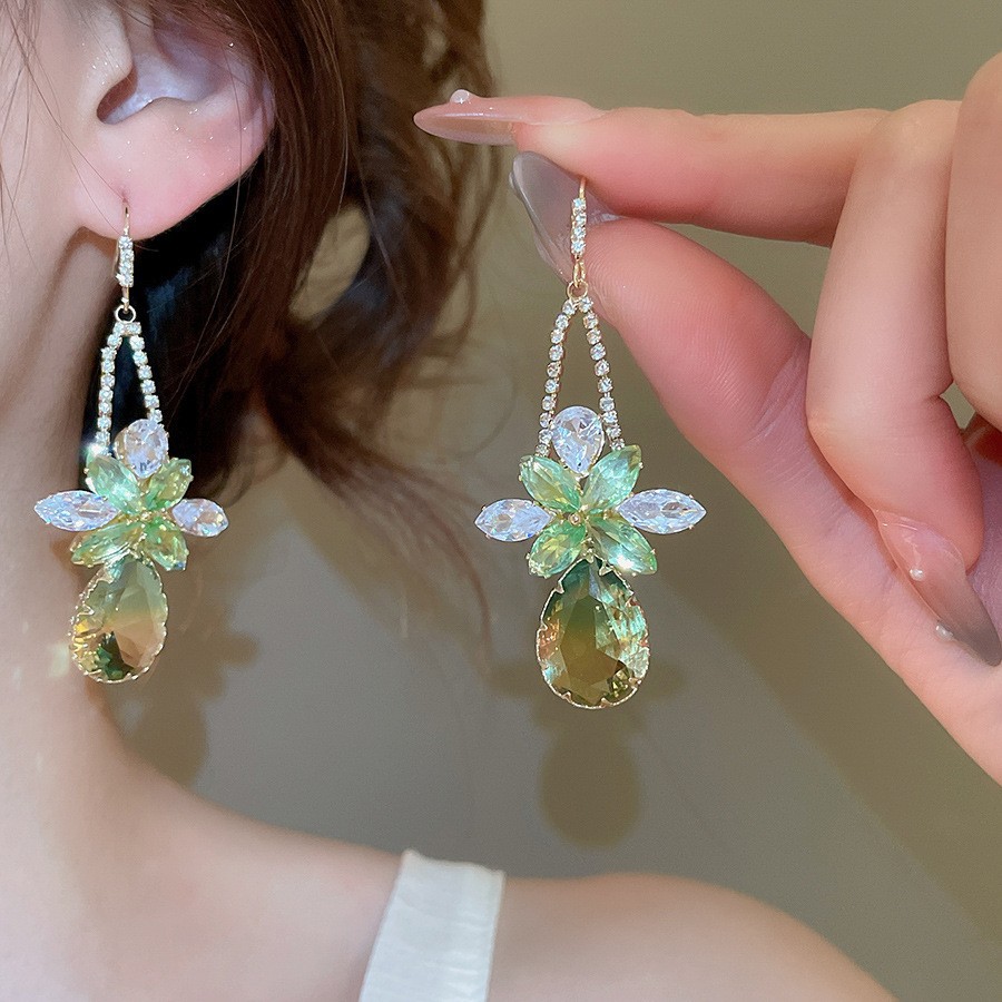 银针镶钻水晶流苏耳环民族风小众气质耳环轻奢高级感重工夸张耳饰