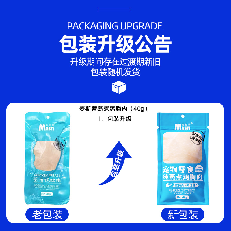 麦斯蒂蒸煮鸡胸肉40g/袋猫咪狗狗宠物零食鸡胸肉猫咪零食奖励即食