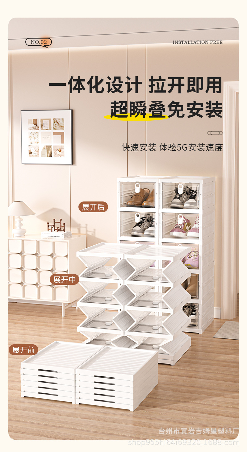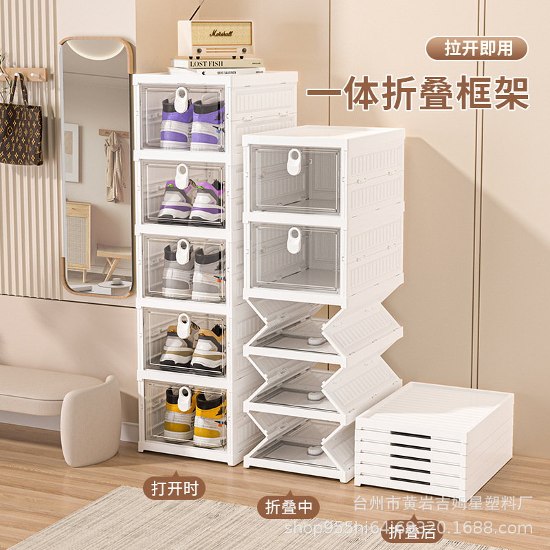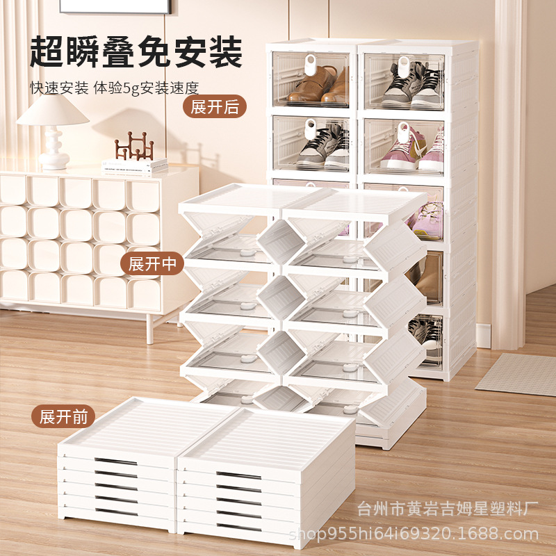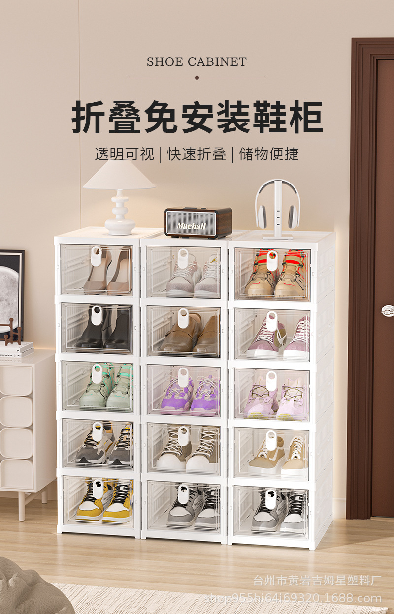 免安装折叠鞋盒收纳架透明鞋架收纳盒多层一体式塑料家用防尘鞋柜