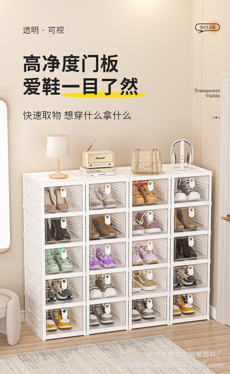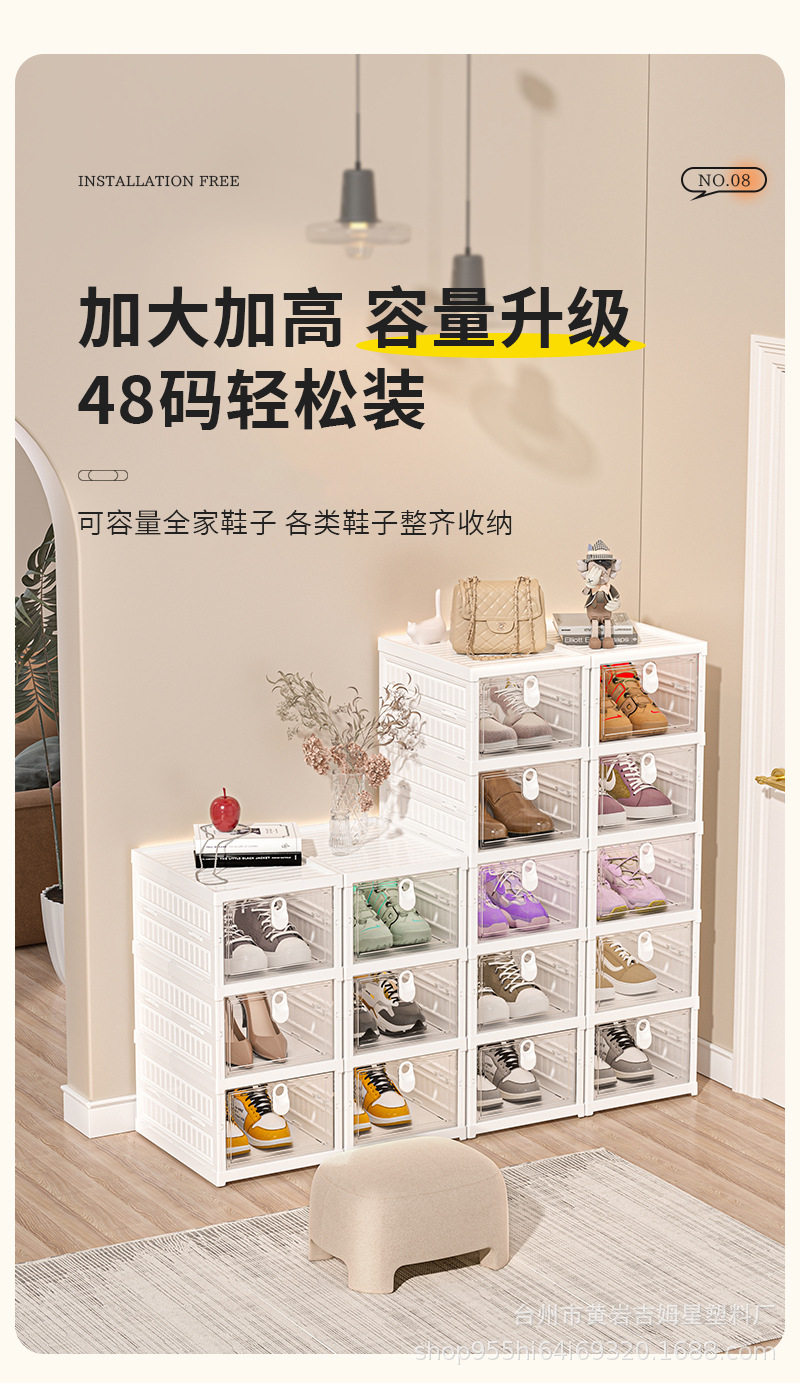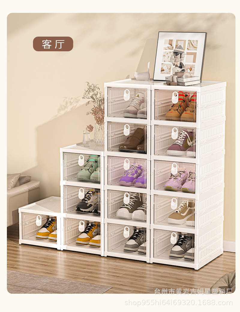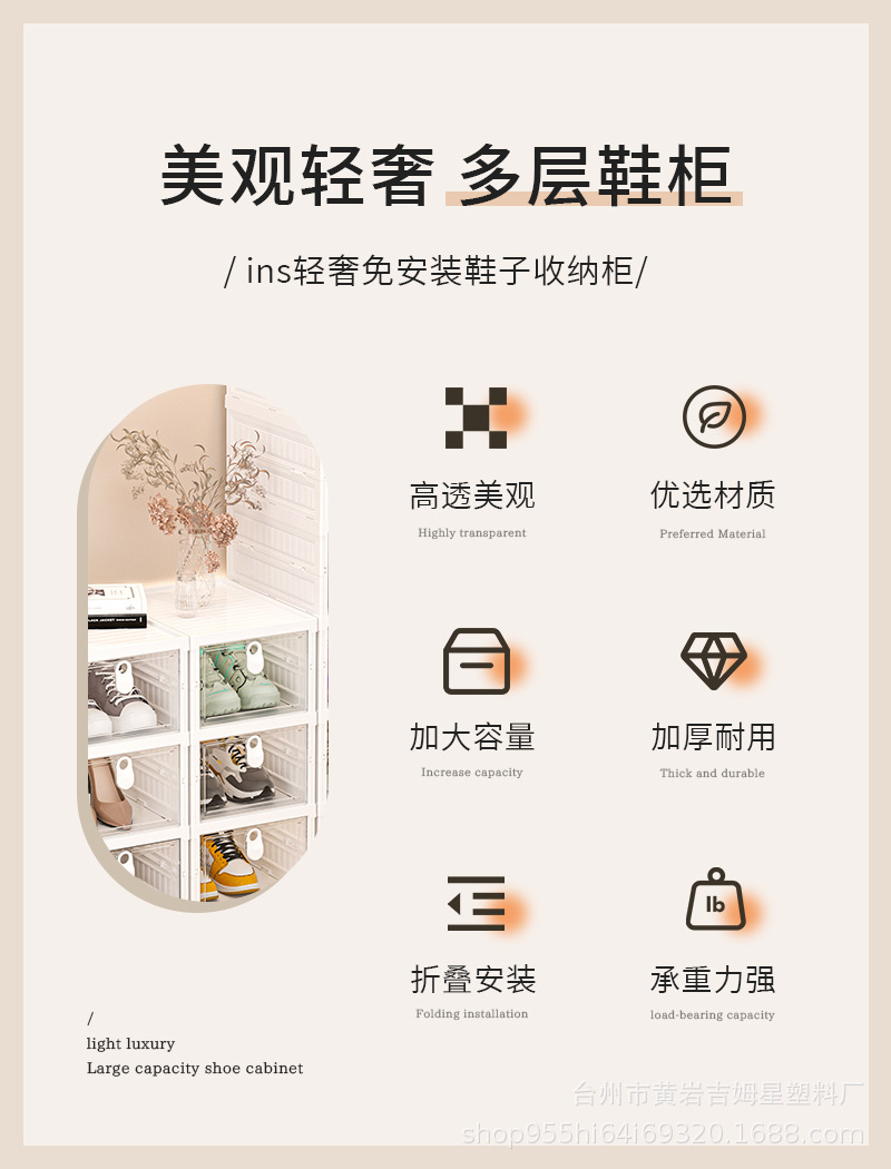 免安装折叠鞋盒收纳架透明鞋架收纳盒多层一体式塑料家用防尘鞋柜