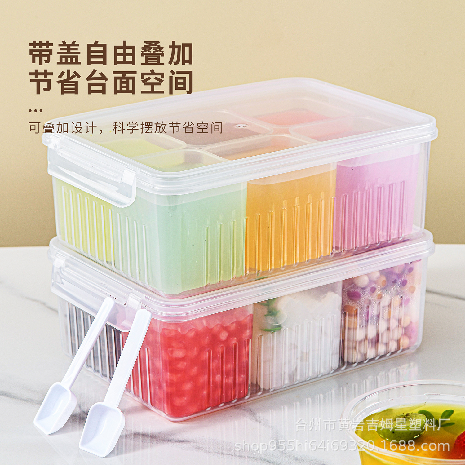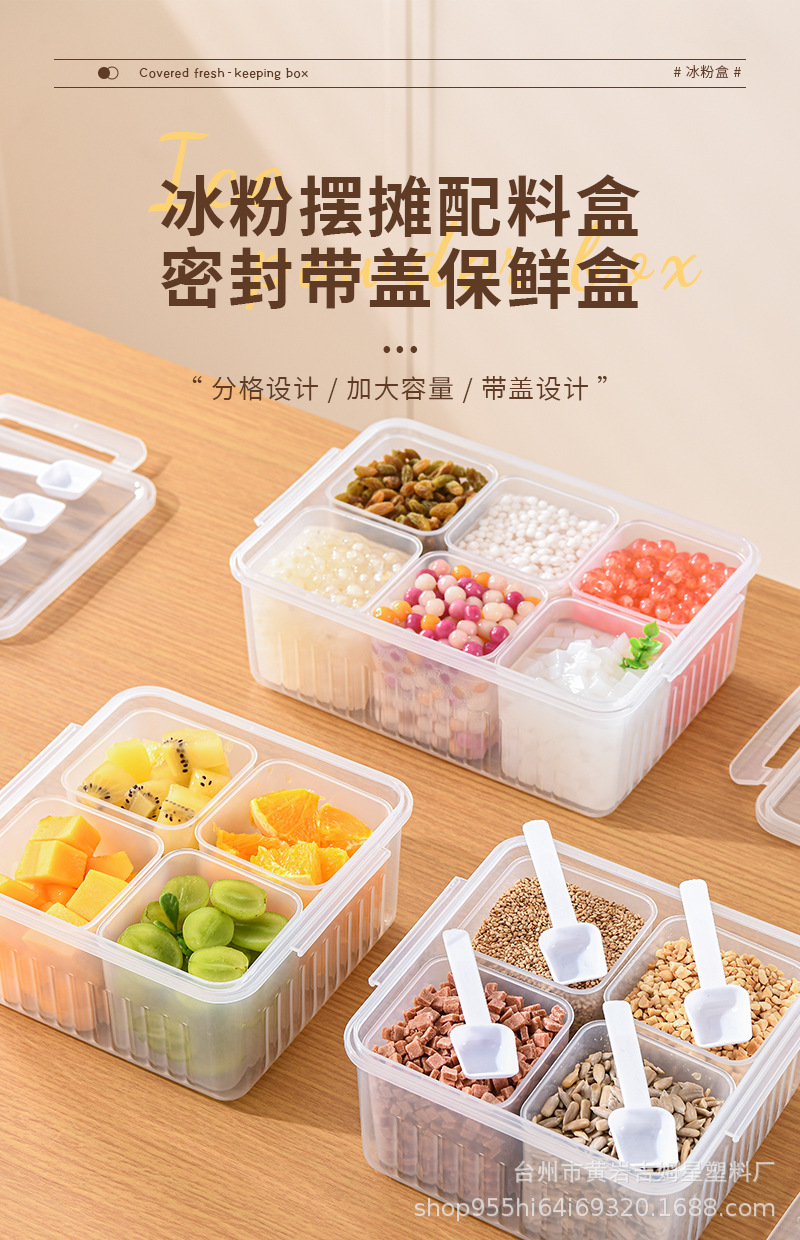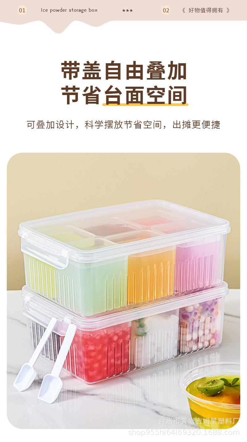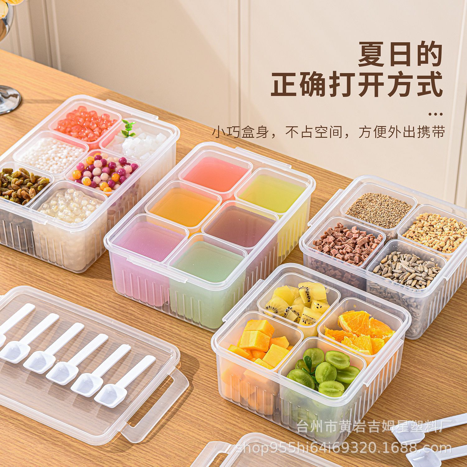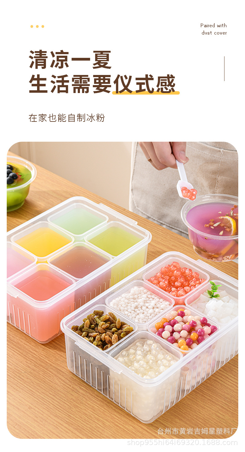 家用冰粉小料分装盒单独分隔透明带盖食物收纳分格盒冰粉盒冰箱保