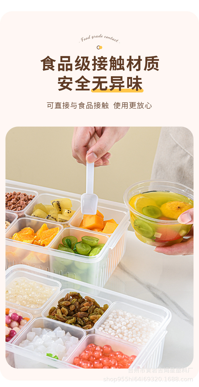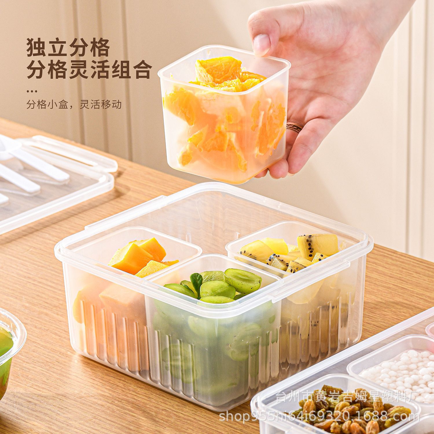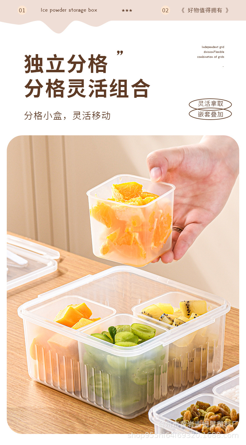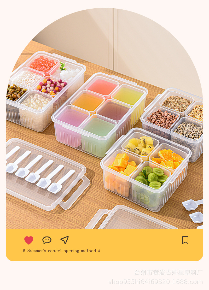 家用冰粉小料分装盒单独分隔透明带盖食物收纳分格盒冰粉盒冰箱保