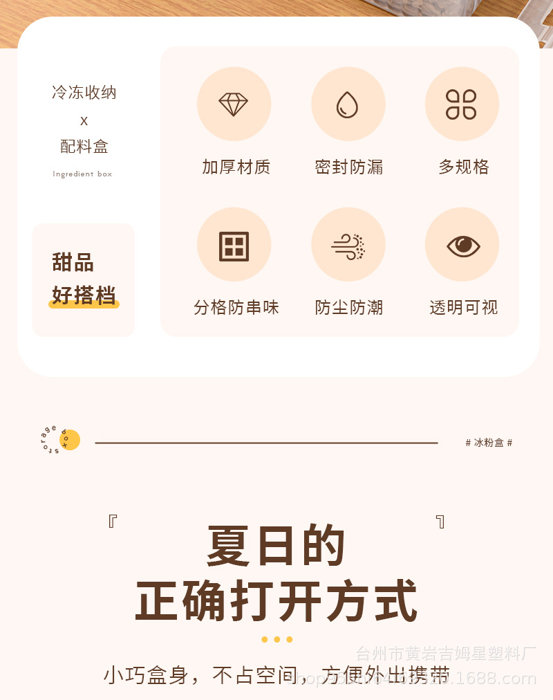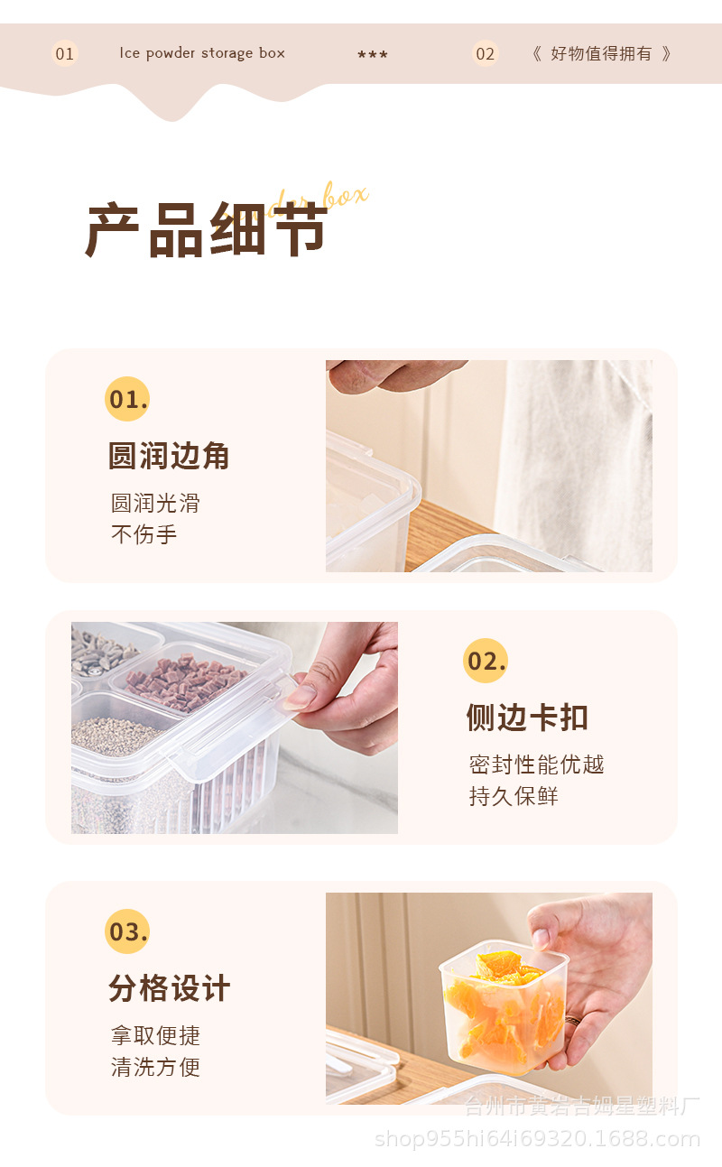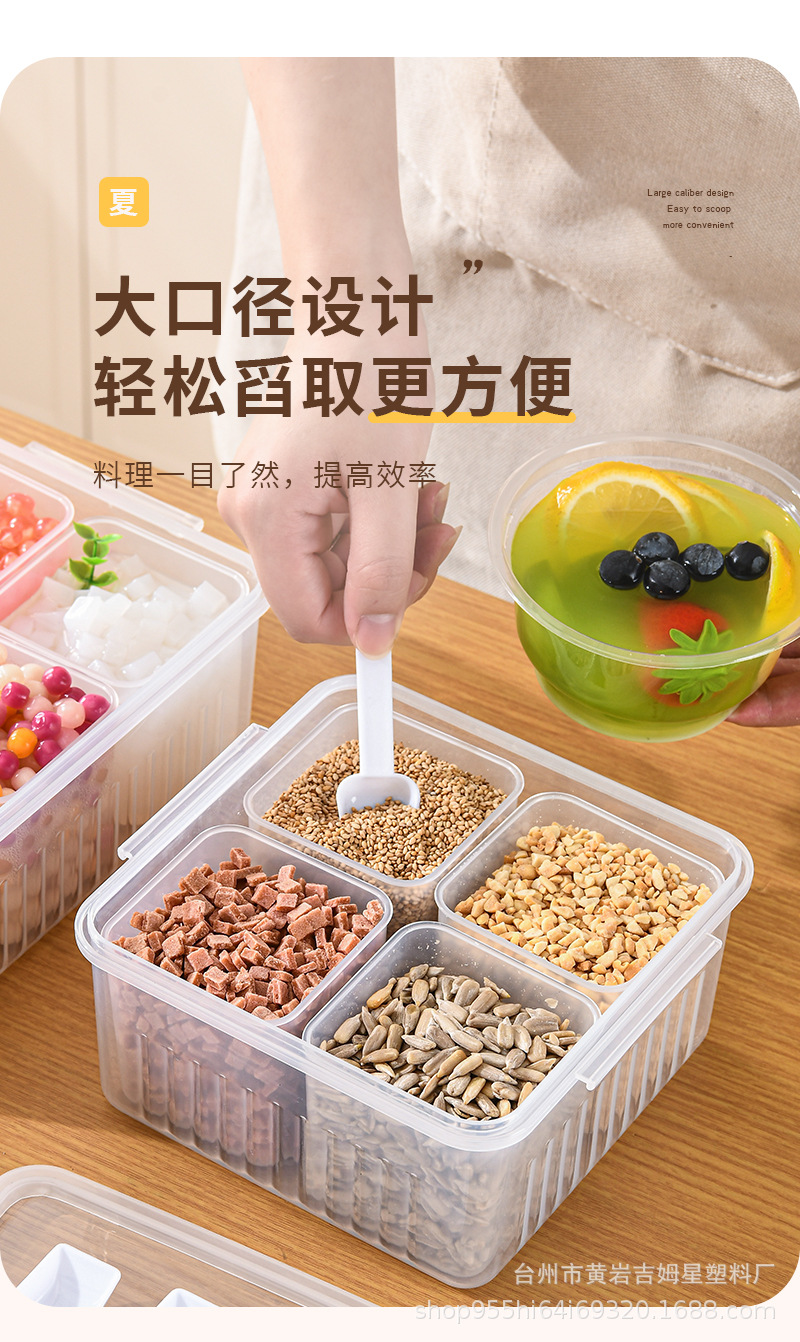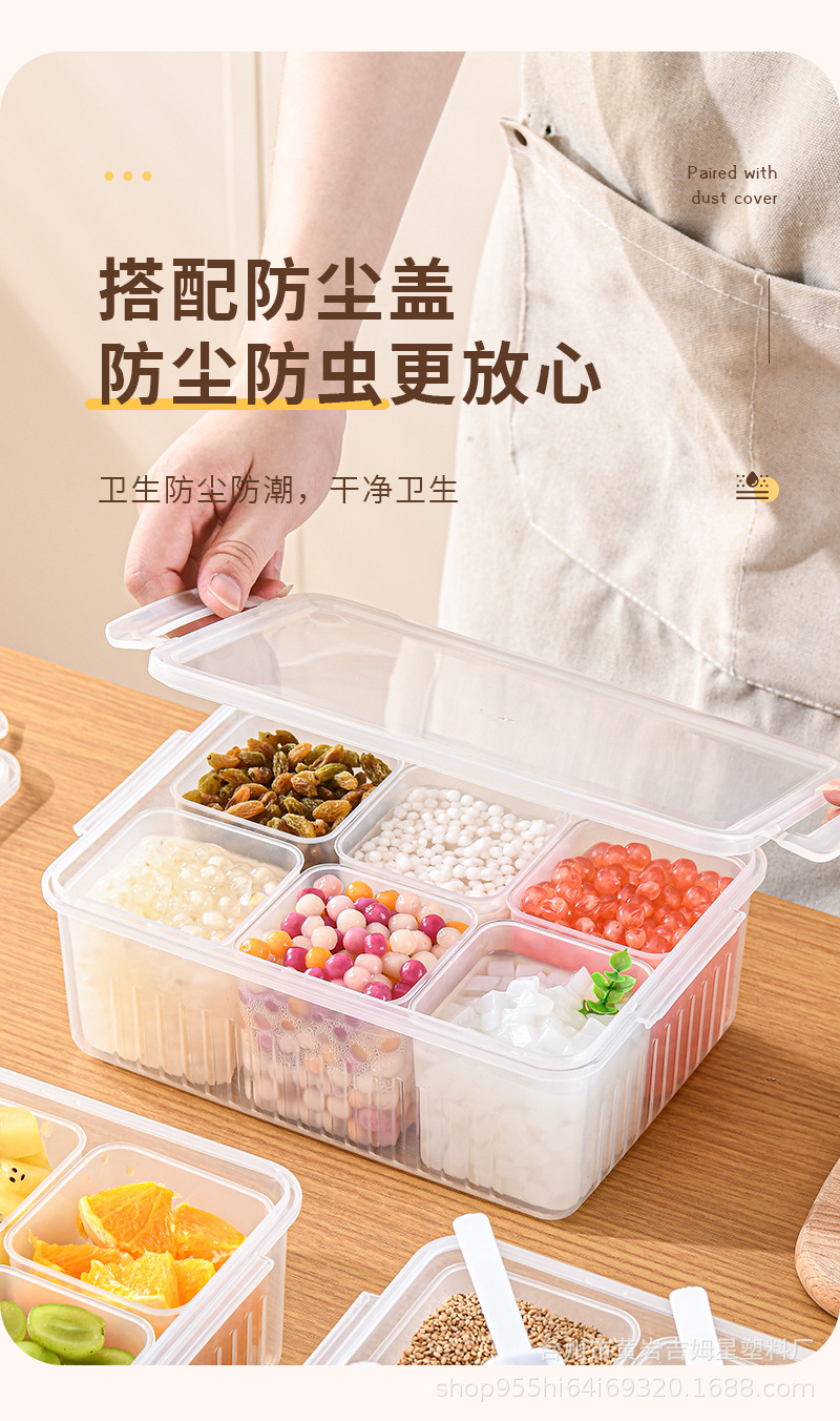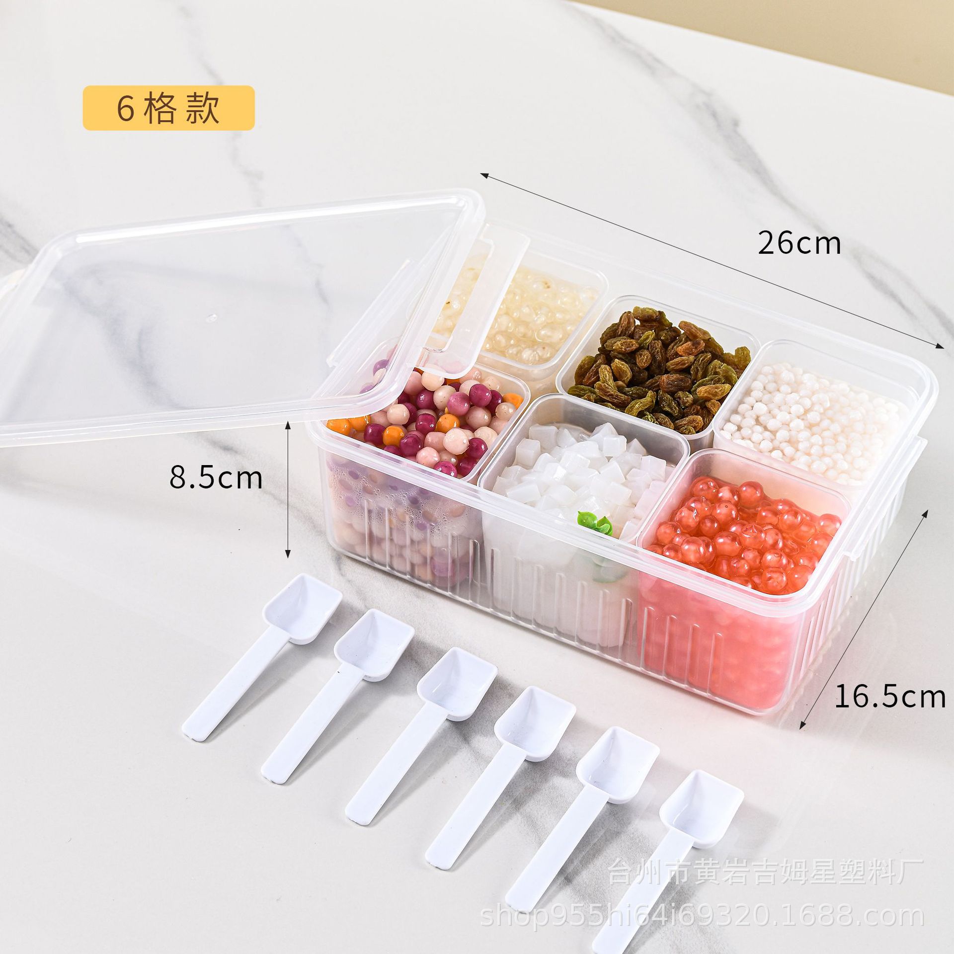 家用冰粉小料分装盒单独分隔透明带盖食物收纳分格盒冰粉盒冰箱保