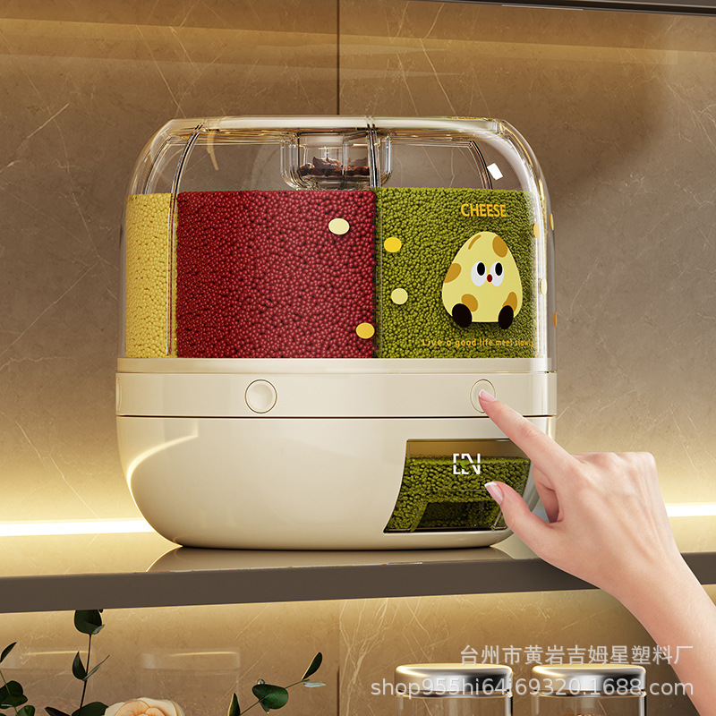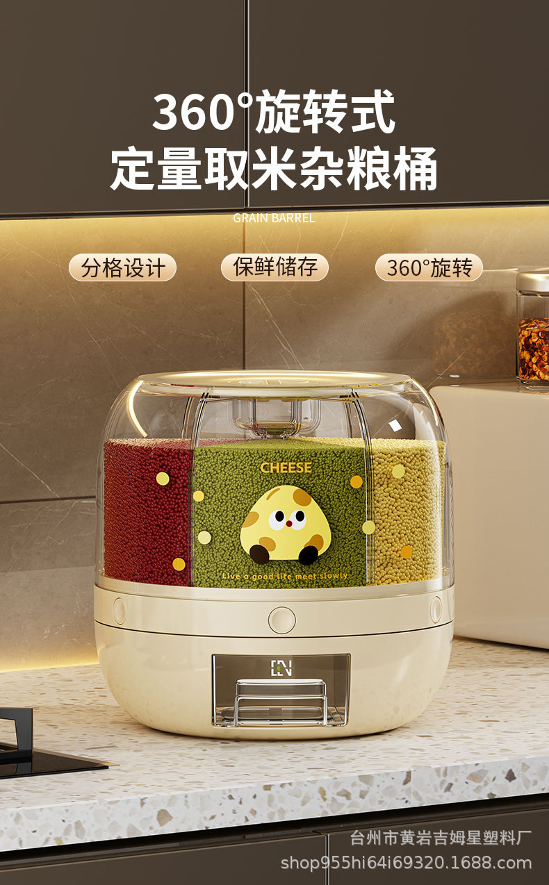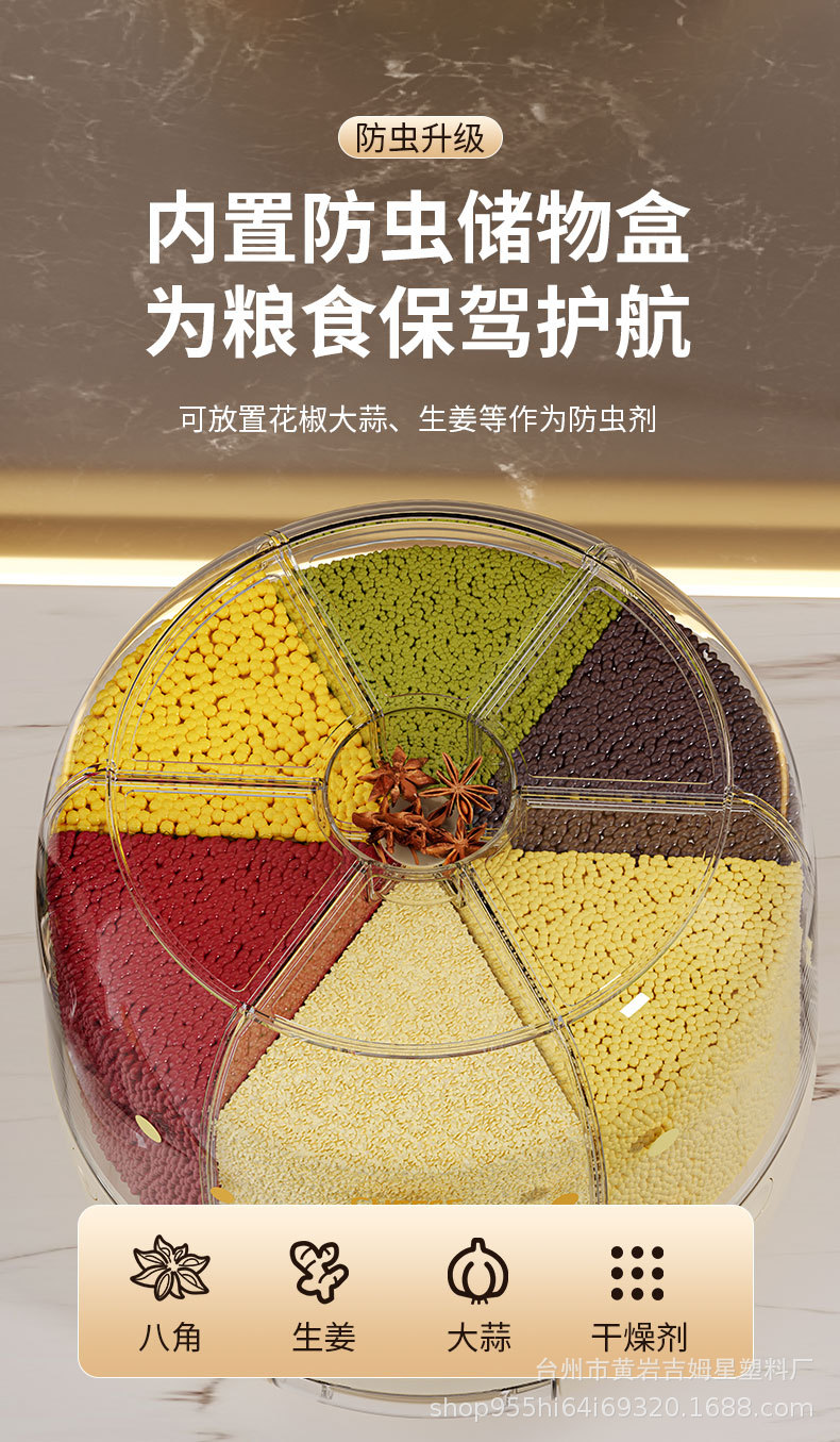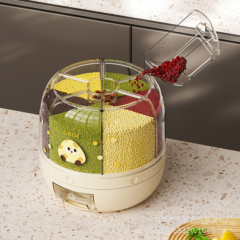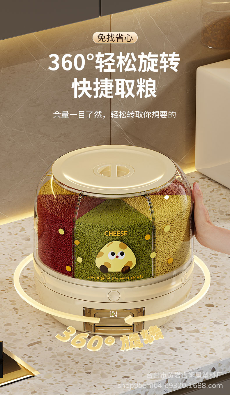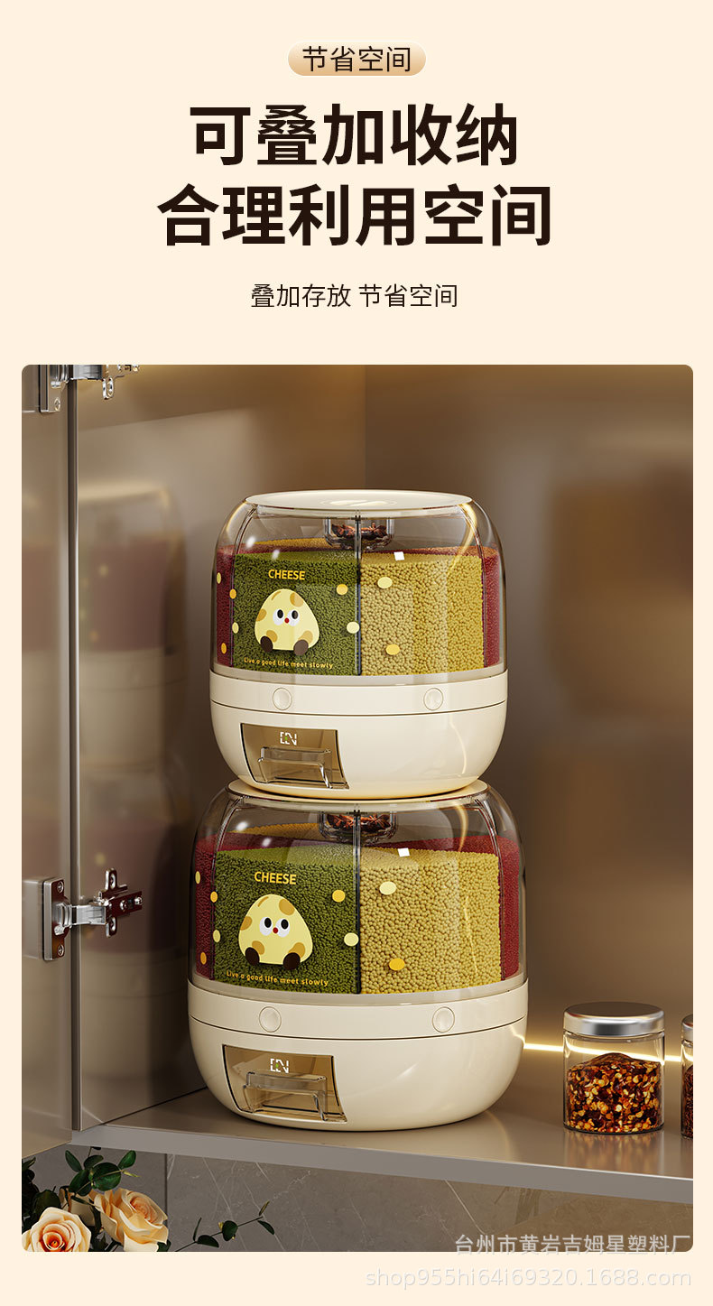 旋转米桶 分类杂粮罐 家用防虫防潮密封桶五谷杂粮储米罐分隔米缸