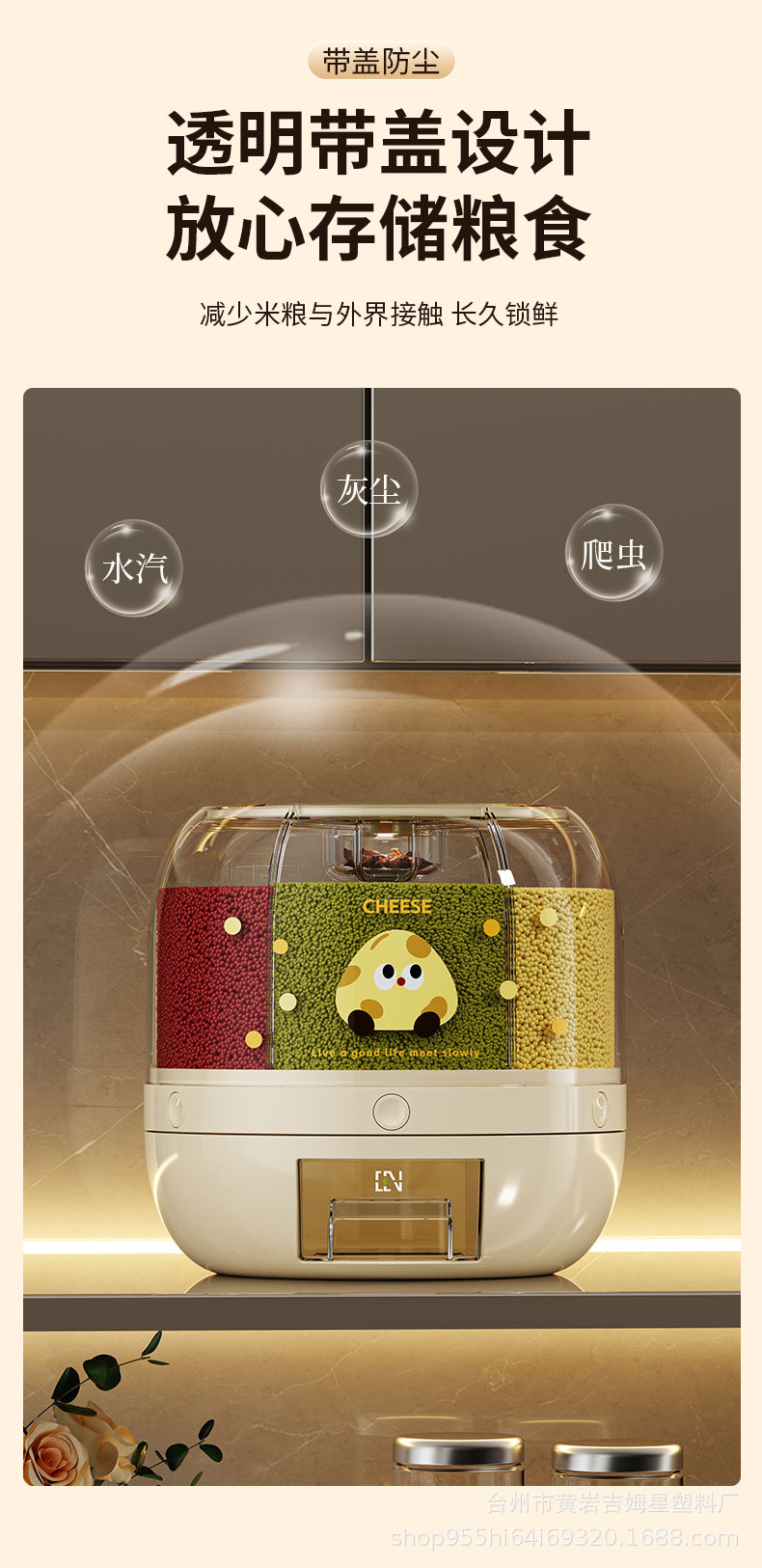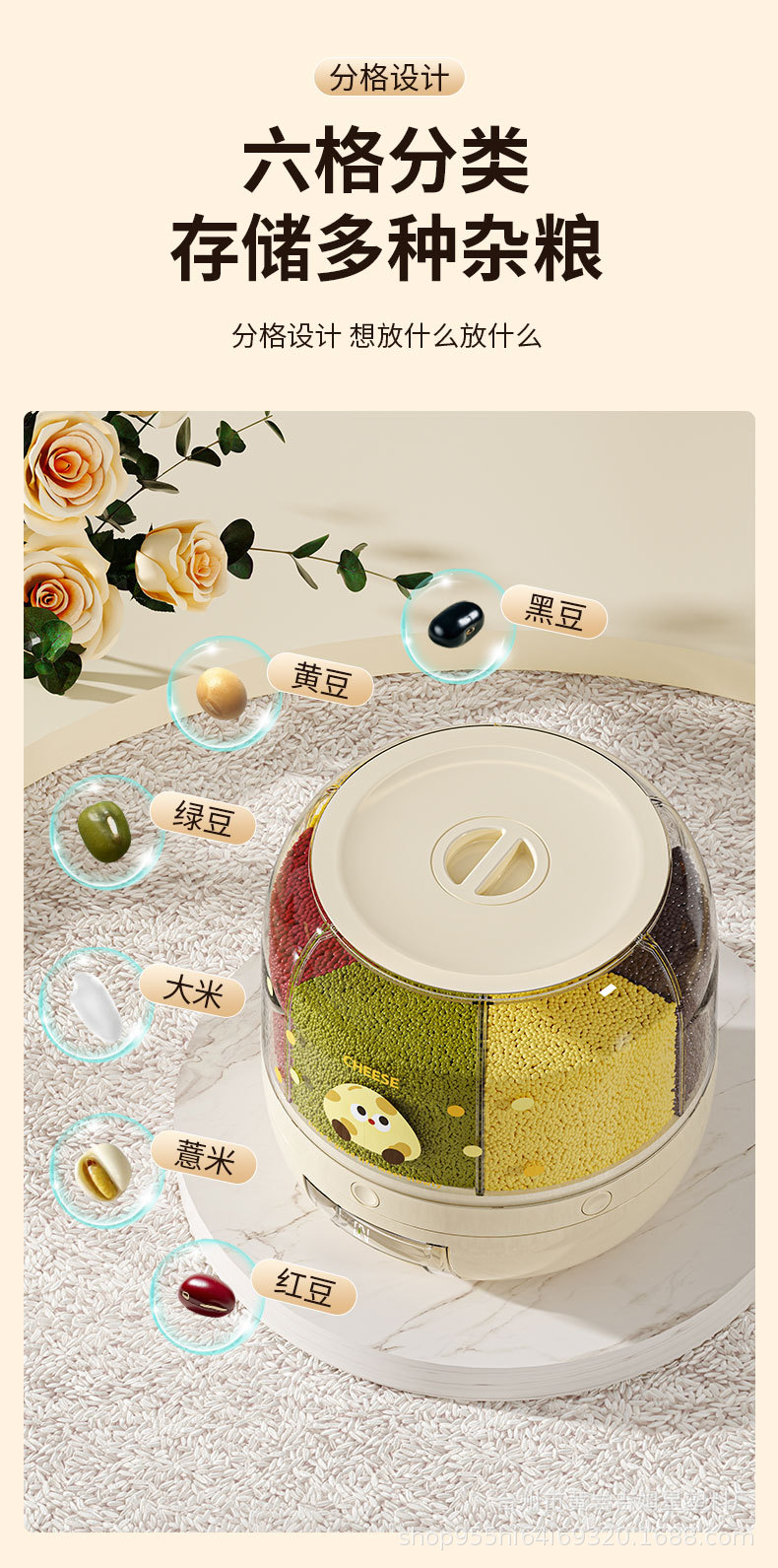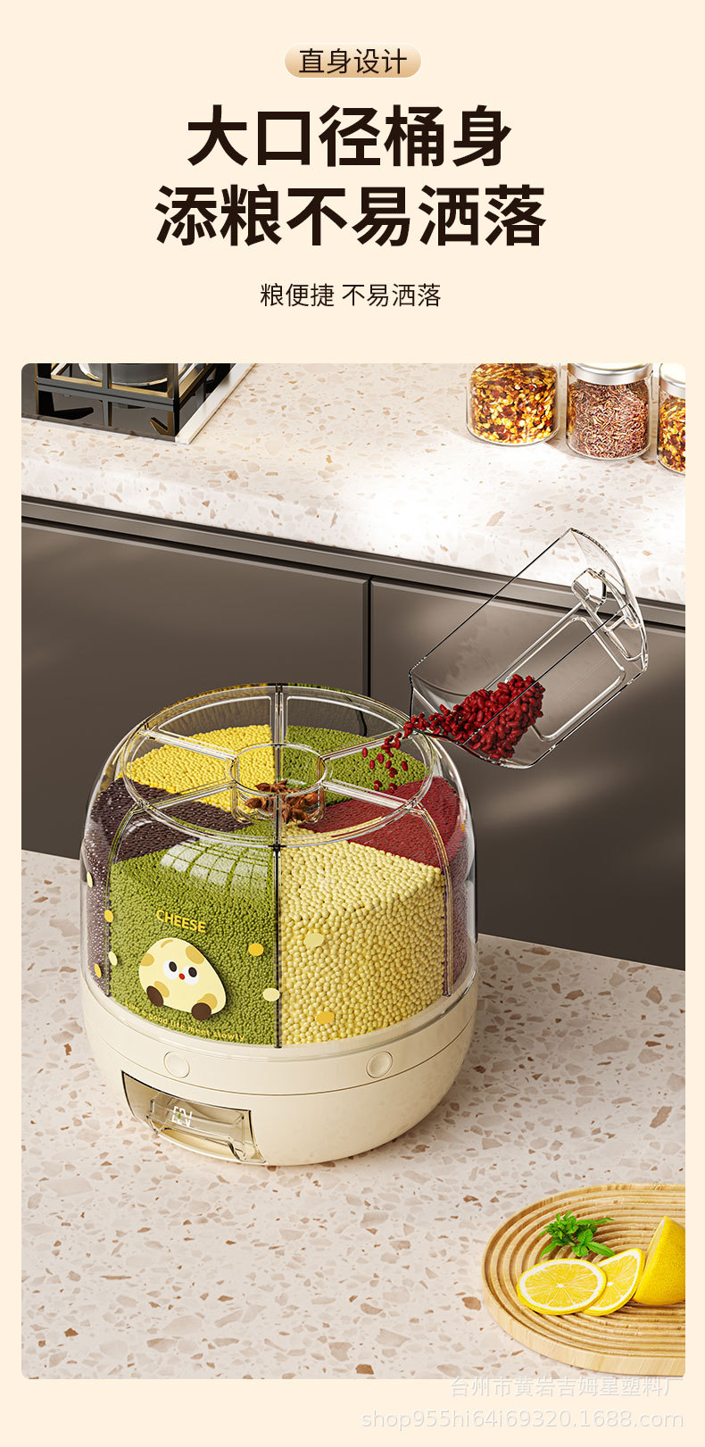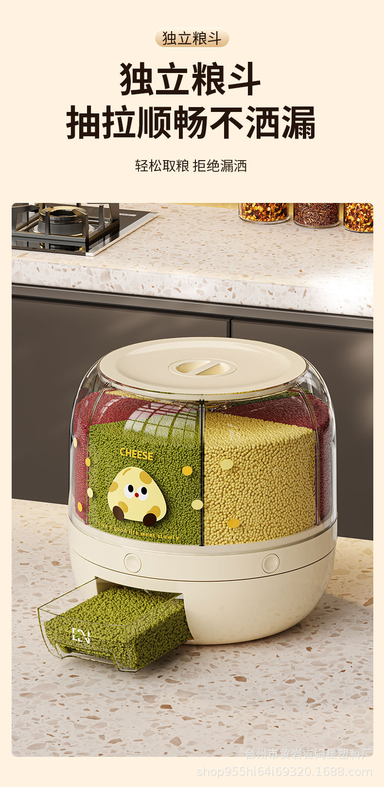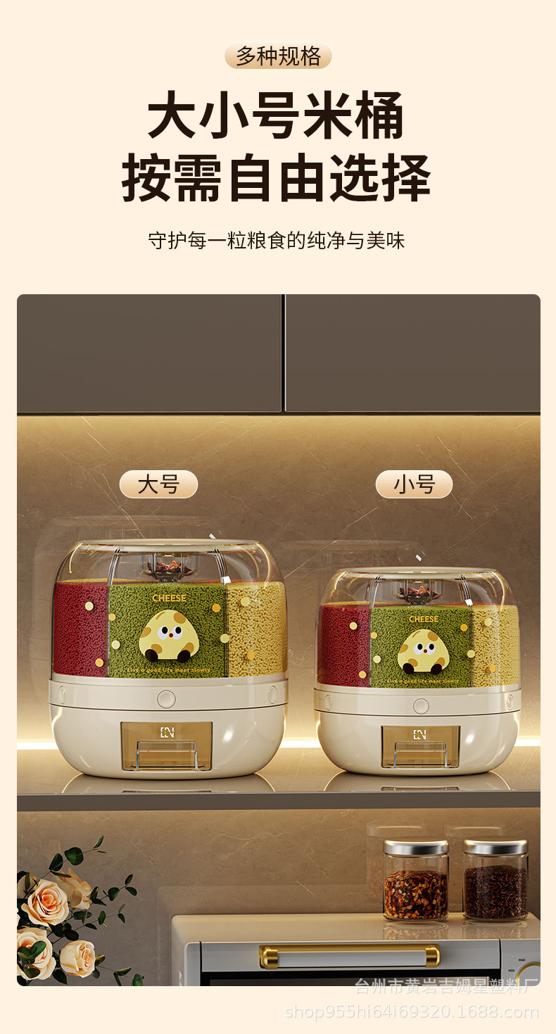旋转米桶 分类杂粮罐 家用防虫防潮密封桶五谷杂粮储米罐分隔米缸