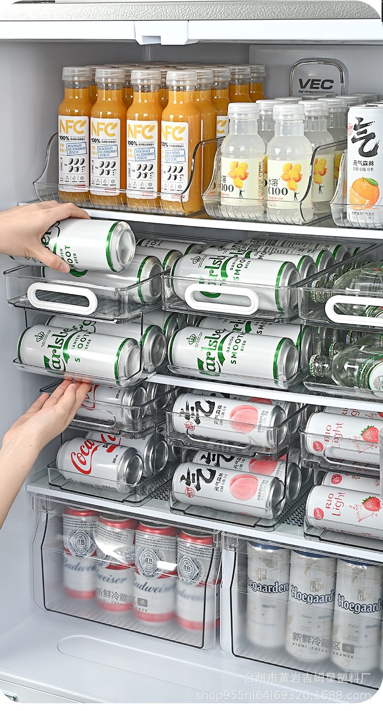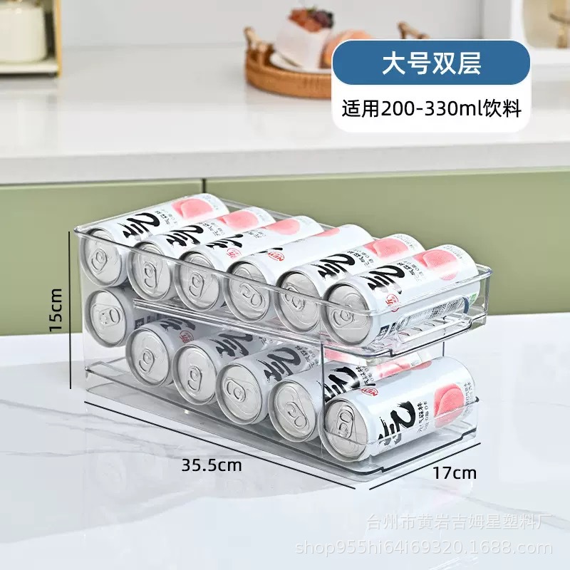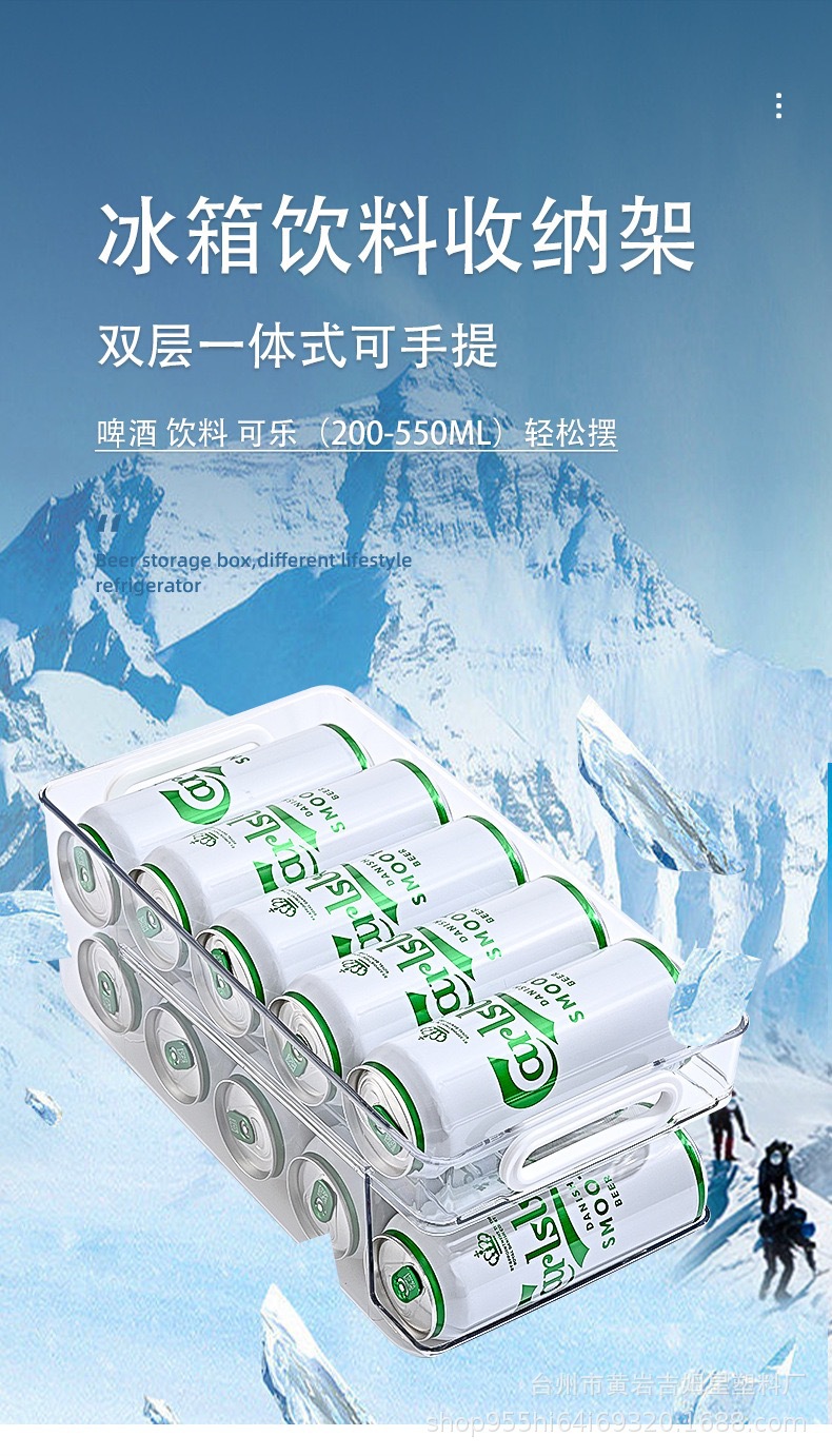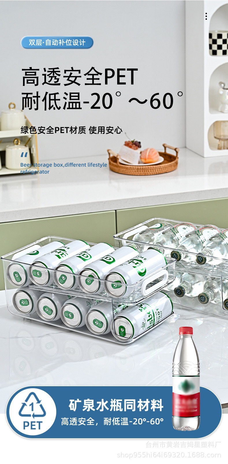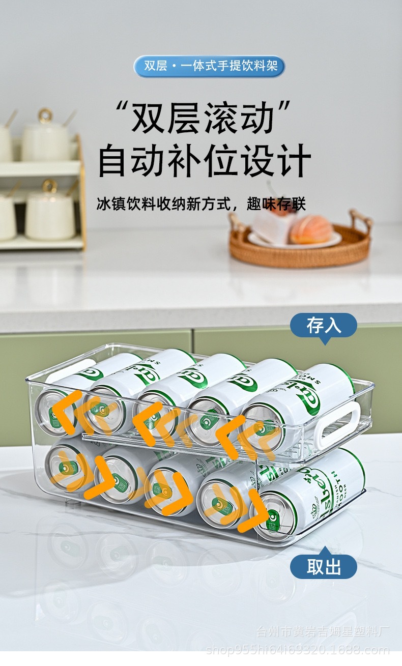 易拉罐饮料收纳盒透明双层自动滚落冰箱冷藏保鲜盒可乐啤酒置物架