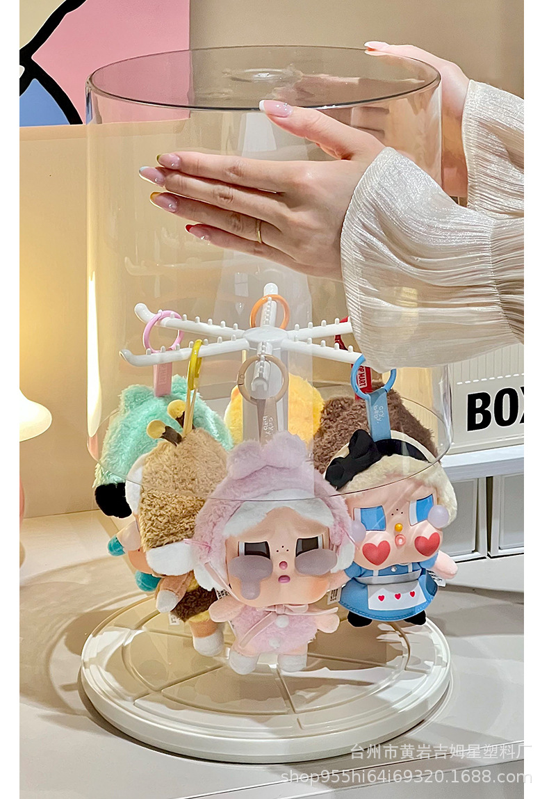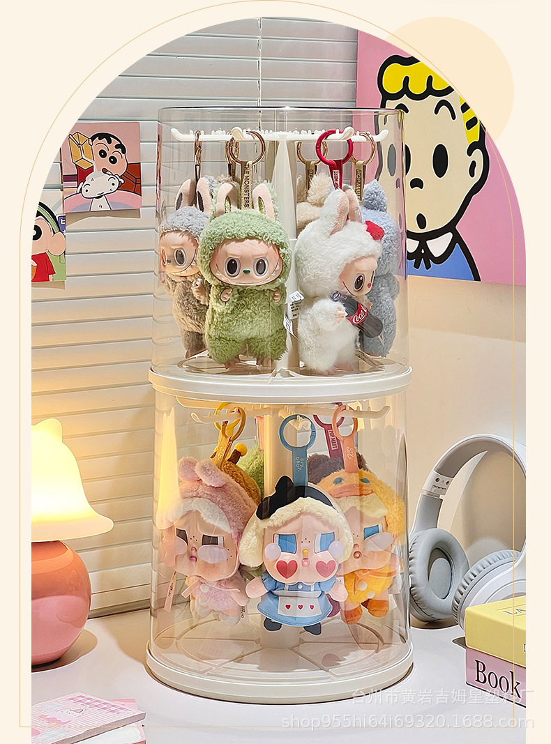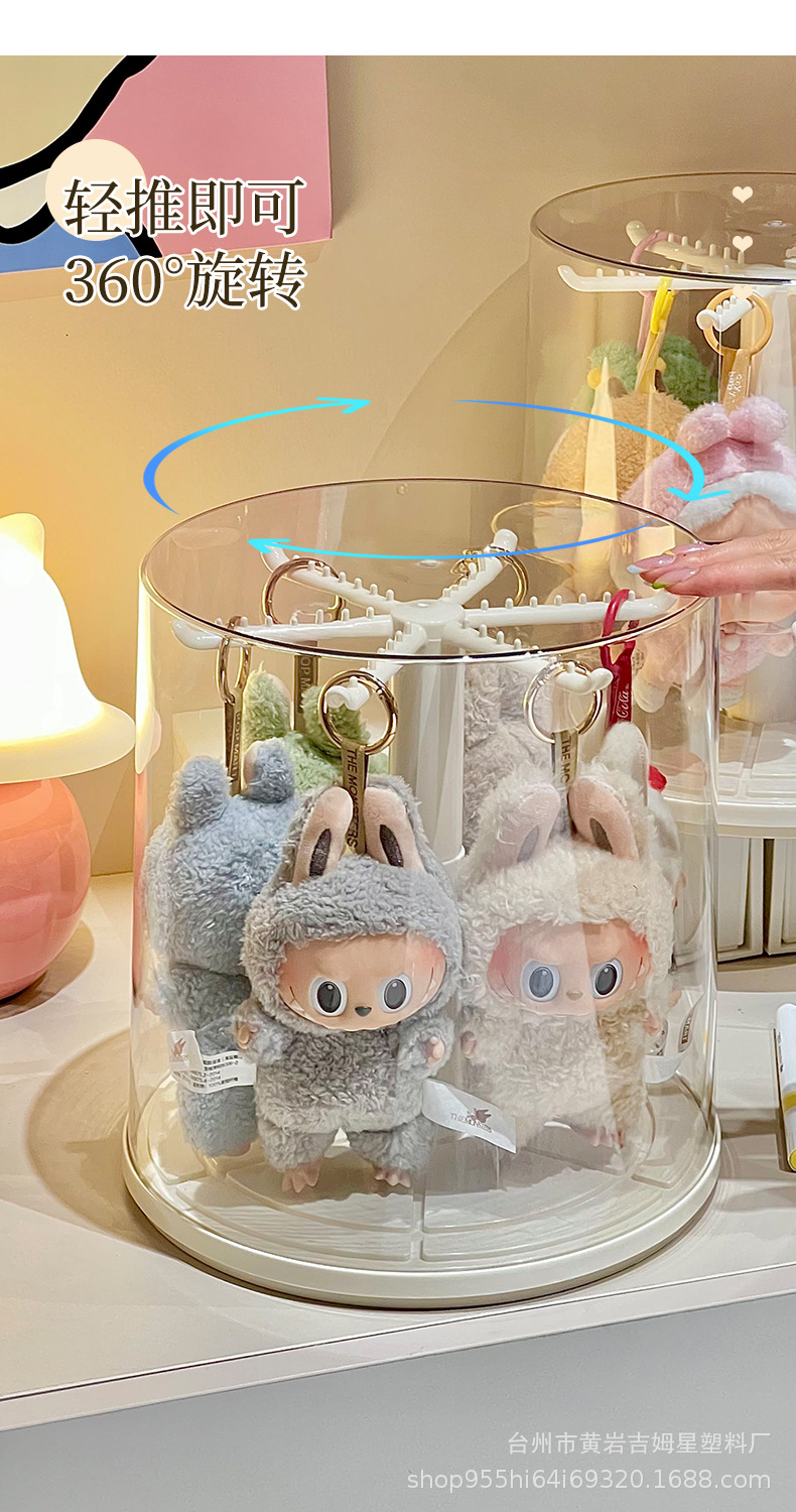 labubu收纳盒拉布布挂件展示盒旋转盲盒收纳盒手办毛绒公仔展示柜