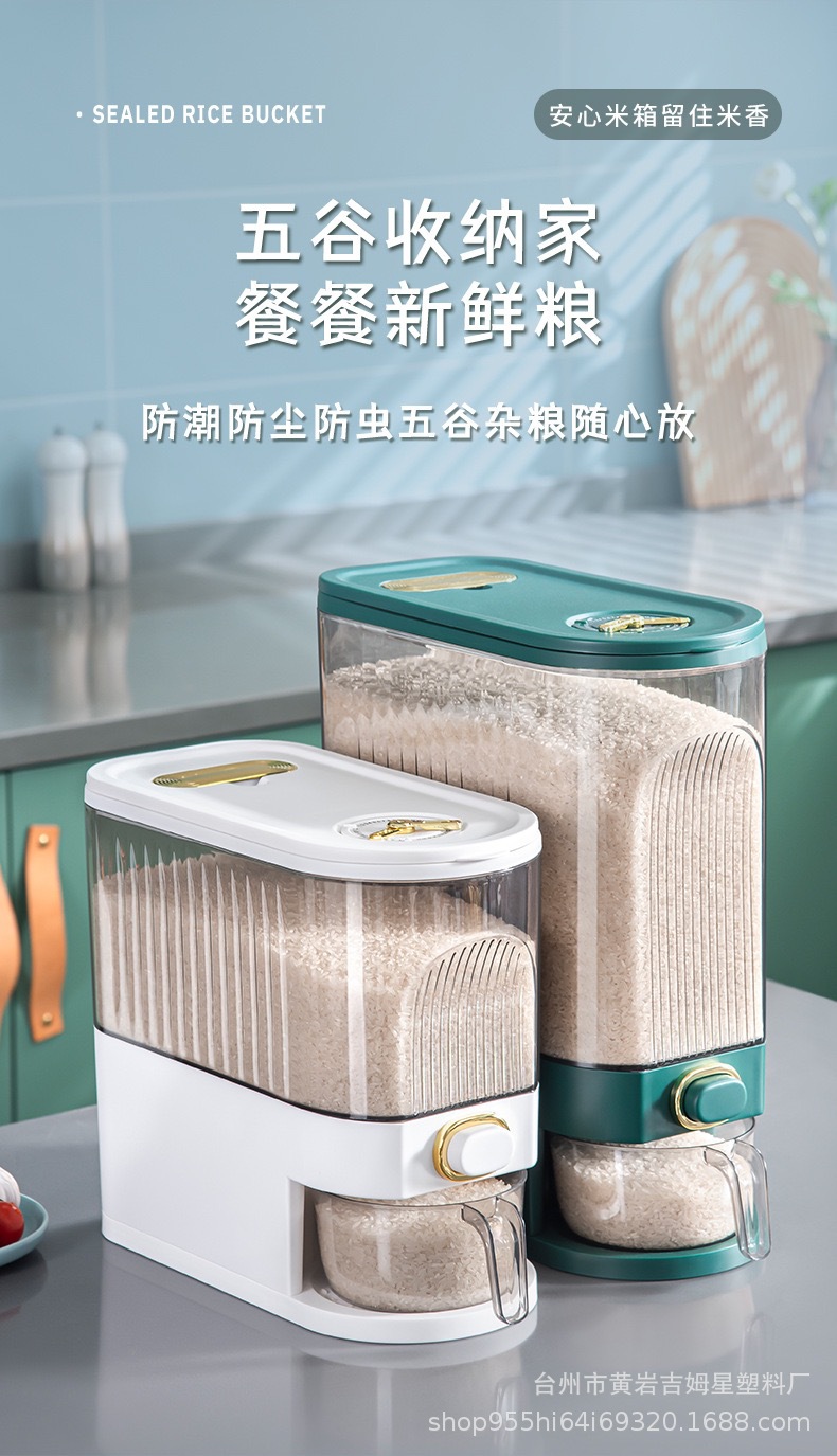 透明轻奢夹缝米桶按压计量桶防虫防潮密封储米桶收纳箱五谷杂粮桶