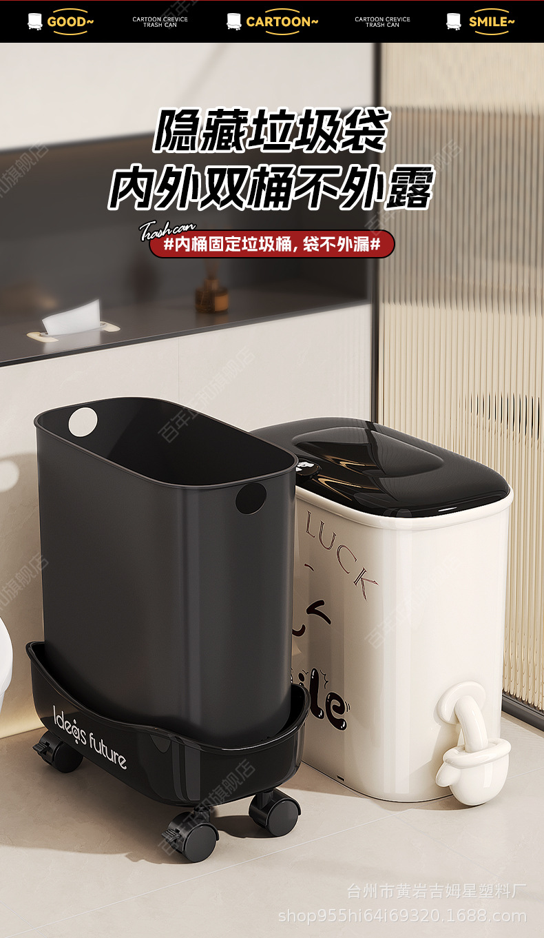 夹缝垃圾桶家用新款方形无盖多巴胺可爱高颜值创意客厅大容量纸篓