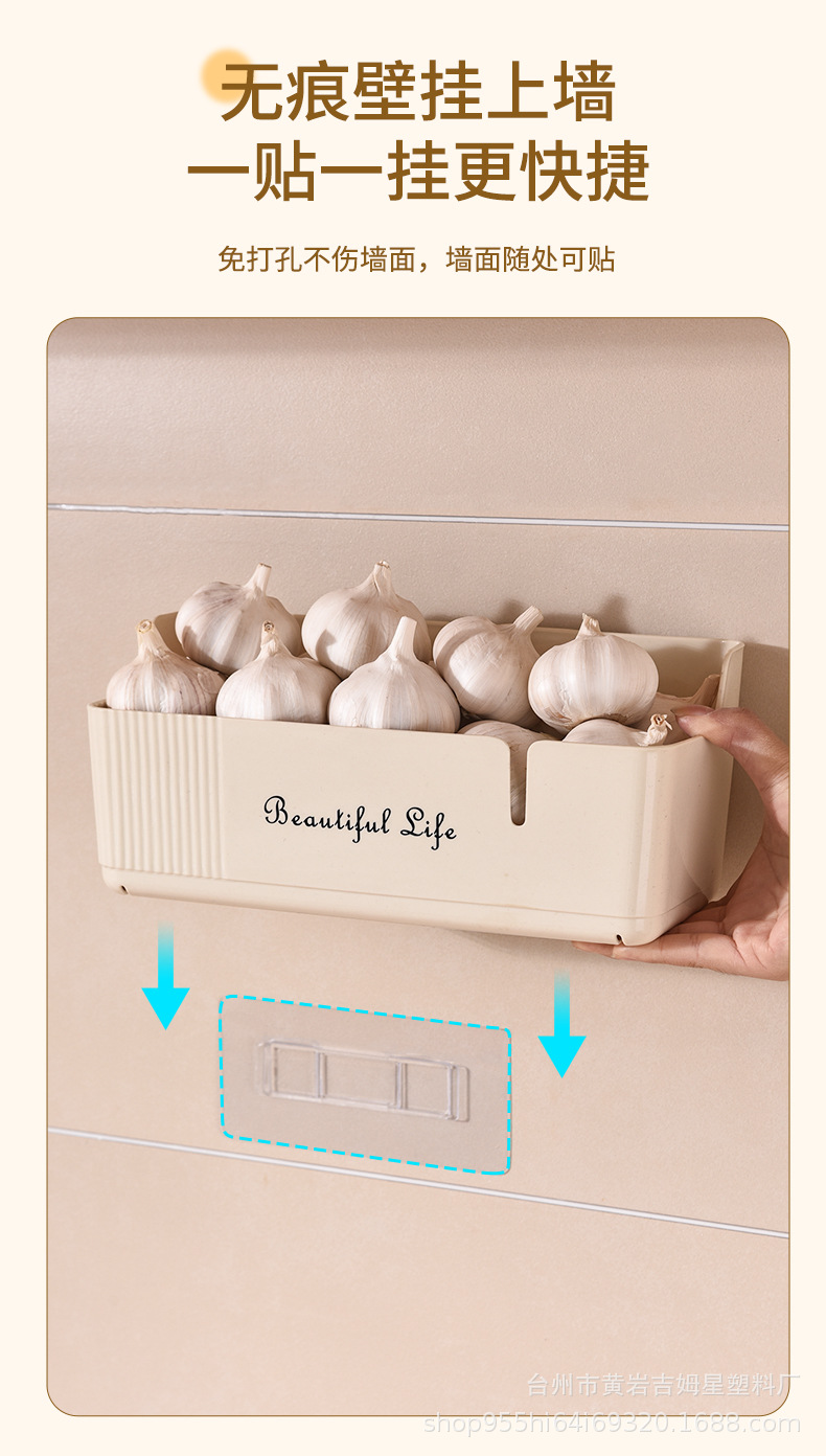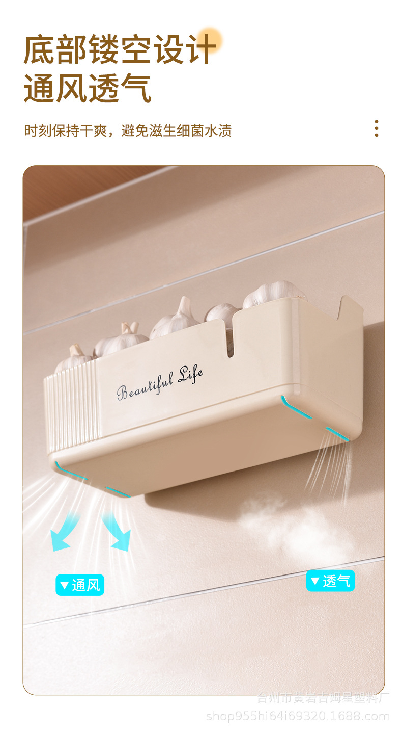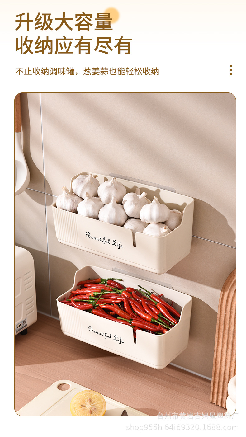 厨房卫浴壁挂收纳盒生姜大蒜葱收纳盒调料用品置物架免打孔壁挂篮