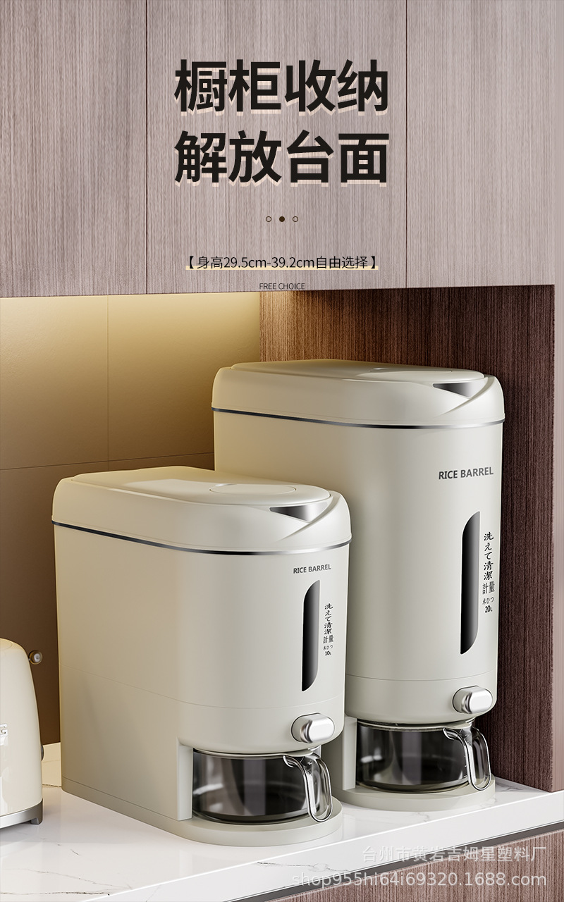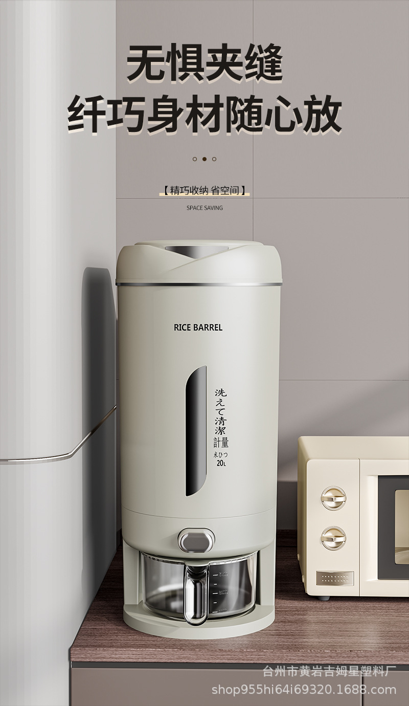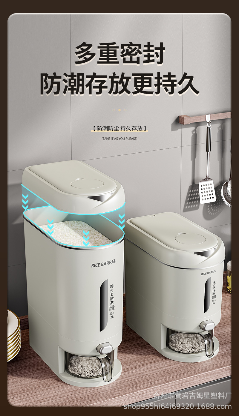 跨境夹缝米桶食品密封防虫防潮米缸家用厨房按压出米加厚计量米箱