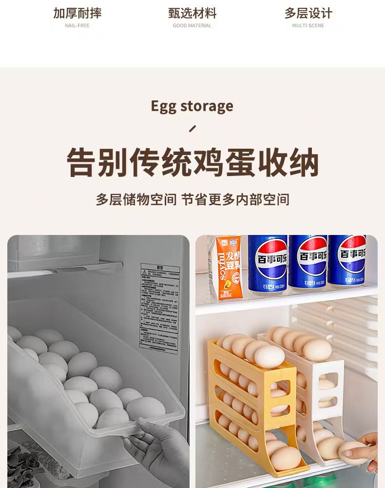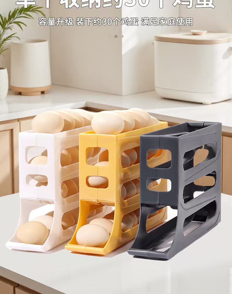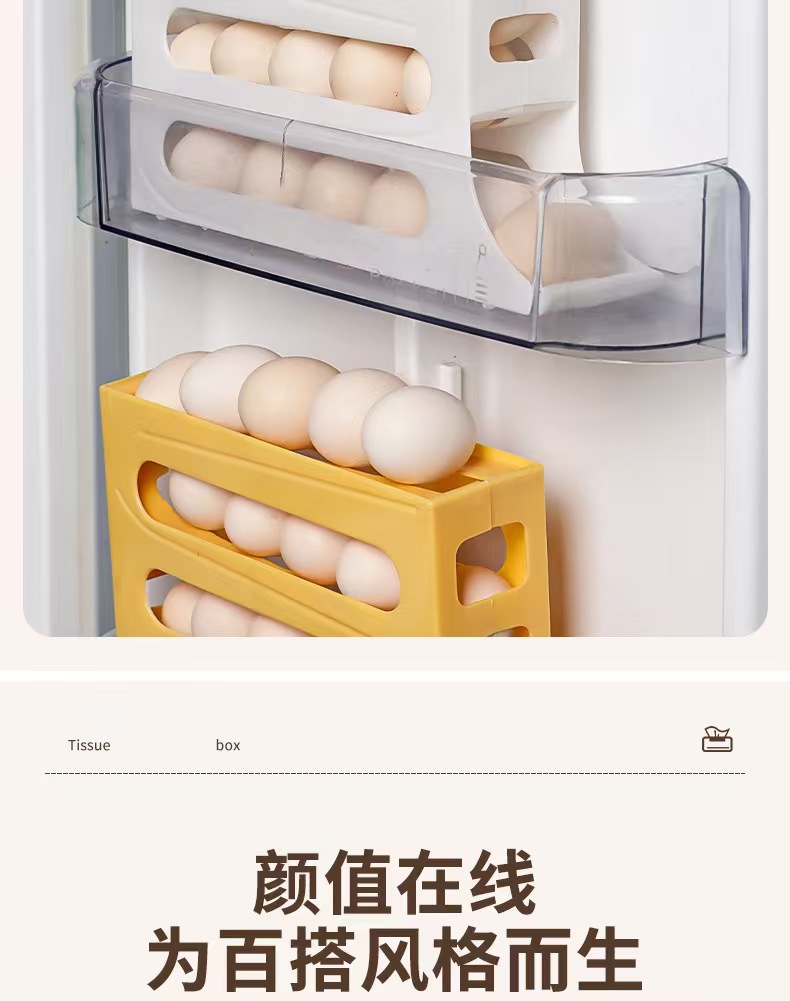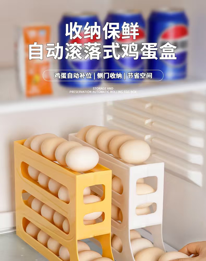 跨境塑料鸡蛋收纳盒冰箱侧门收纳盒架子食品级自动架子鸡蛋盒架托
