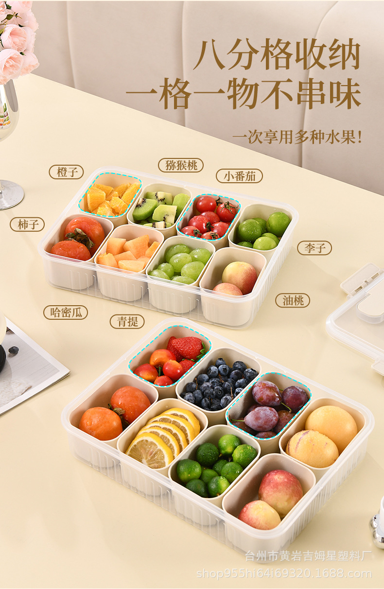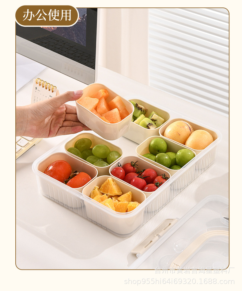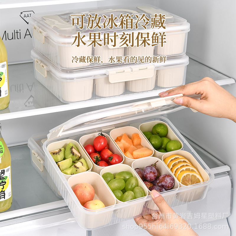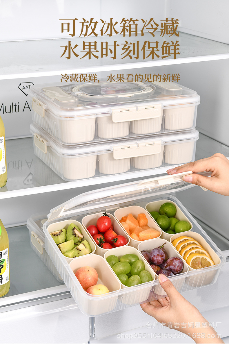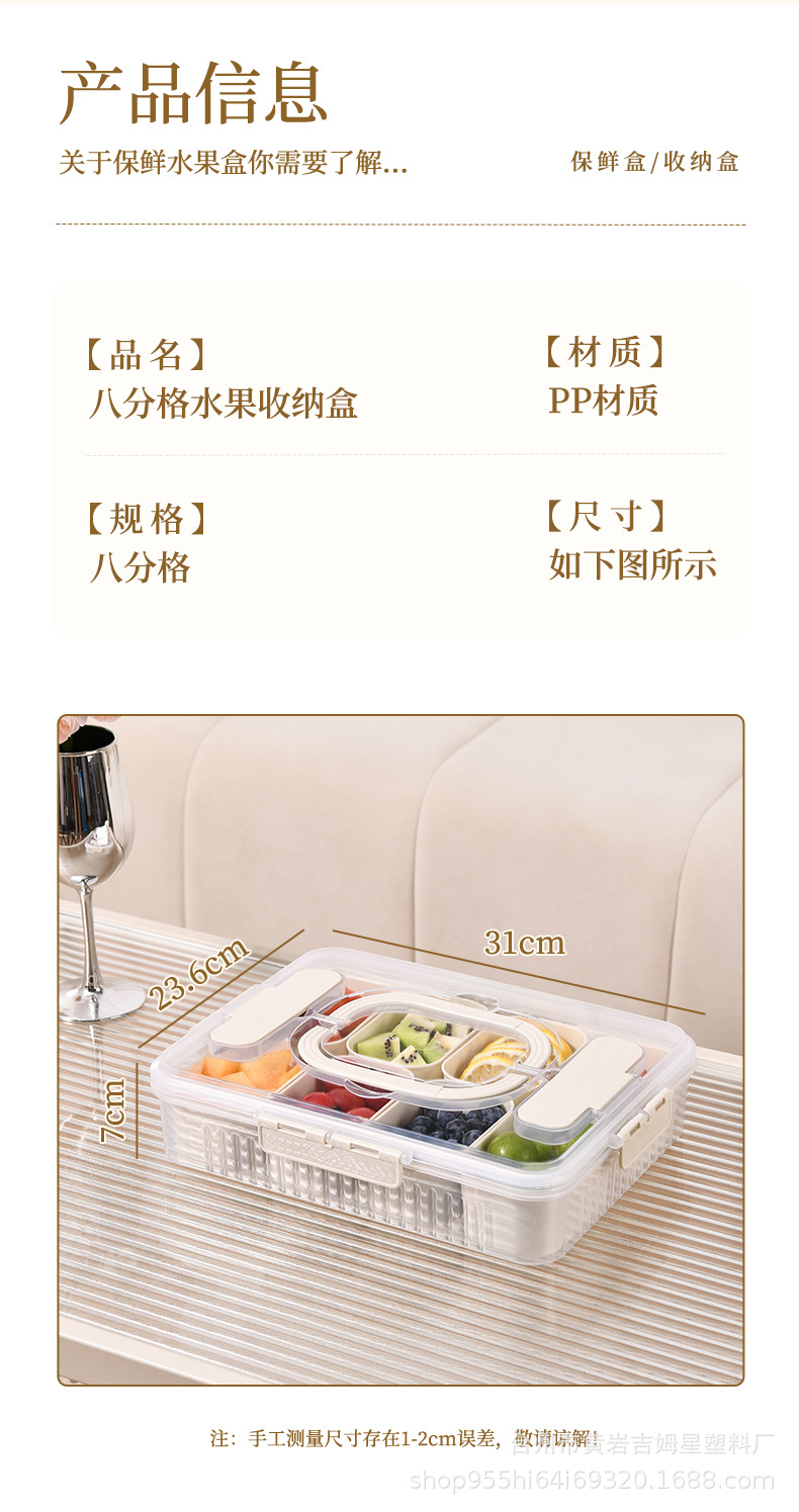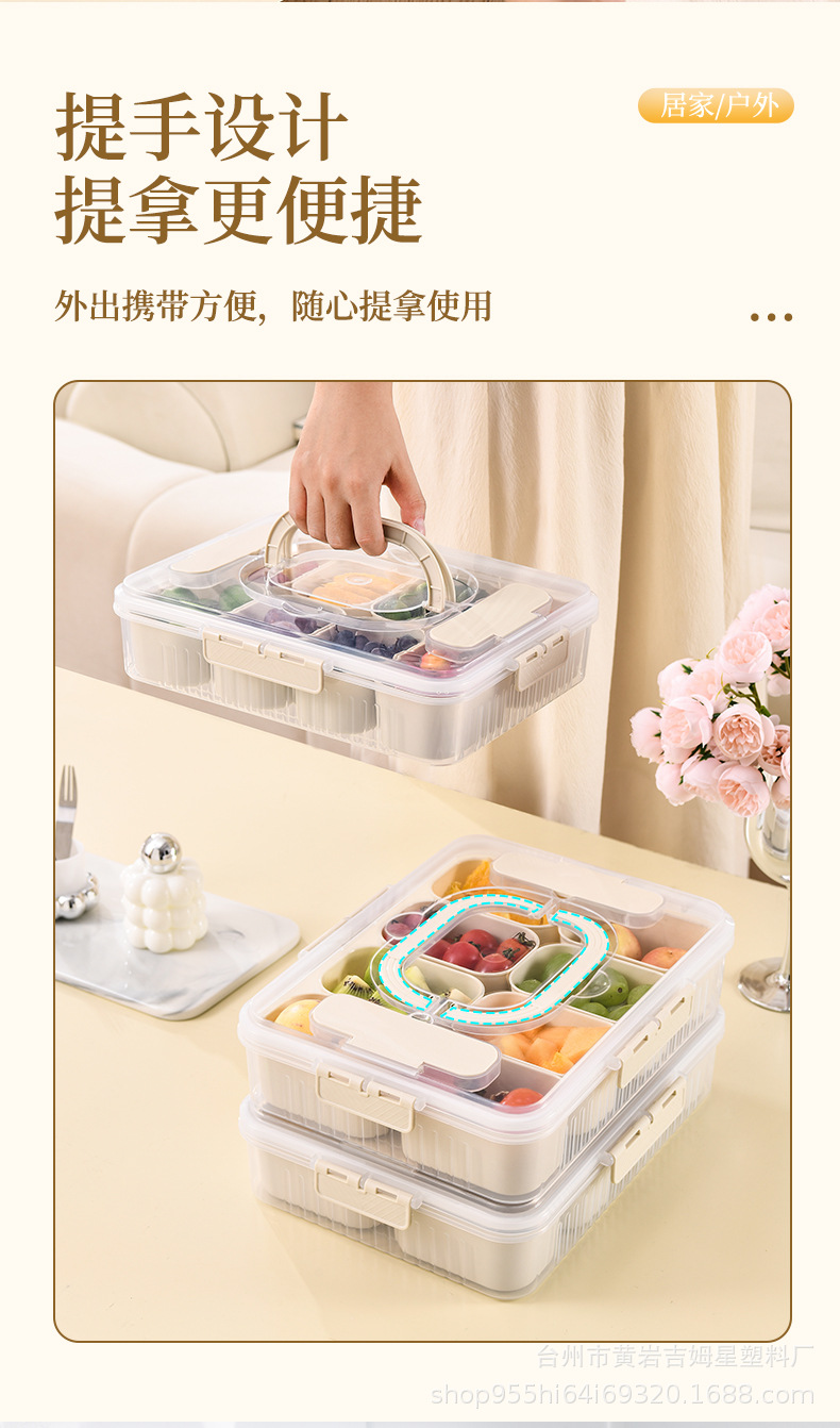 手提八分格透明保鲜盒带四个叉户外野餐带盖水果保鲜盒食品级分格