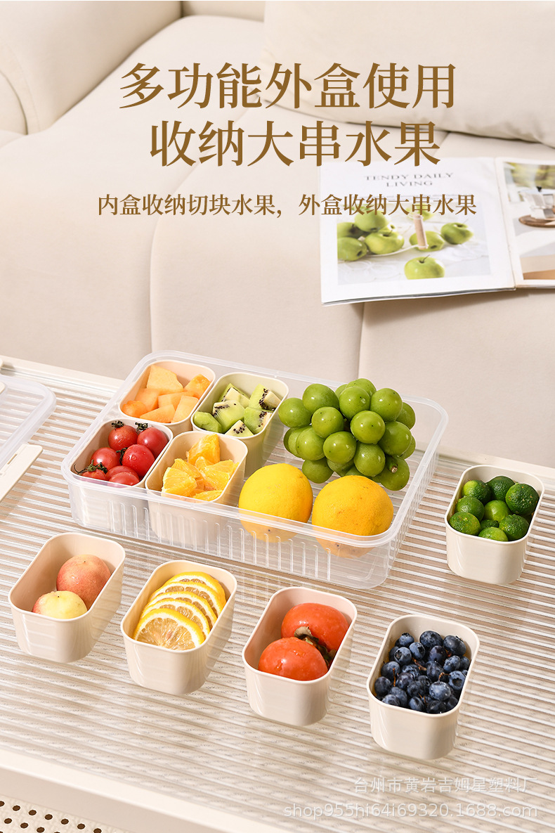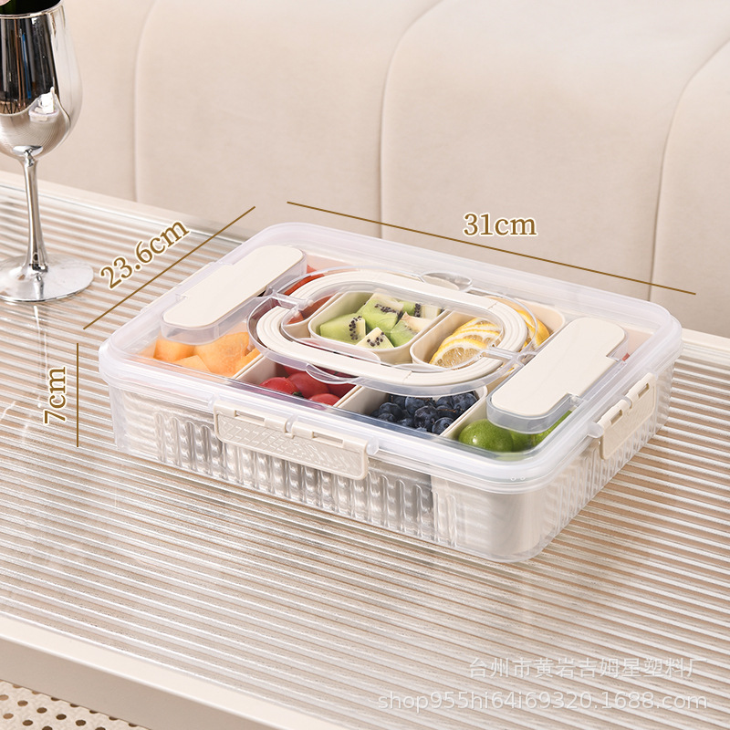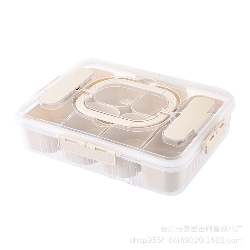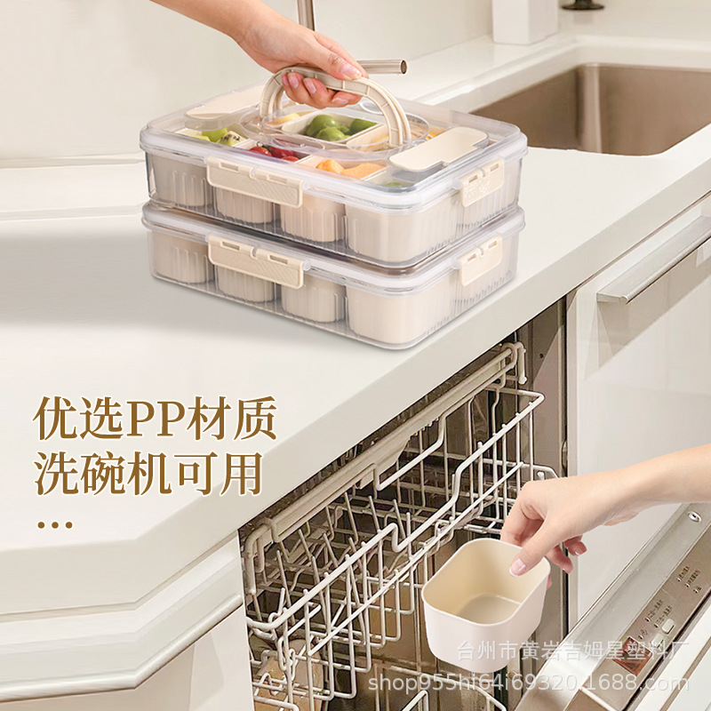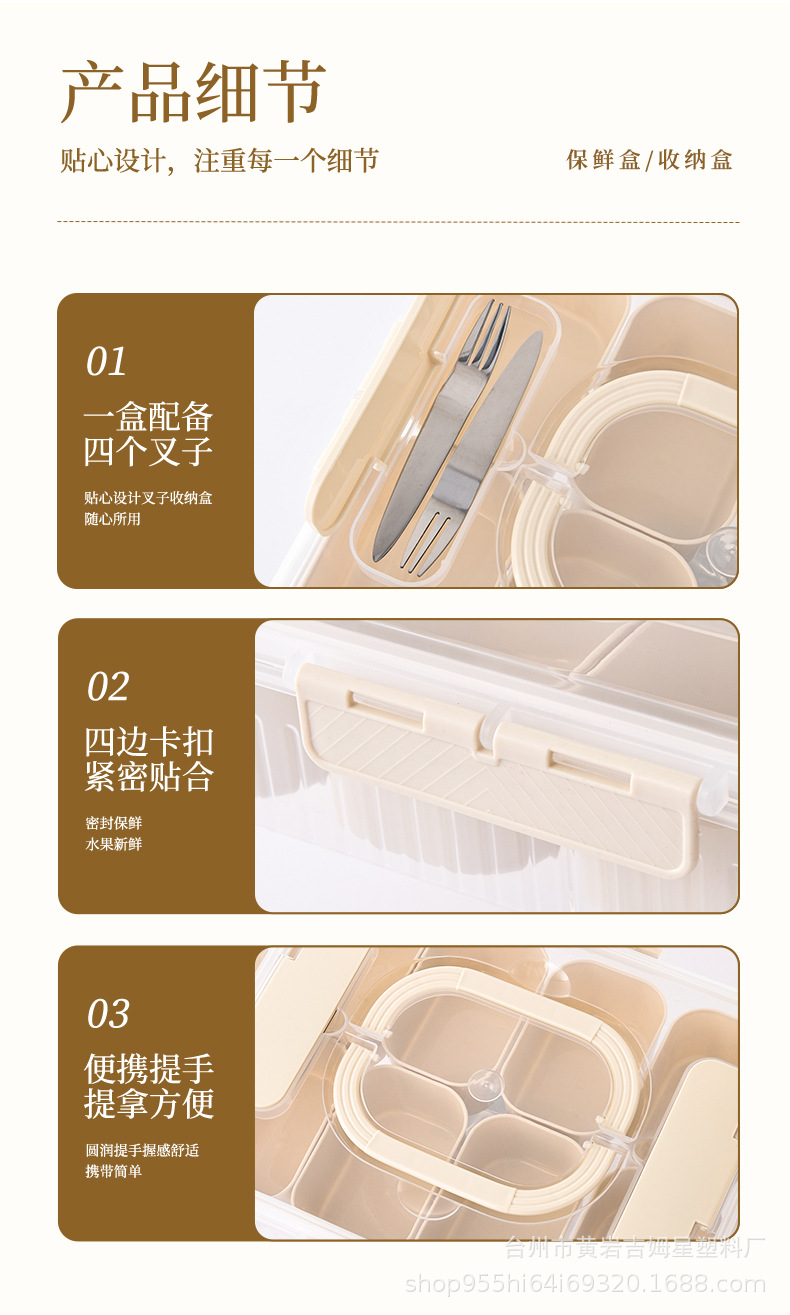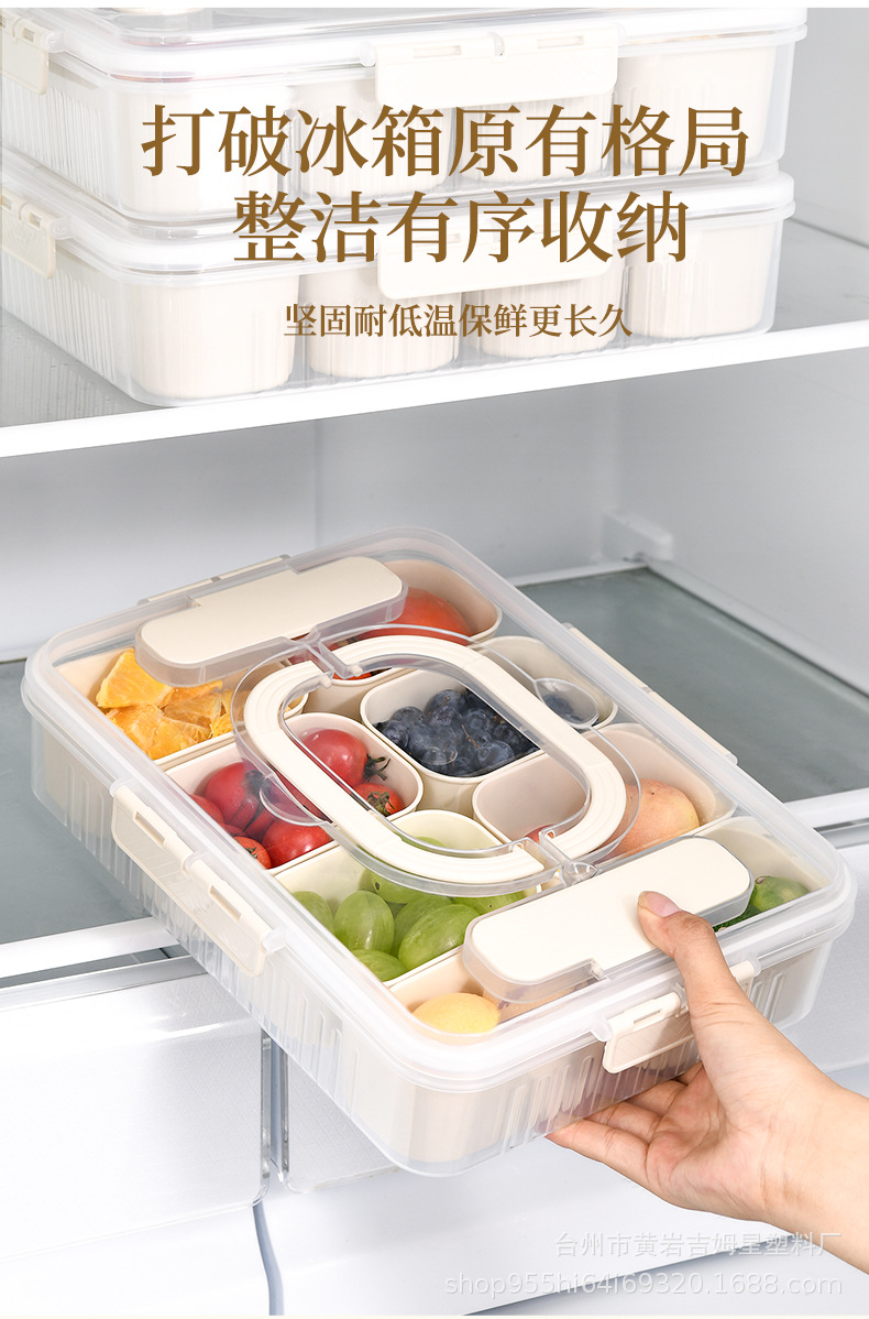 手提八分格透明保鲜盒带四个叉户外野餐带盖水果保鲜盒食品级分格