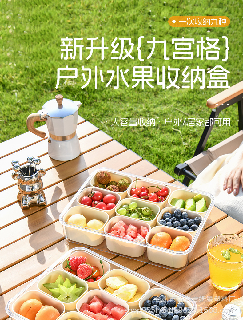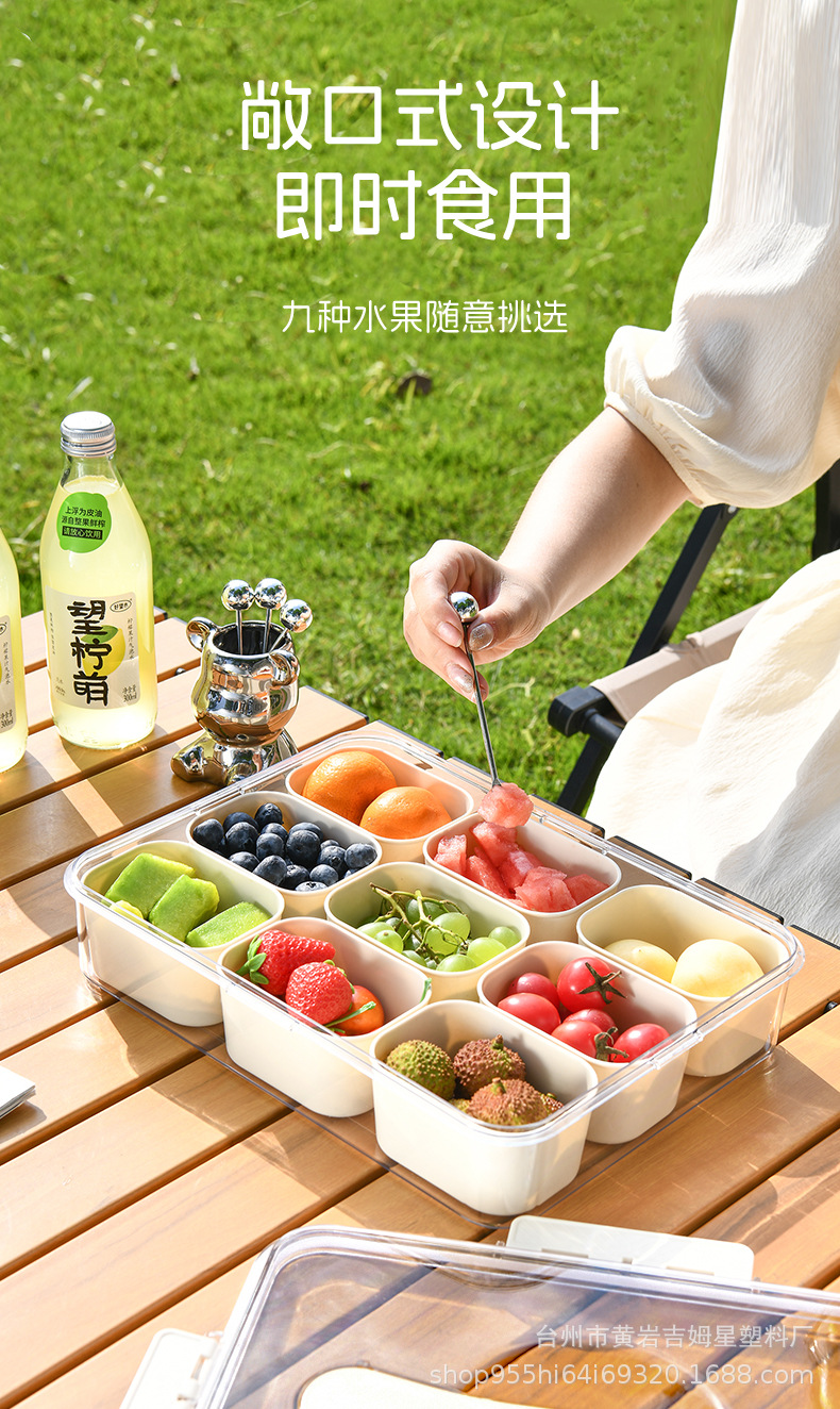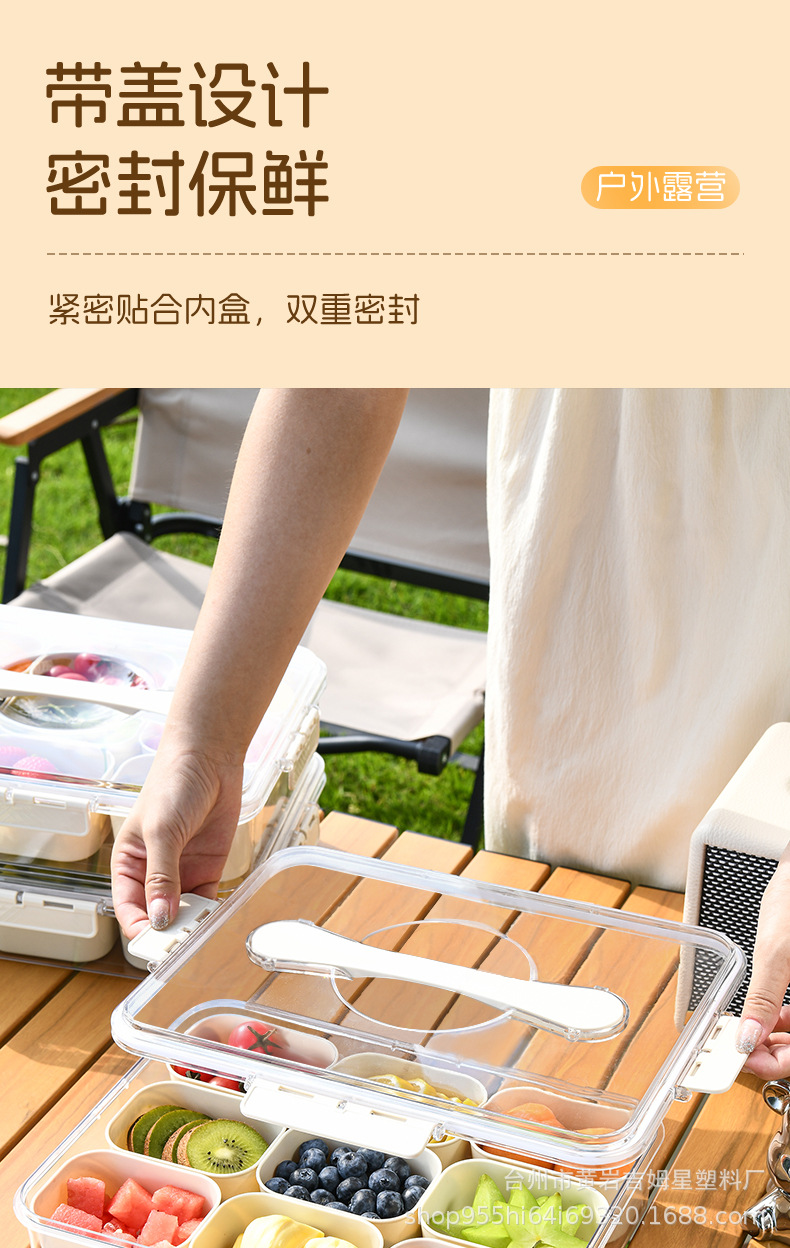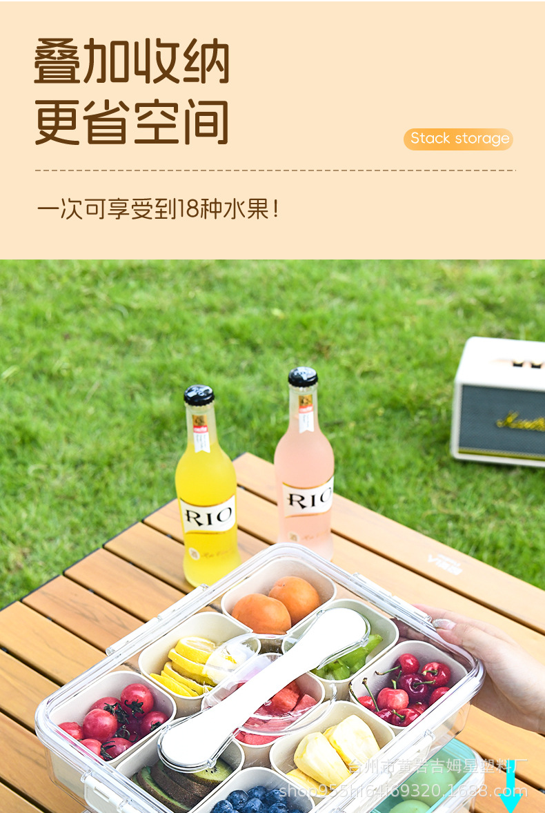 手提食品级分格式透明九宫格水果收纳盒塑料厨房密封沙拉叠加保鲜