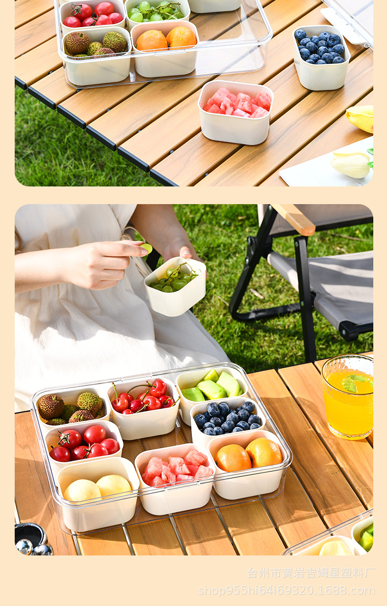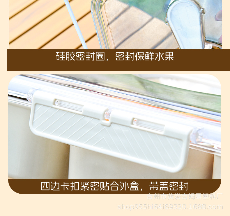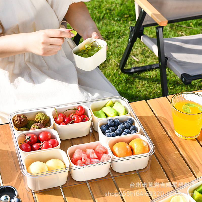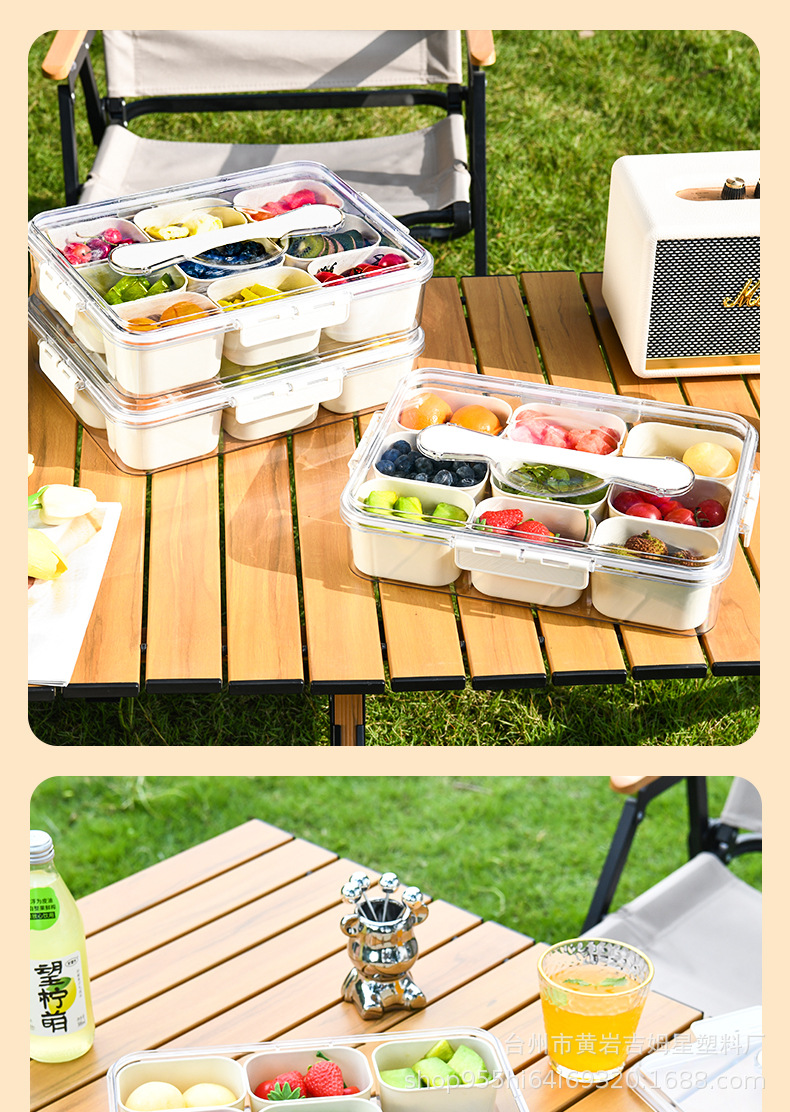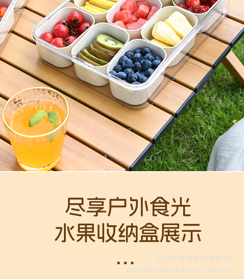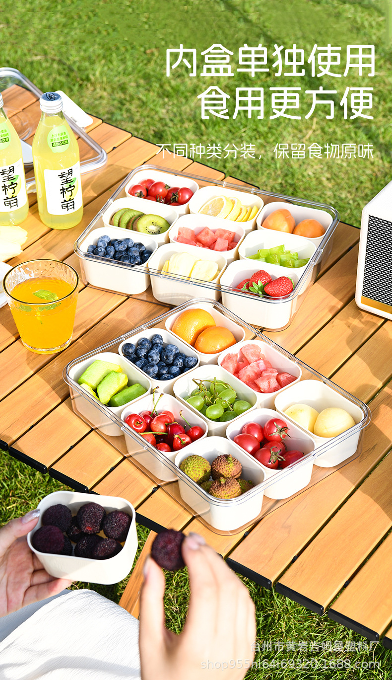 手提食品级分格式透明九宫格水果收纳盒塑料厨房密封沙拉叠加保鲜