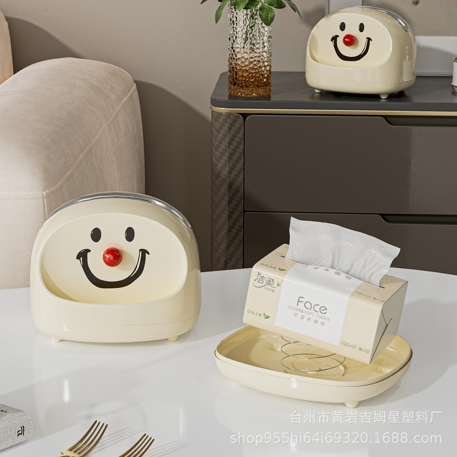 多功能带弹簧小丑纸巾盒大尺寸浴室洗脸巾盒桌面轻奢风微笑抽纸盒