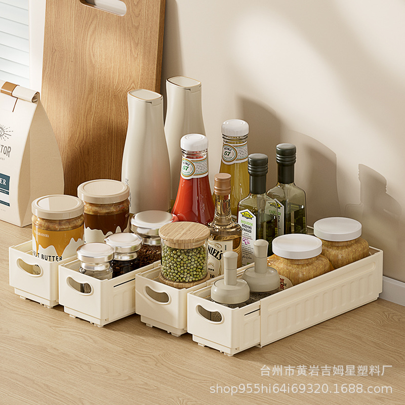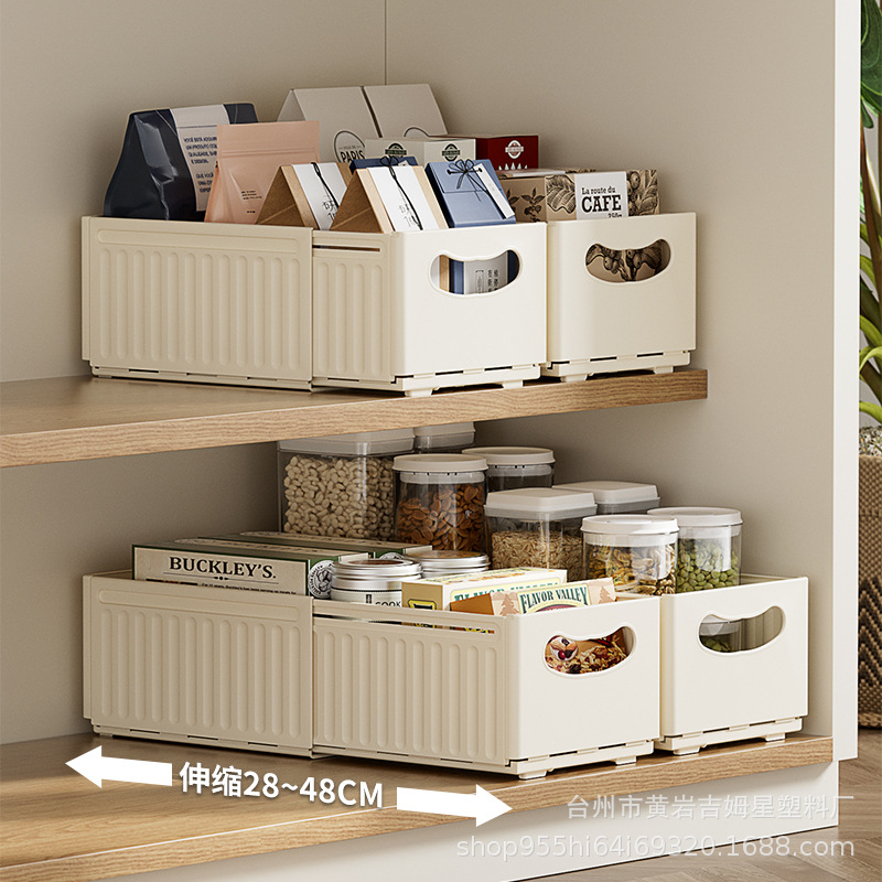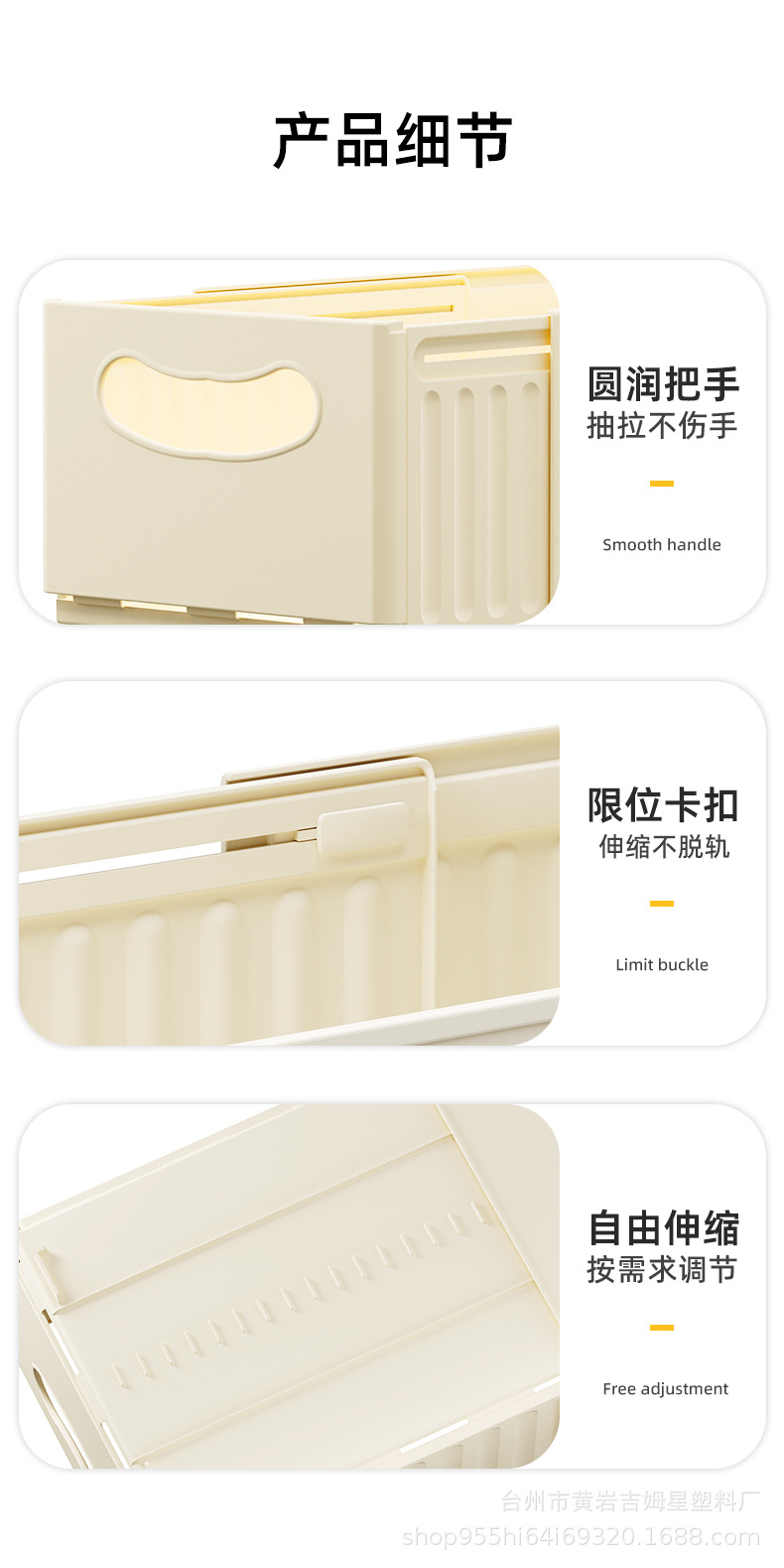 可伸缩橱柜收纳盒抽屉式桌面零食杂物厨房整理篮深柜直角储物盒子
