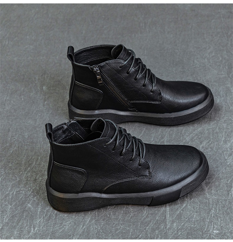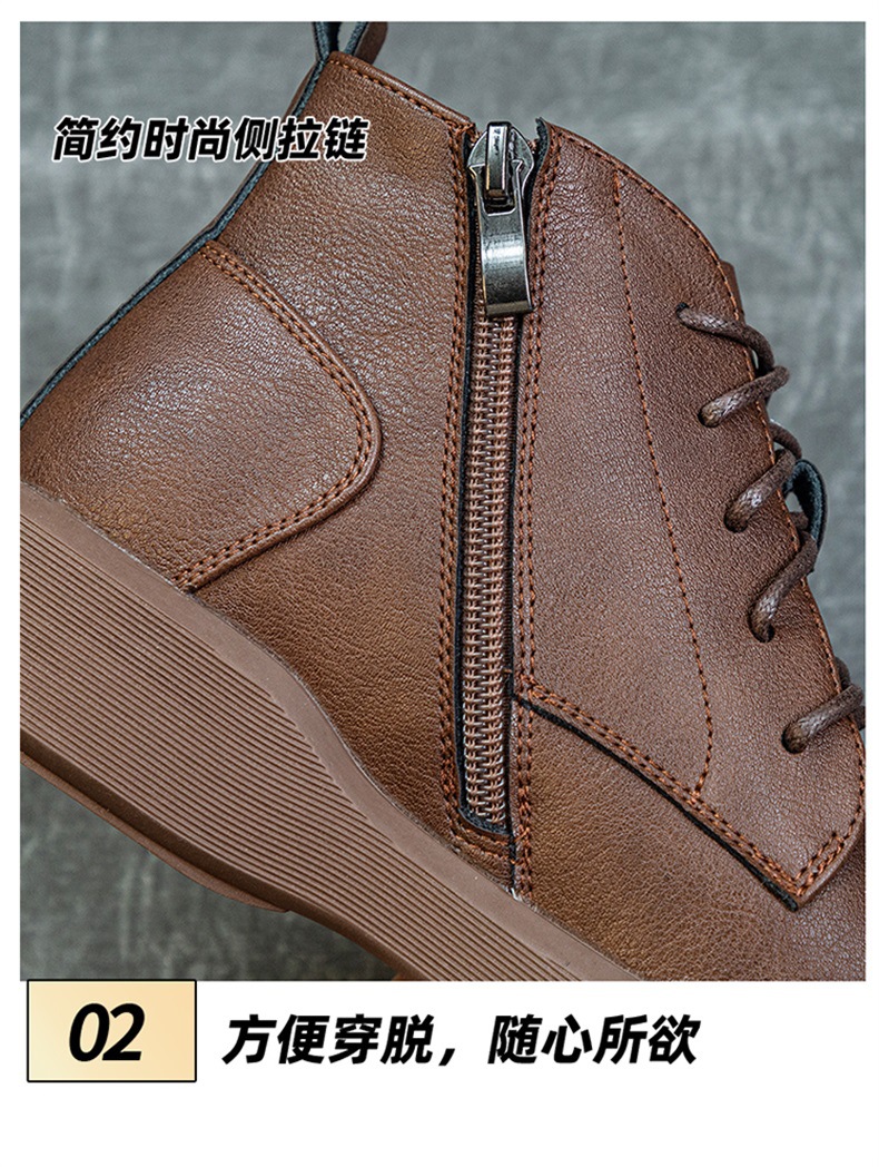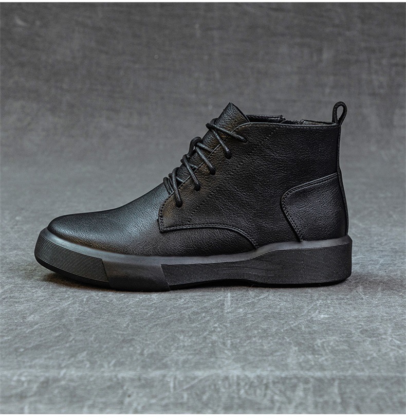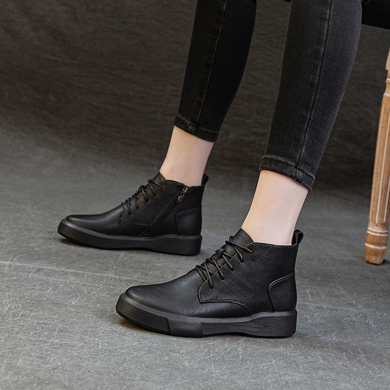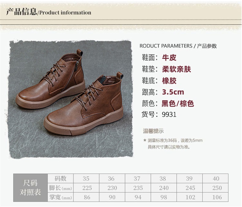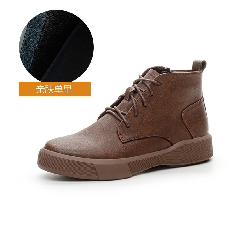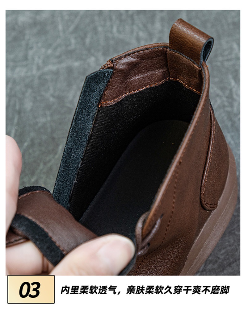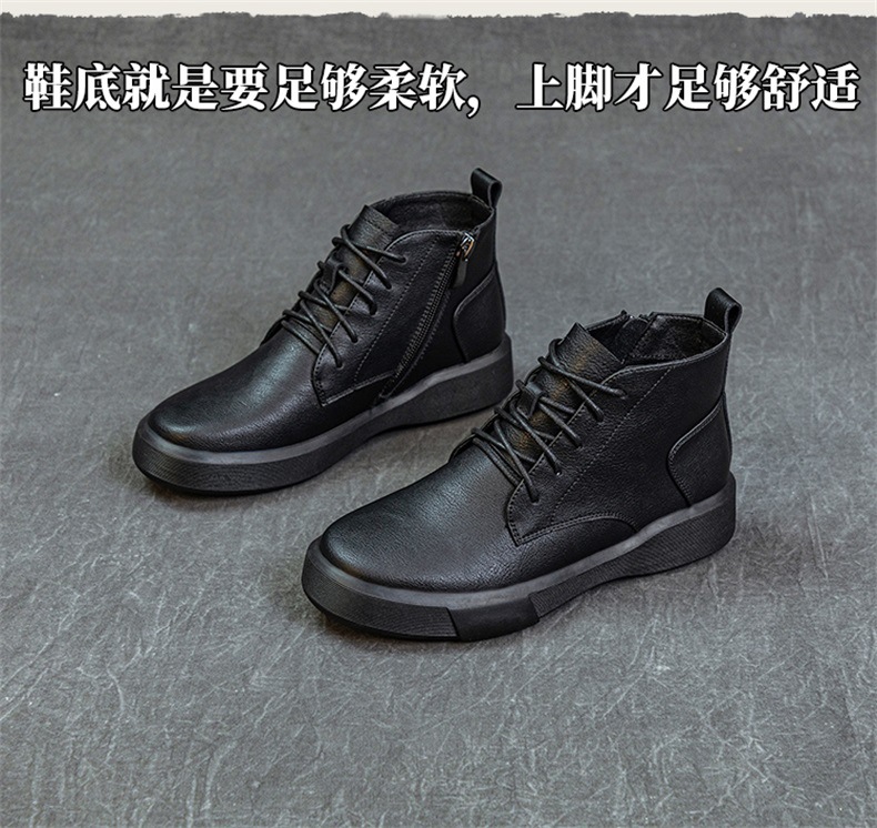 春秋冬季真皮厚底马丁靴女复古加绒圆头短靴休闲透气低筒靴子棕色