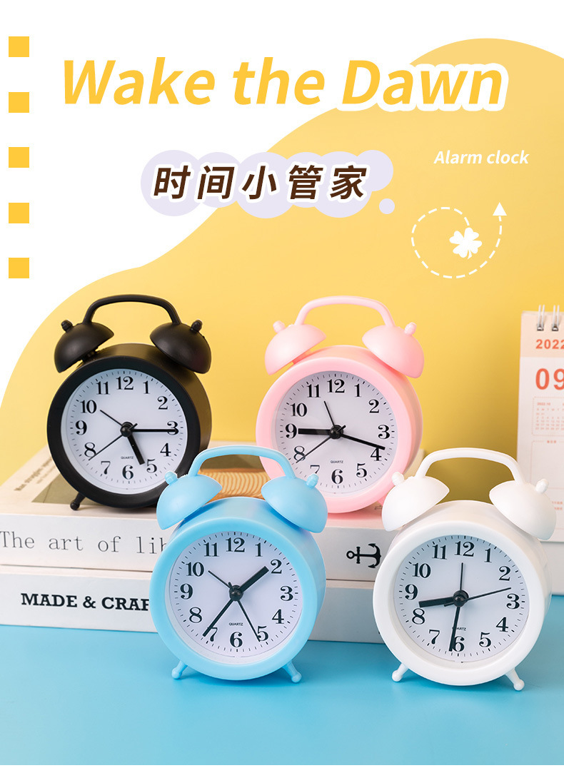 卡通闹钟创意卧室床头小闹钟客厅数字塑料时钟学生双玲装饰小台钟