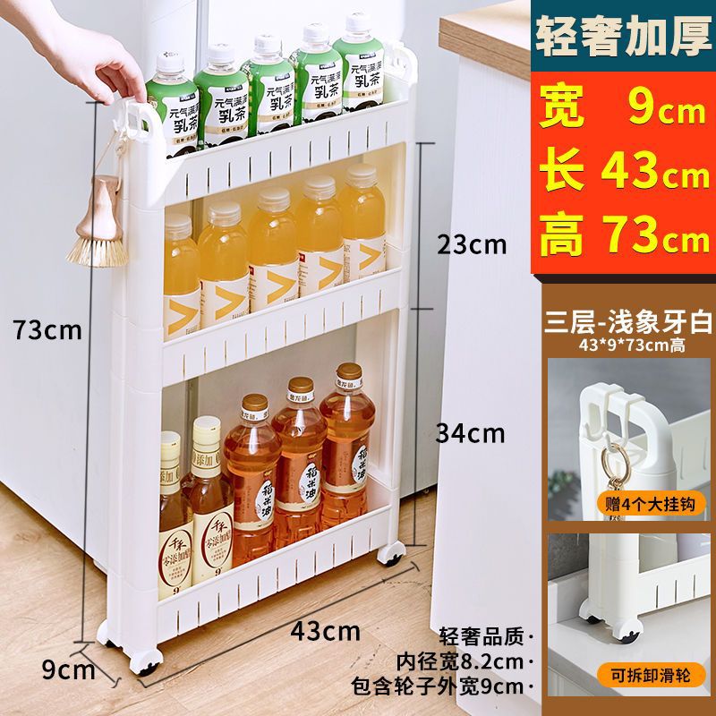 厨房夹缝收纳架带轮子10CM超窄冰箱缝隙储物柜浴室客厅置物车落地