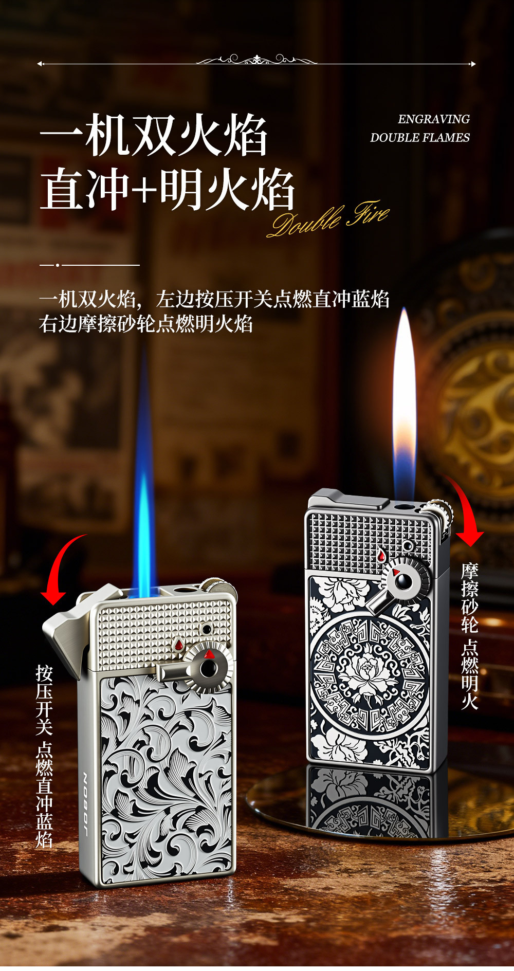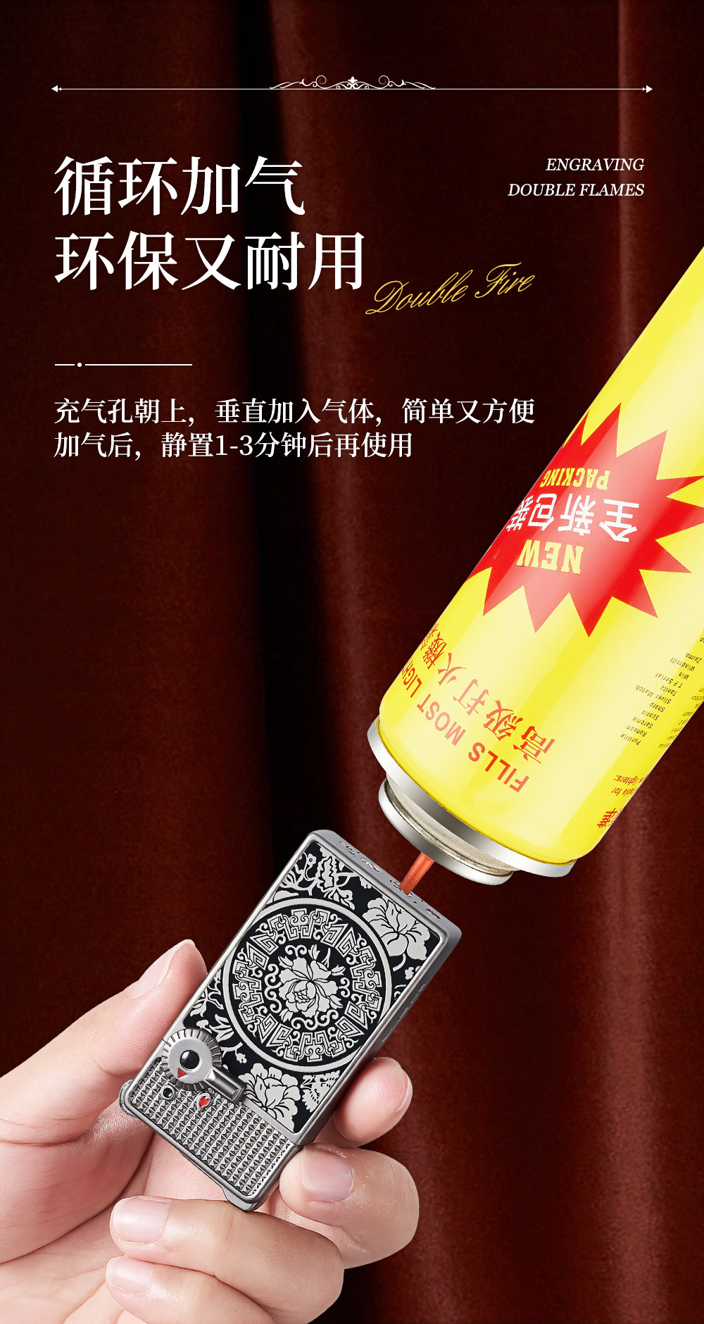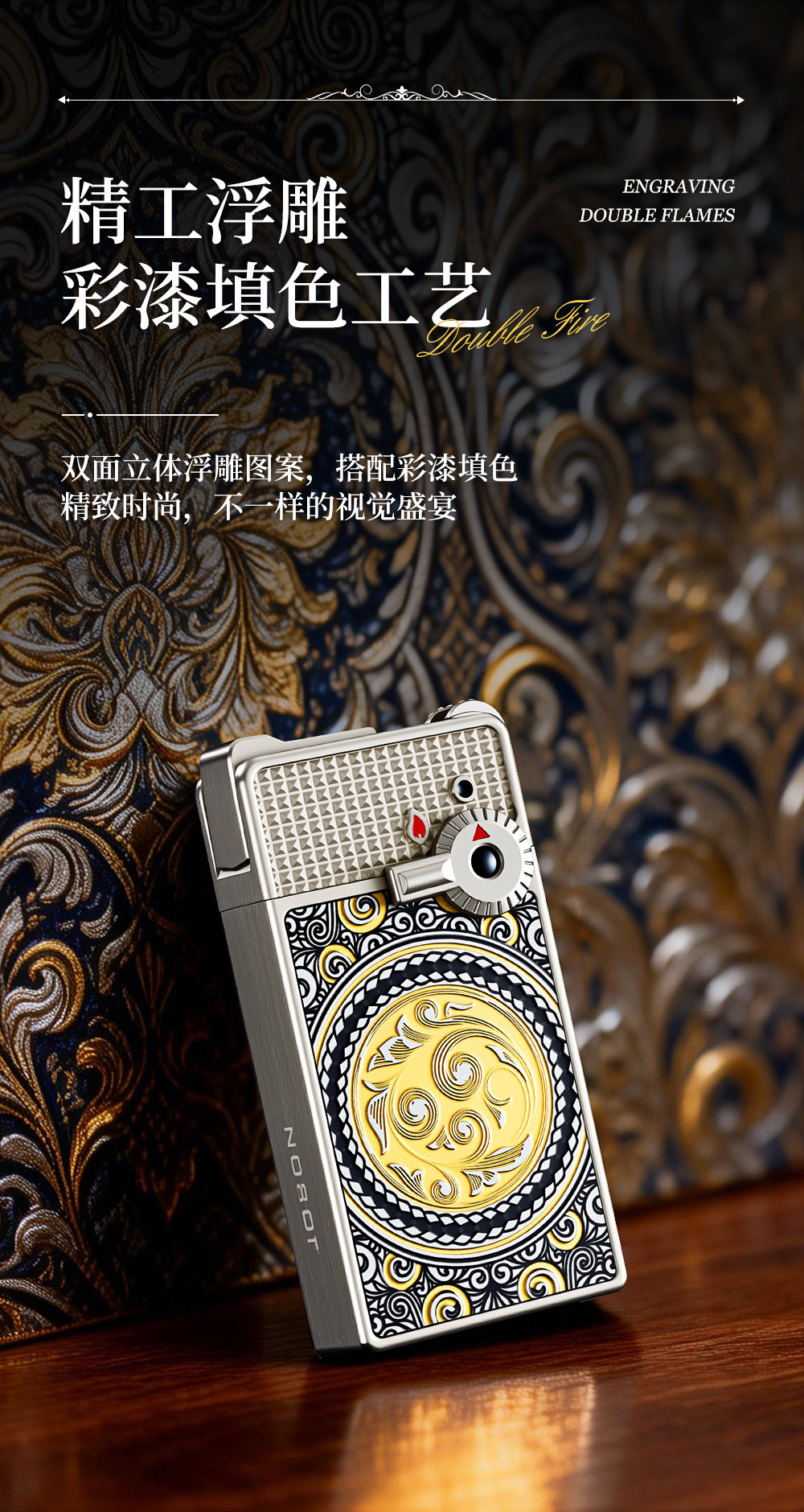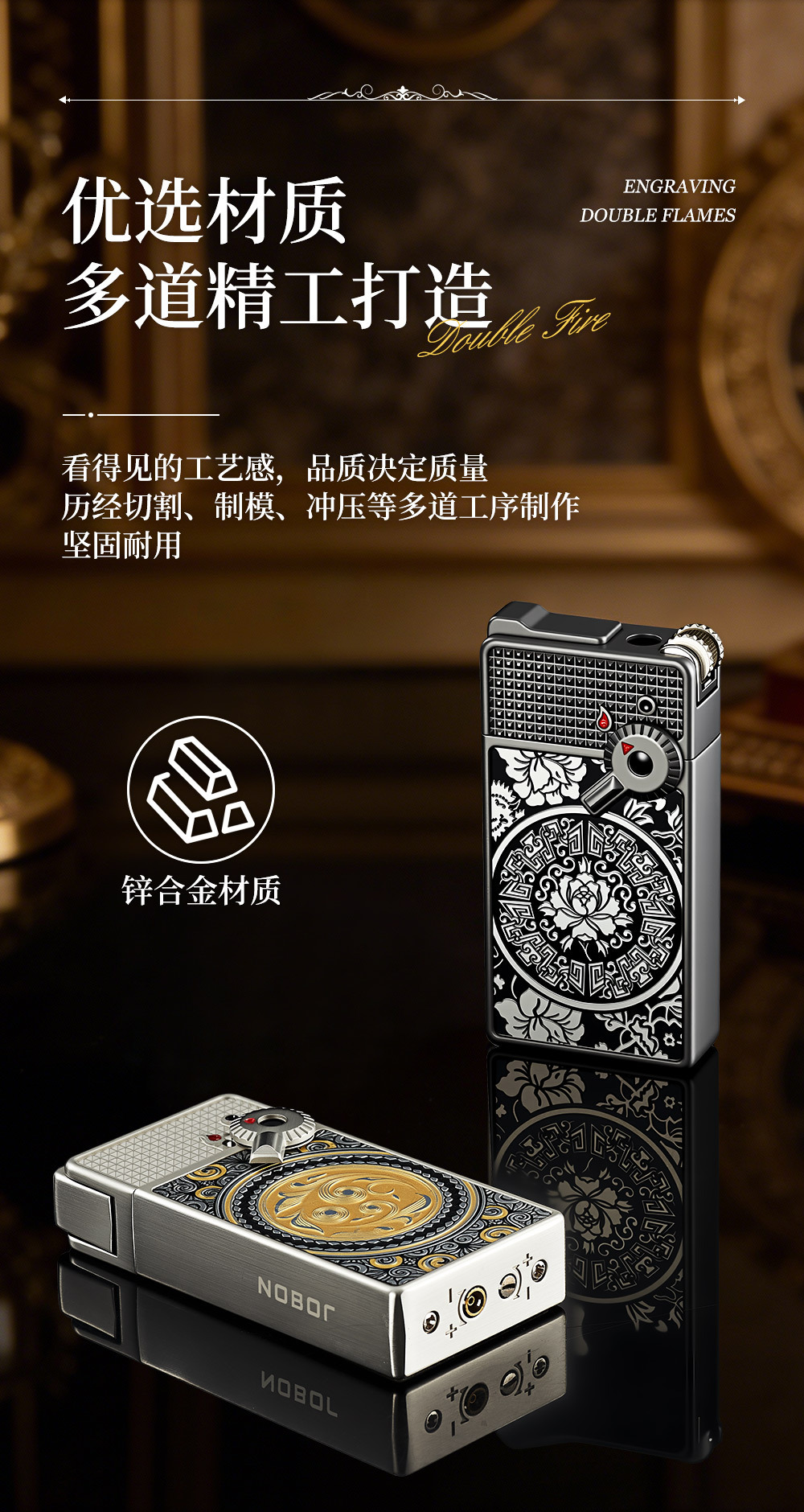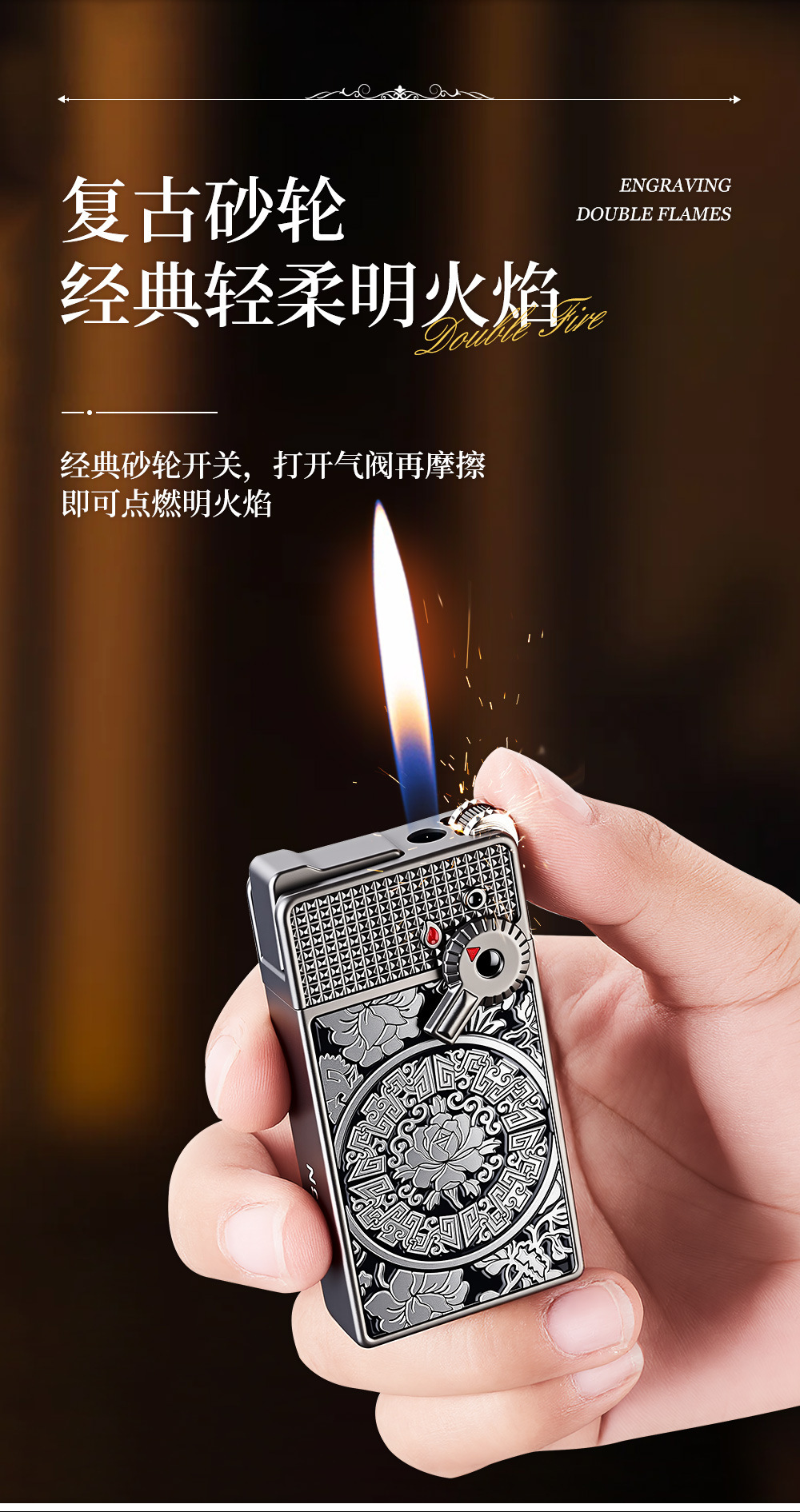 中邦砂轮双火焰打火机防风填漆工艺精美礼盒装送男友礼物控价68