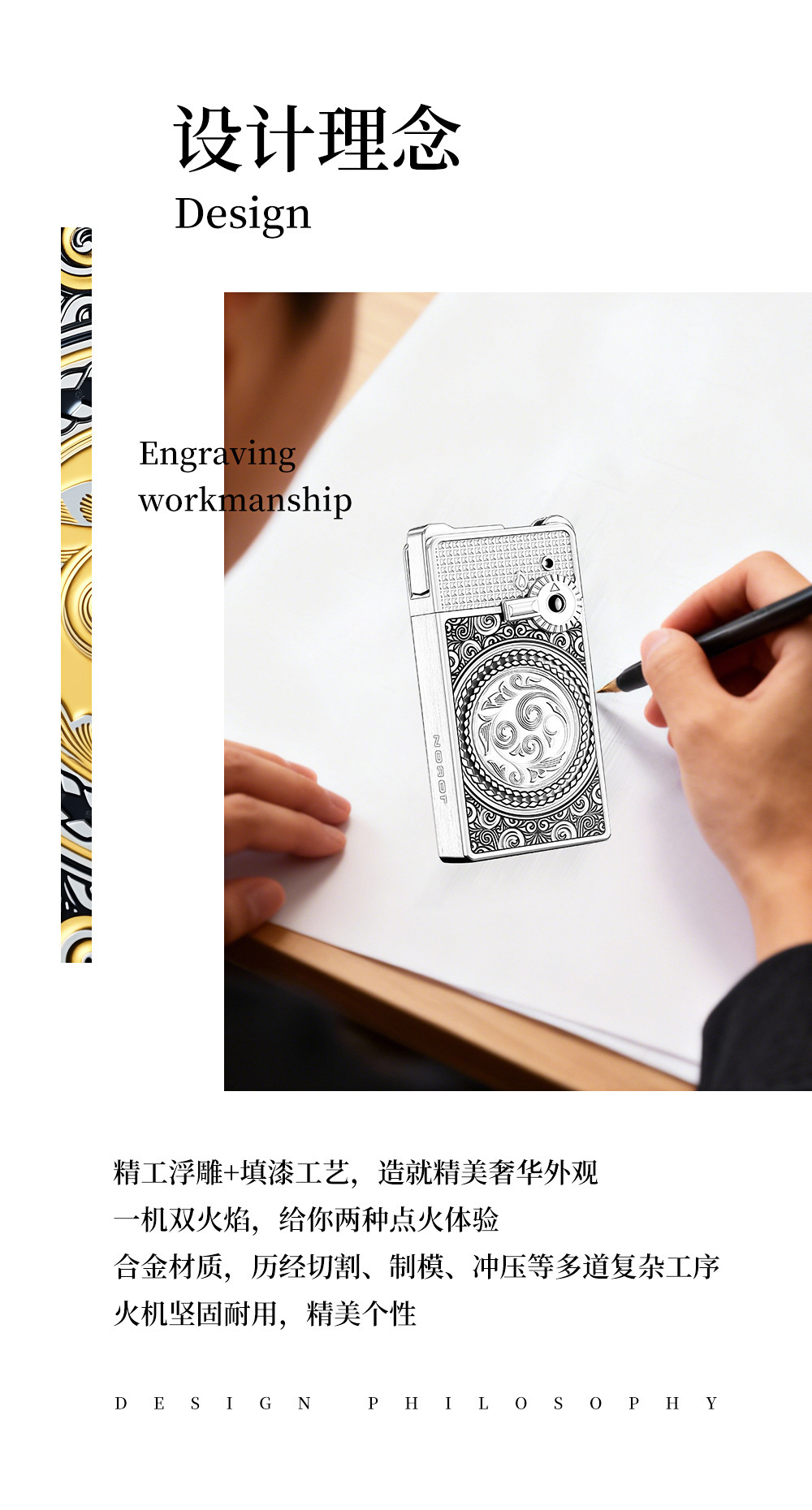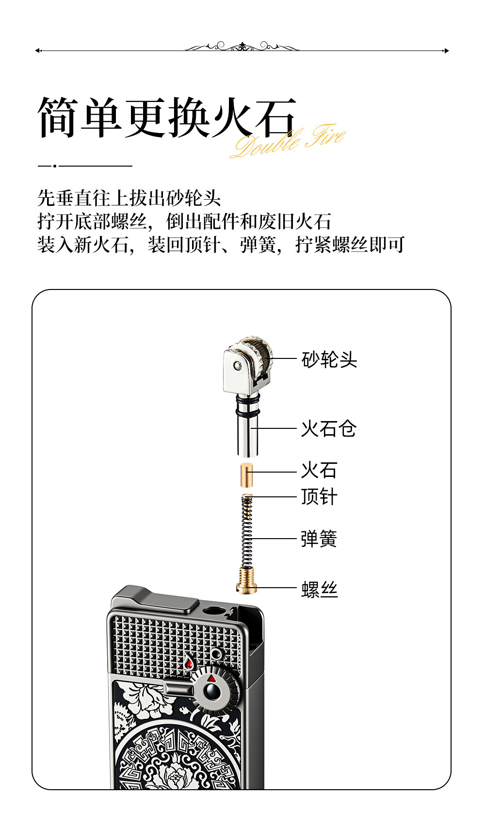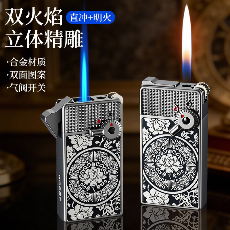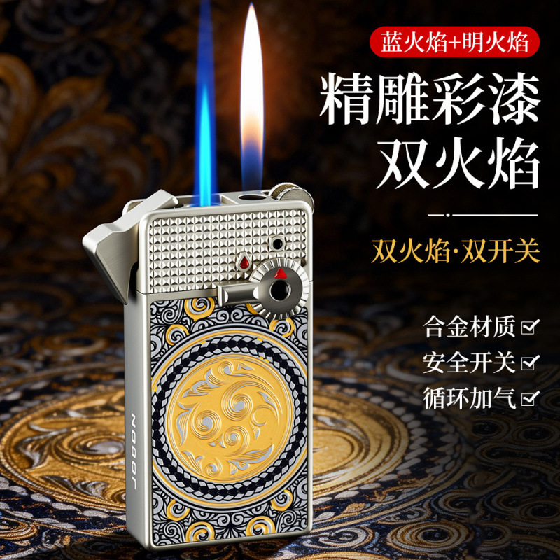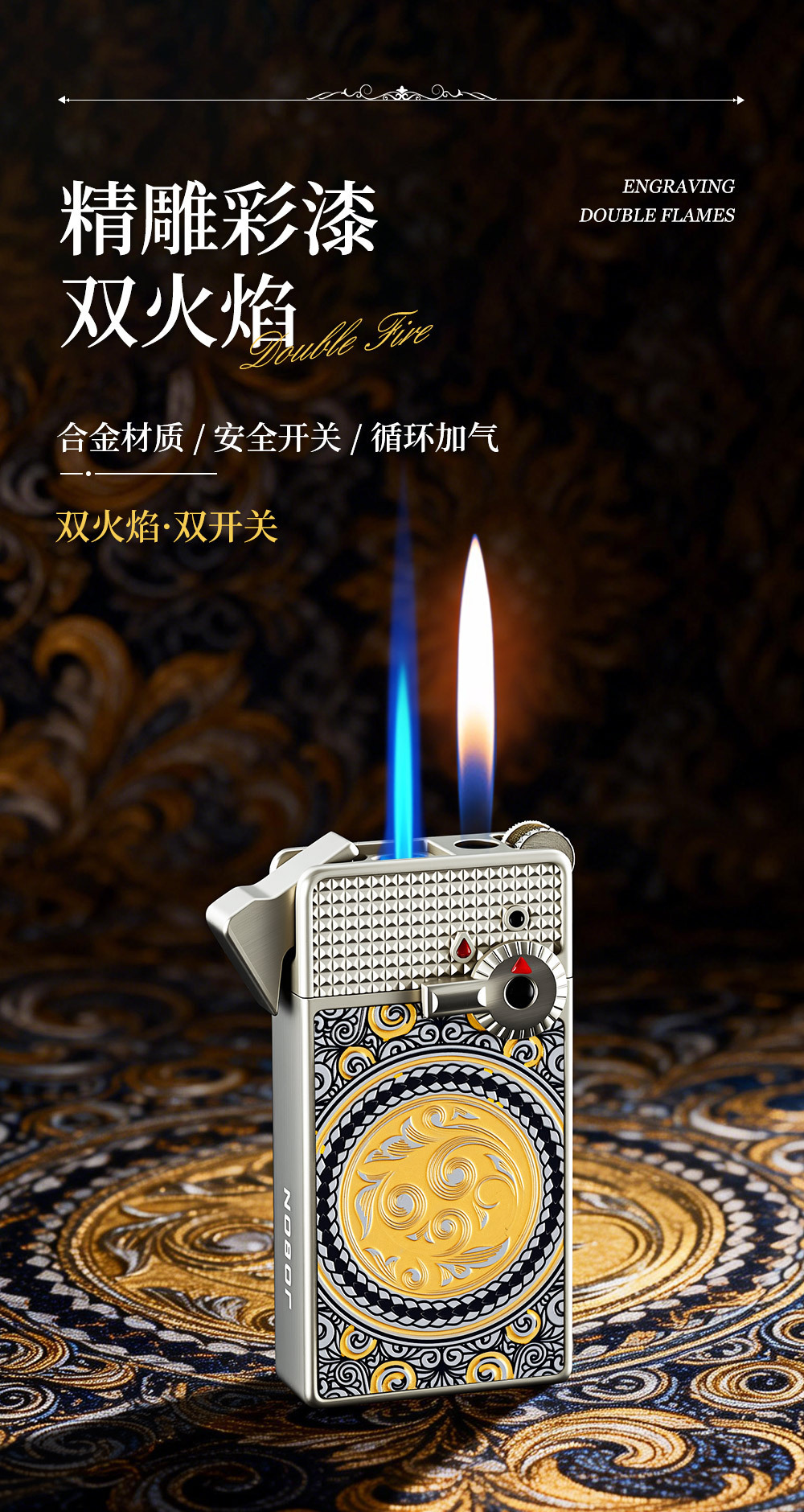 中邦砂轮双火焰打火机防风填漆工艺精美礼盒装送男友礼物控价68