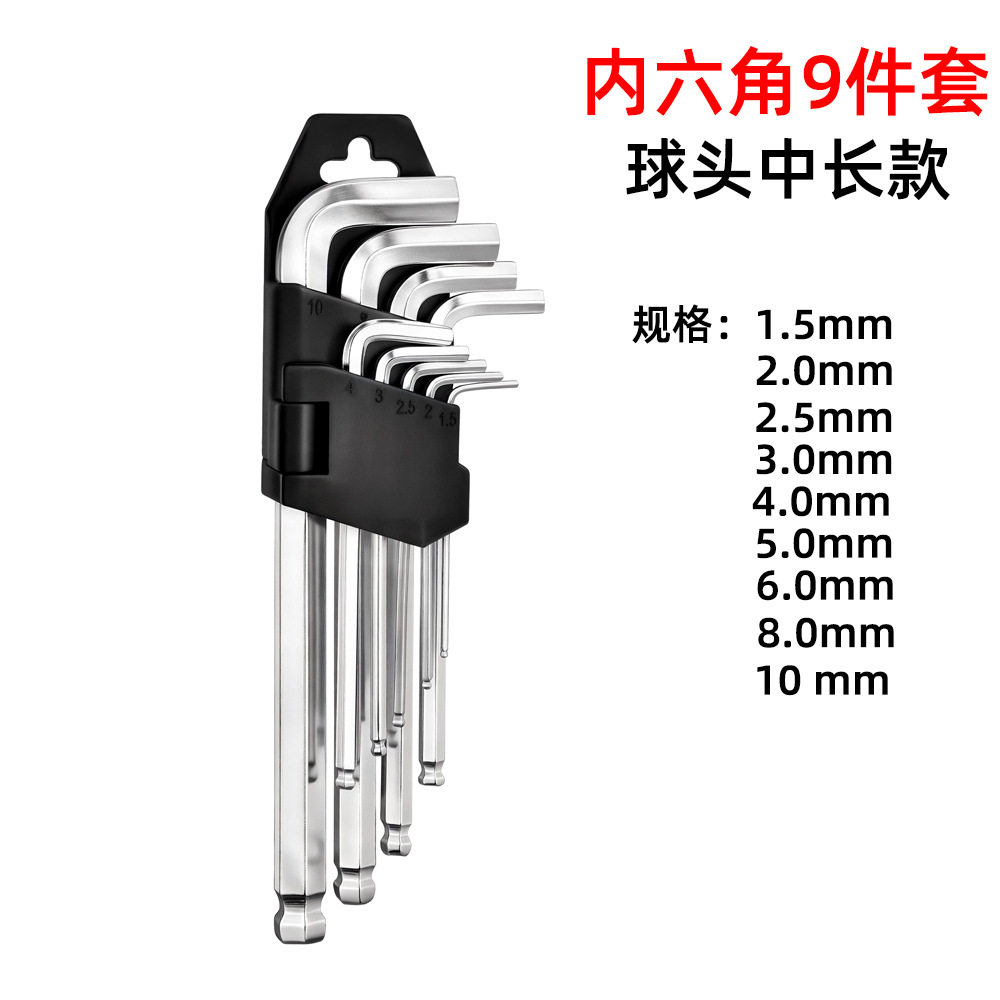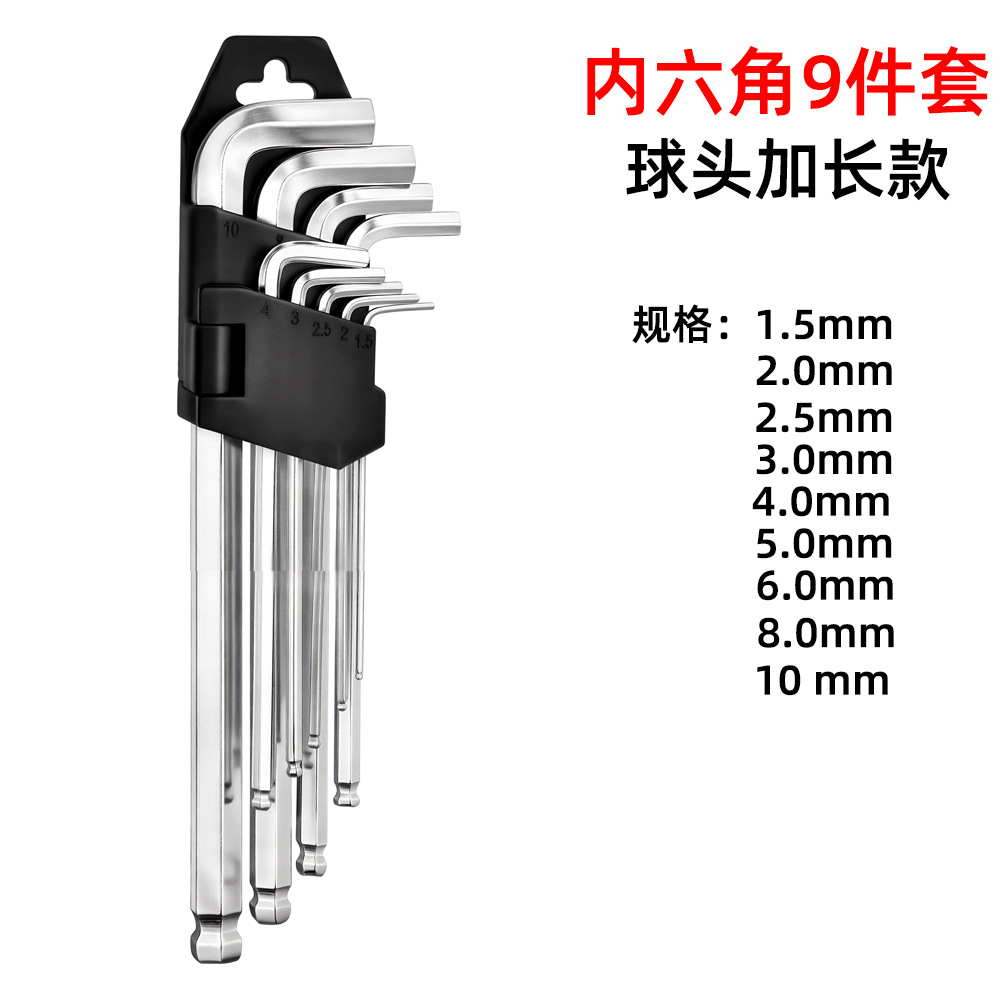 内六角扳手9件套装高强度内六方工具 多功能梅花加长球头扳手批发