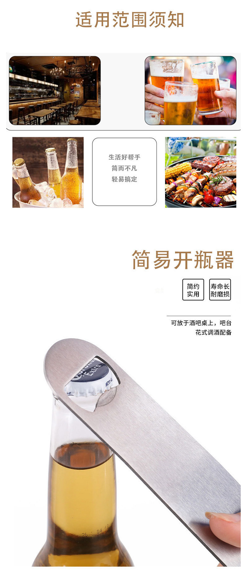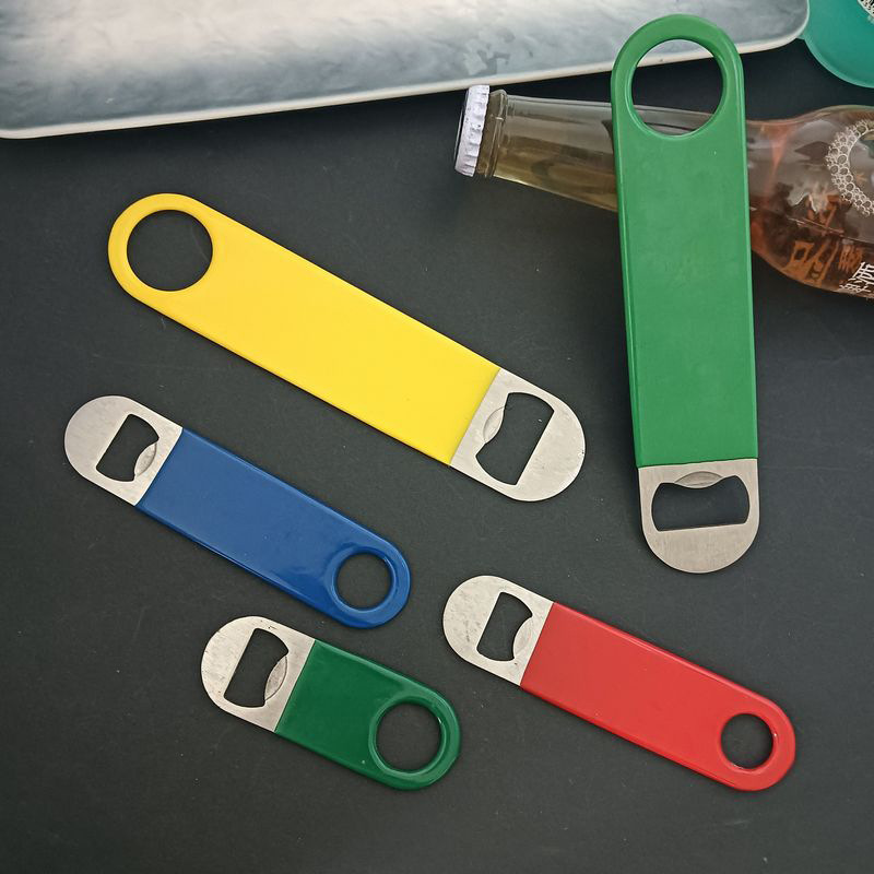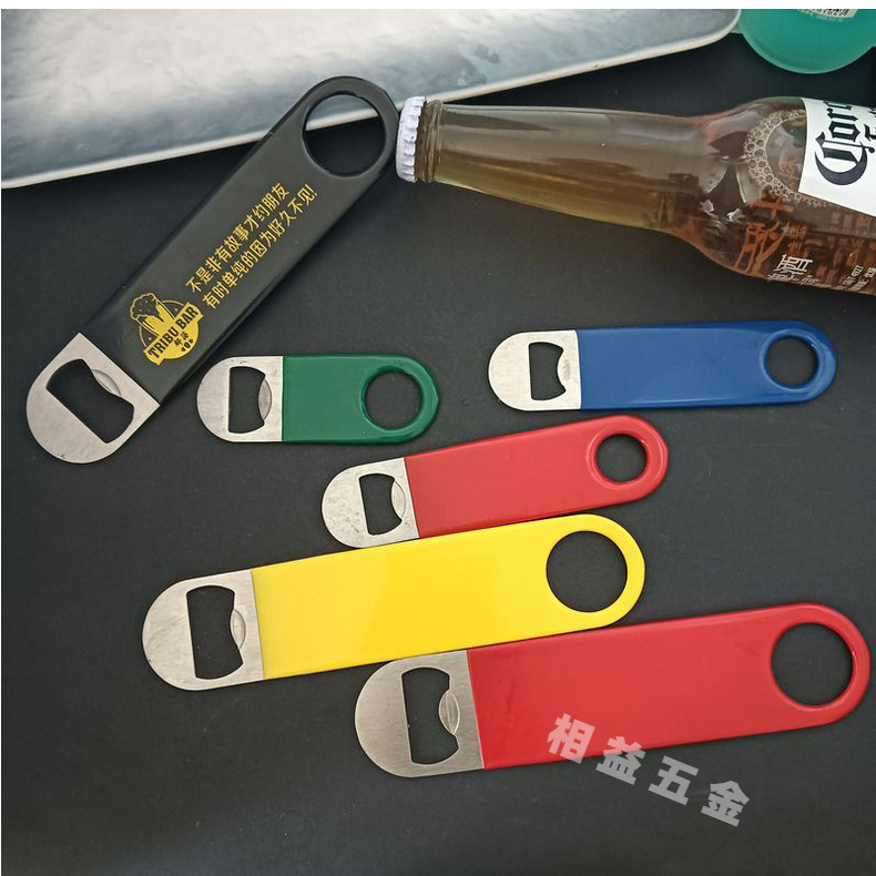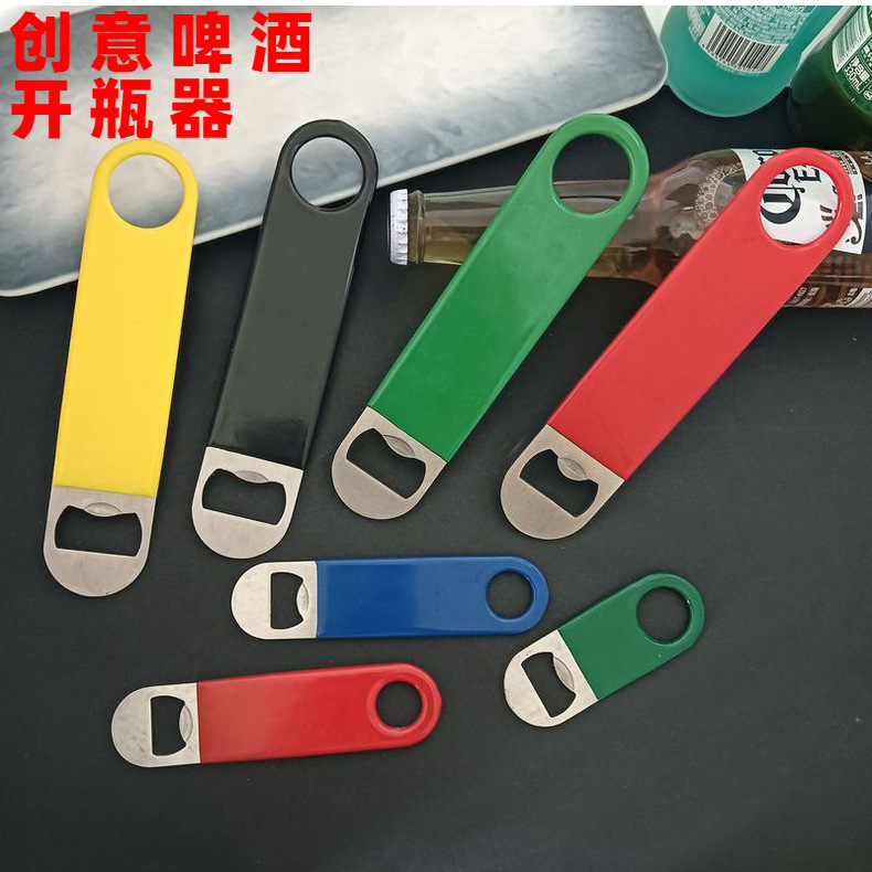 现货批发金属啤酒起子浸胶包胶广告瓶起子不锈钢直板啤酒开瓶器