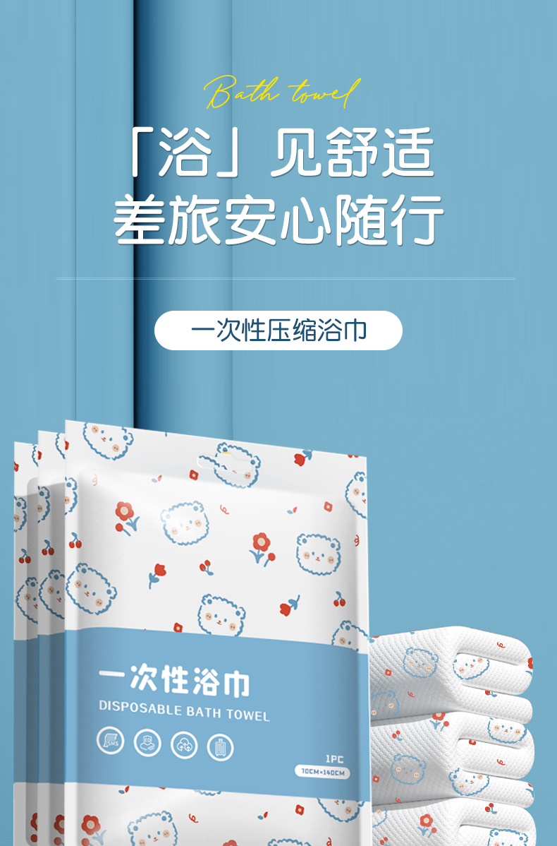 新款一次性印花浴巾毛巾旅行独立包装加大加厚便携酒店用洗澡巾