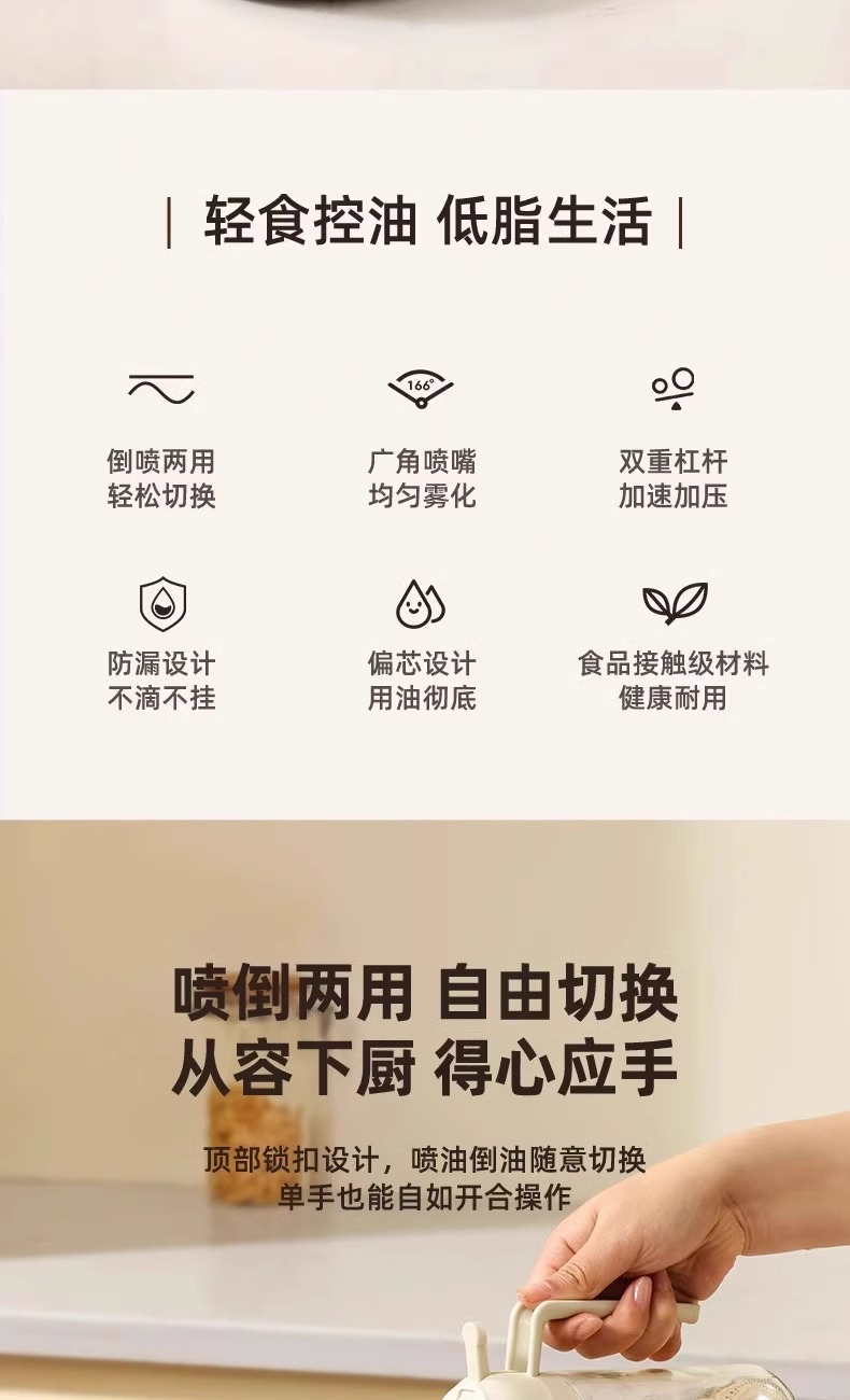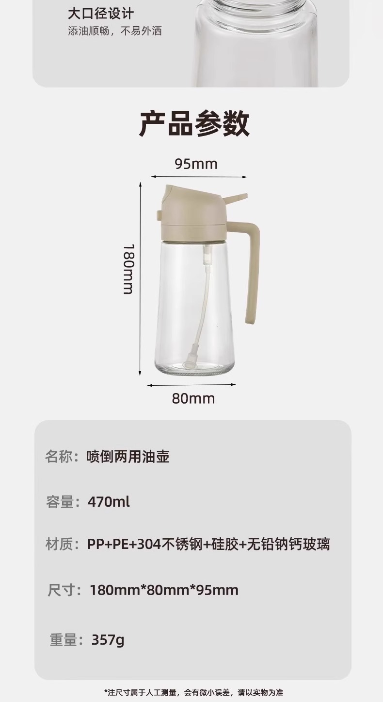 家用喷油壶自动开合喷倒食用油喷雾喷油瓶厨房神器不挂油两用调料