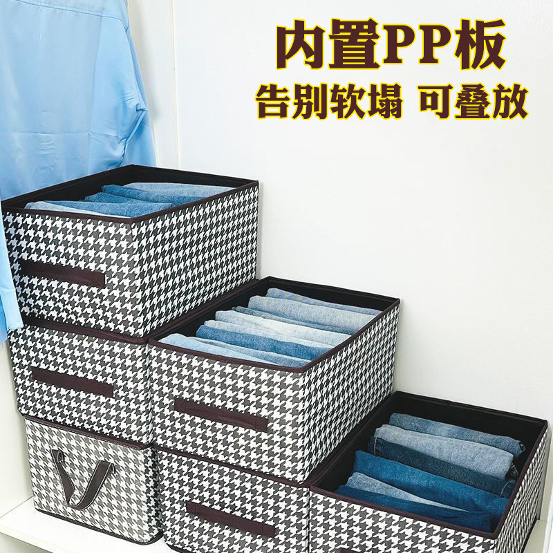 千鸟格裤子收纳袋家用衣服PP板收纳筐抽屉式可折叠收纳箱收纳神器