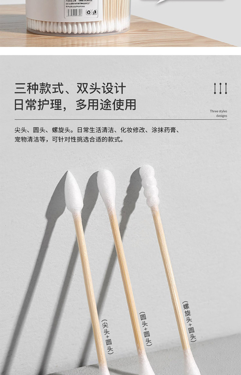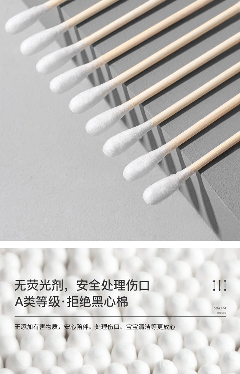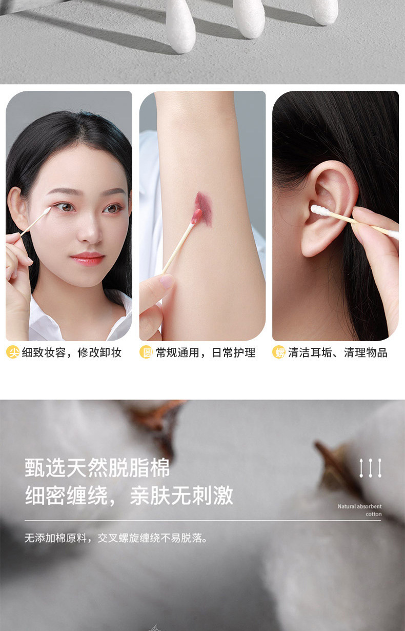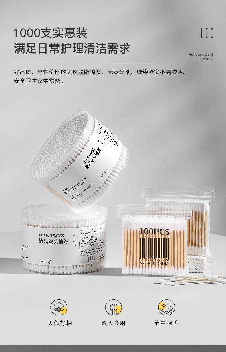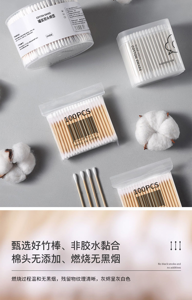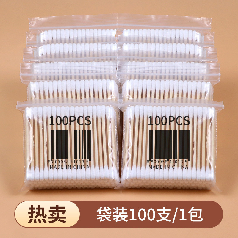 棉签100支袋装棉签一次性双头卫生清洁棉棒家用化妆卸妆掏耳朵棉